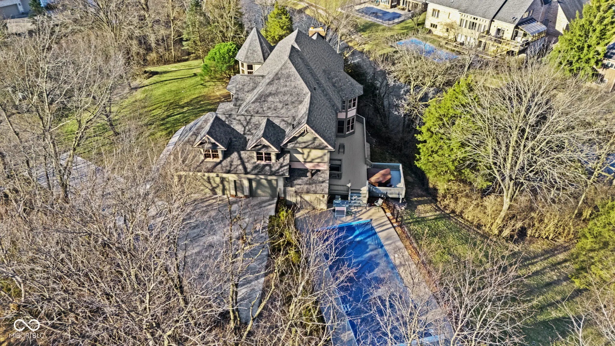 FRESH PAINT! Look at these pics! Step into a masterpiece of architectural splendor with this stunning Queen Anne Painted Lady Victorian, a true embodiment of elegance and grandeur. Spanning 6,000 square feet, this estate seamlessly blends historic charm with modern conveniences, offering an unparalleled living experience on 1.3 private, wooded acres. From the moment you arrive, the stately wraparound porch with Azek decking and exquisite vintage wood detailing invites you to soak in the tranquility of the picturesque surroundings. Step inside to be greeted by a breathtaking two-story entrance, where a stunning open staircase and gleaming hardwood floors set the tone for the sophistication within. Designed for both grand entertaining and everyday living, the expansive open-concept living room and chef's kitchen create a seamless flow, anchored by one of two masonry gas fireplaces. The formal dining room is perfect for hosting elegant gatherings, while the butler's pantry adds a touch of old-world refinement. A large home office with built in bookshelves offers a quiet retreat for work or study. 5 generously sized bedrooms and 4 & 1/2 baths provide ample space, with luxurious touches throughout. The walk-out basement, complete with a pool table, fresh paint, wet bar, and spacious living room, offers an entertainment hub, while abundant storage ensures effortless organization. Outdoors, the estate continues to impress with an in-ground pool and hot tub, ideal for relaxation and recreation. The three-car garage with a large bump-out provides space for vehicles and hobbies, while the private drive enhances exclusivity. Built to stand the test of time, this home boasts Anderson double-hung windows, Rhino Shield siding, and exceptional craftsmanship at every turn. A rare offering of historic beauty and modern comfort, this meticulously maintained estate is ready to welcome its next discerning owner. Experience the charm, elegance, and serenity of this remarkable home