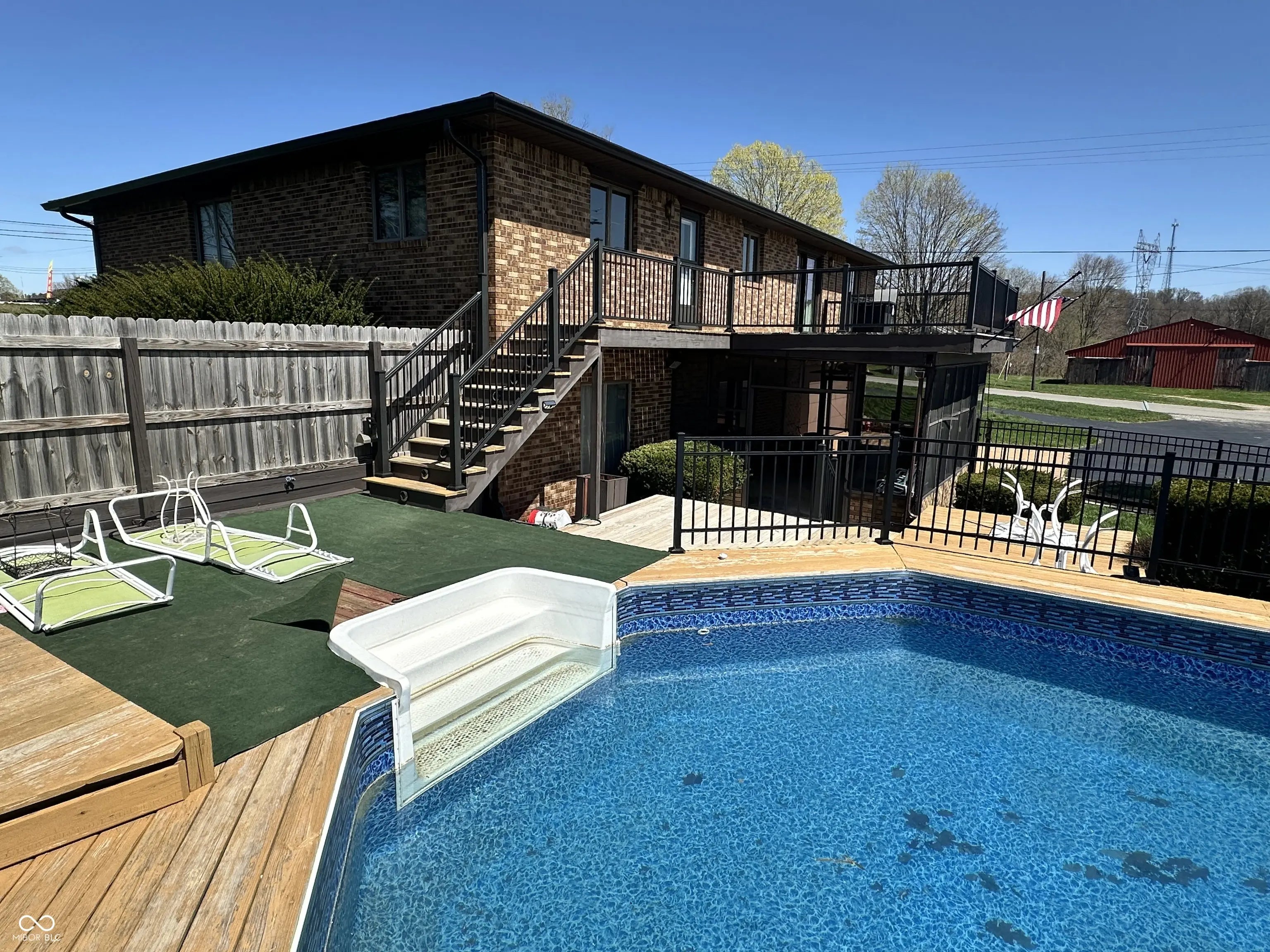 Take a look at this 4 bedroom, 3 bath, 3502 sq. ft. Brick Ranch over finished walk-out basement. At the entrance the foyer extends to the living room, dining area and around to the kitchen. The kitchen features a huge island with plenty of counter space, cabinets and storage. There is a door from the kitchen and a sliding patio door from the dining room onto the 16x20 upper deck. The primary bedroom offers a private bath with dual vanity sinks, a new walk in tiled shower, as well a huge walk-in closet. The 2 other additional bedrooms finish off the main level of the home. An open staircase walks you down to the lower level that features the walkout basement, an additional bedroom and bath, a great room with wet bar and a family room with brick fireplace. Outside the family room is an enclosed 16x20 screened in porch that extends to the 15x30 above ground pool fully surrounded by a large deck and features a tiki bar and a half bath perfect for entertaining. This area is also fenced in for security and the family dog. Let's not forget the rest, this property has a lower level 16x20 attached garage, along with a 30x48 pole building that includes a car lift, tall ceilings and a 14x16 separate storage shed sitting next to it.