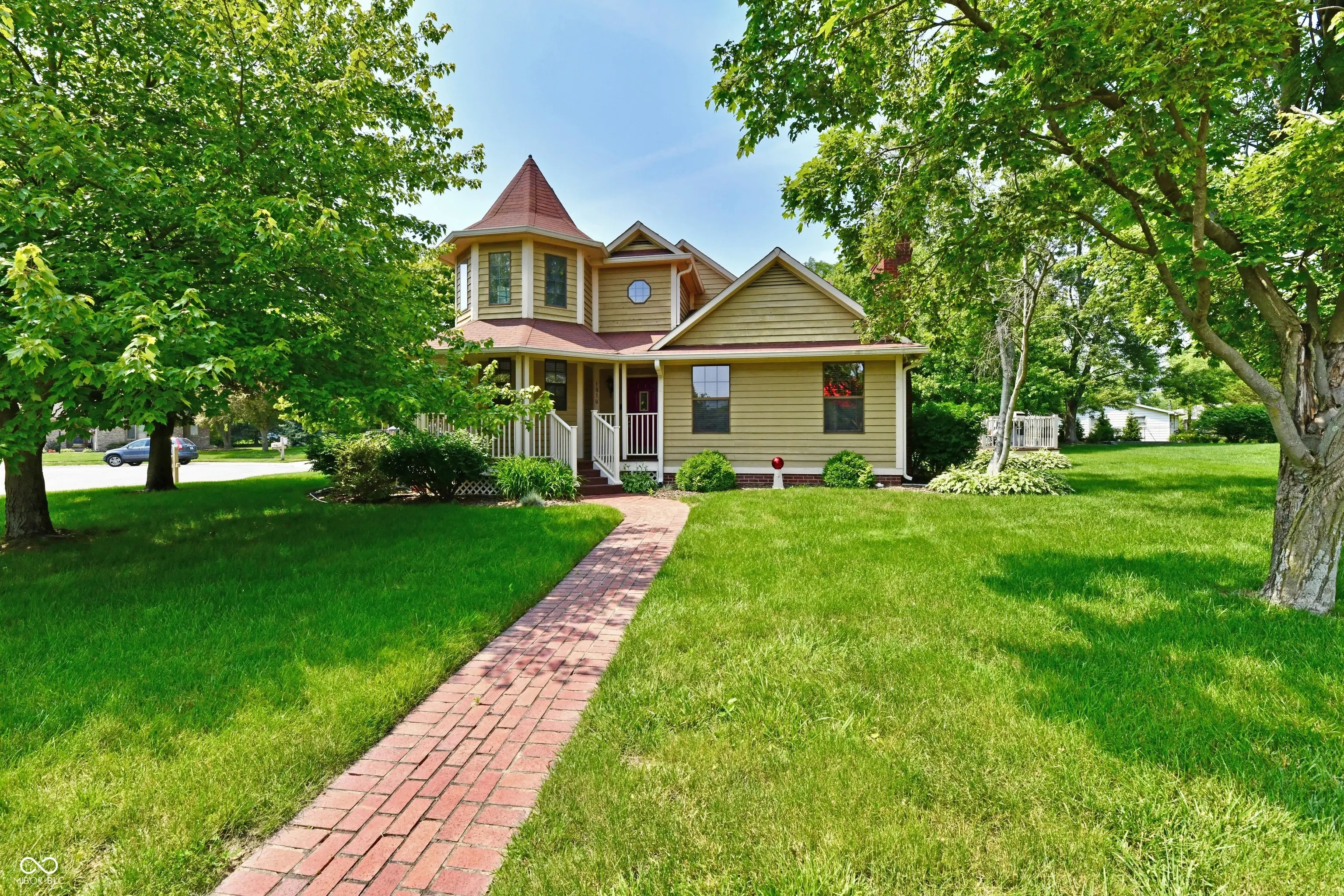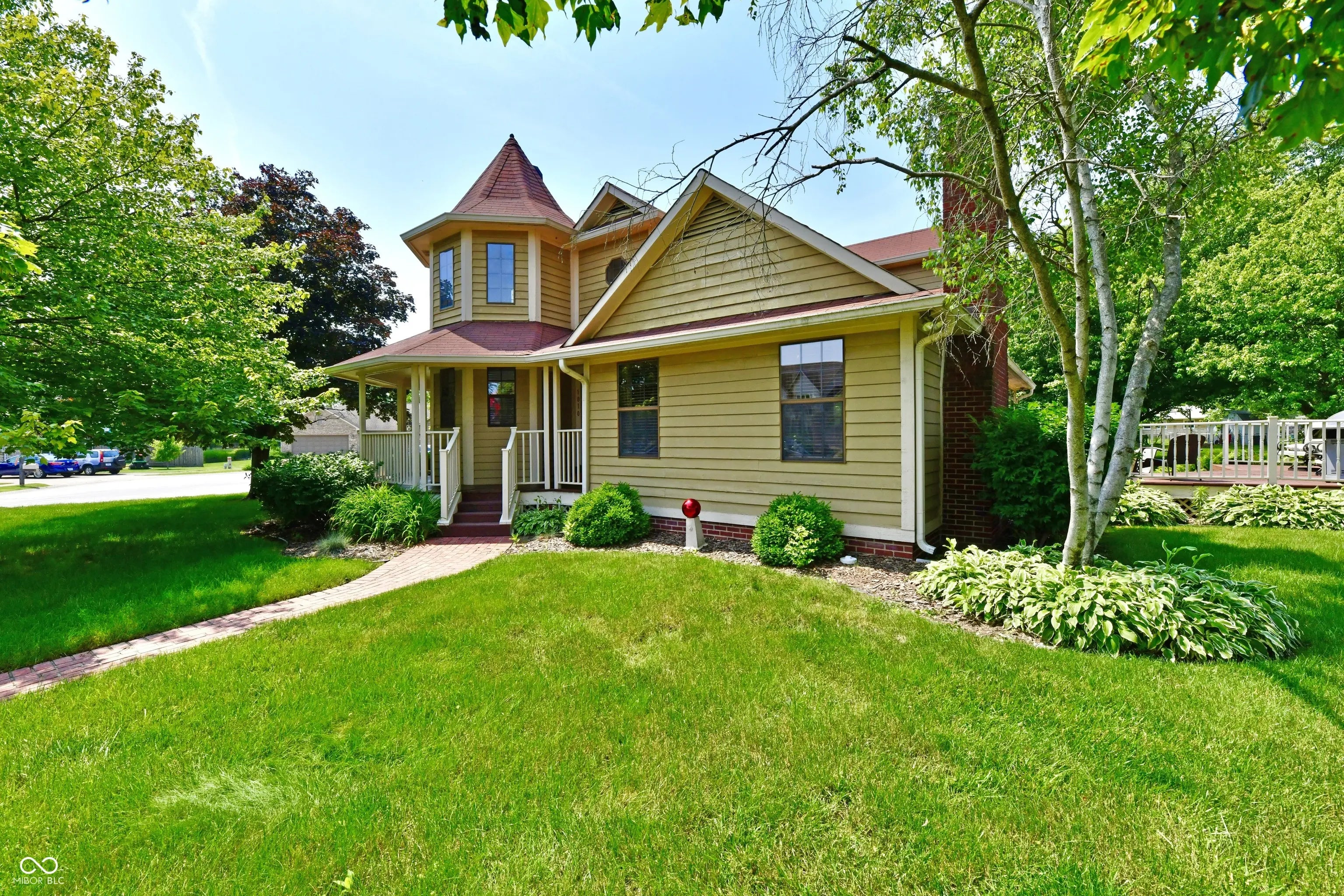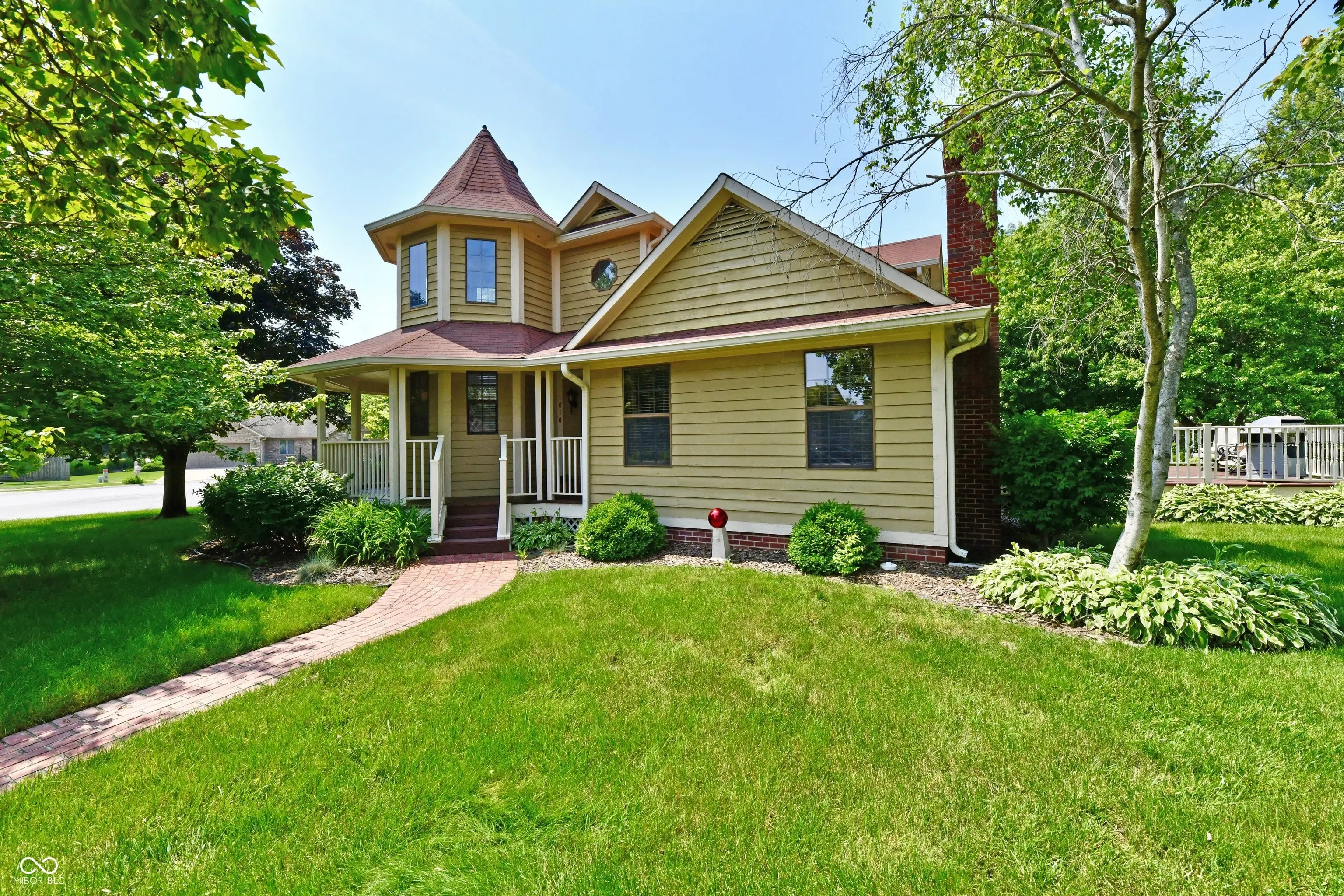 Nestled on a corner lot, this one-of-a kind Victorian-style custom home offers 2500 sq ft, 4 bedrooms & a wrap-around porch! Step into the cozy sitting room with 14' foot ceilings, loads of windows drenched in natural sunlight. This room is warm, inviting and the perfect spot to relax, read a book or just sip coffee. The spacious great room provides a great entertaining space and a relaxing retreat. Snuggle-up to the woodburning fireplace on chilly nights. The kitchen and dining area are designed for both everyday living & entertaining while creating your culinary delights. Abundant cabinets, pantry, and quartz countertops give the home chef plenty of work & storage space. All stainless steel appliances stay with the home. Pretty backsplash & undercabinet lighting complete the kitchen. You'll love spending mornings on the private, covered porch right off of the primary bedroom on the main level. Primary bathroom newly renovated in May 2023 includes double-sink vanity, faucets, lighting, mirrors, flooring & shower doors. Also includes a whirlpool tub & two separate walk-in closets with custom shelving. Conveniently located, main level laundry room comes fully equipped with washer, dryer, cabinets for storage, utility sink with new faucet, clothes line & even access to the outdoors! Main level secondary bedroom can be an office, hobby room or playroom. Upper level Secondary bedrooms are spacious with dormer windows that provide charm & character. Walk-in closets, Jack and Jill full bathroom. Oversized two-car garage is finished with a water softner rough-in, pull down attic & a service door for easy access to the yard. Enjoy serene mornings & evenings on the wrap around porch, patio & deck. Abundant outdoor space for the grill master, playing games or just relaxing. Access out to the wrap around porch from the great room, dining area, and primary bedroom. This gem is close to shopping, restaurants and award winning schools. Welcome home!