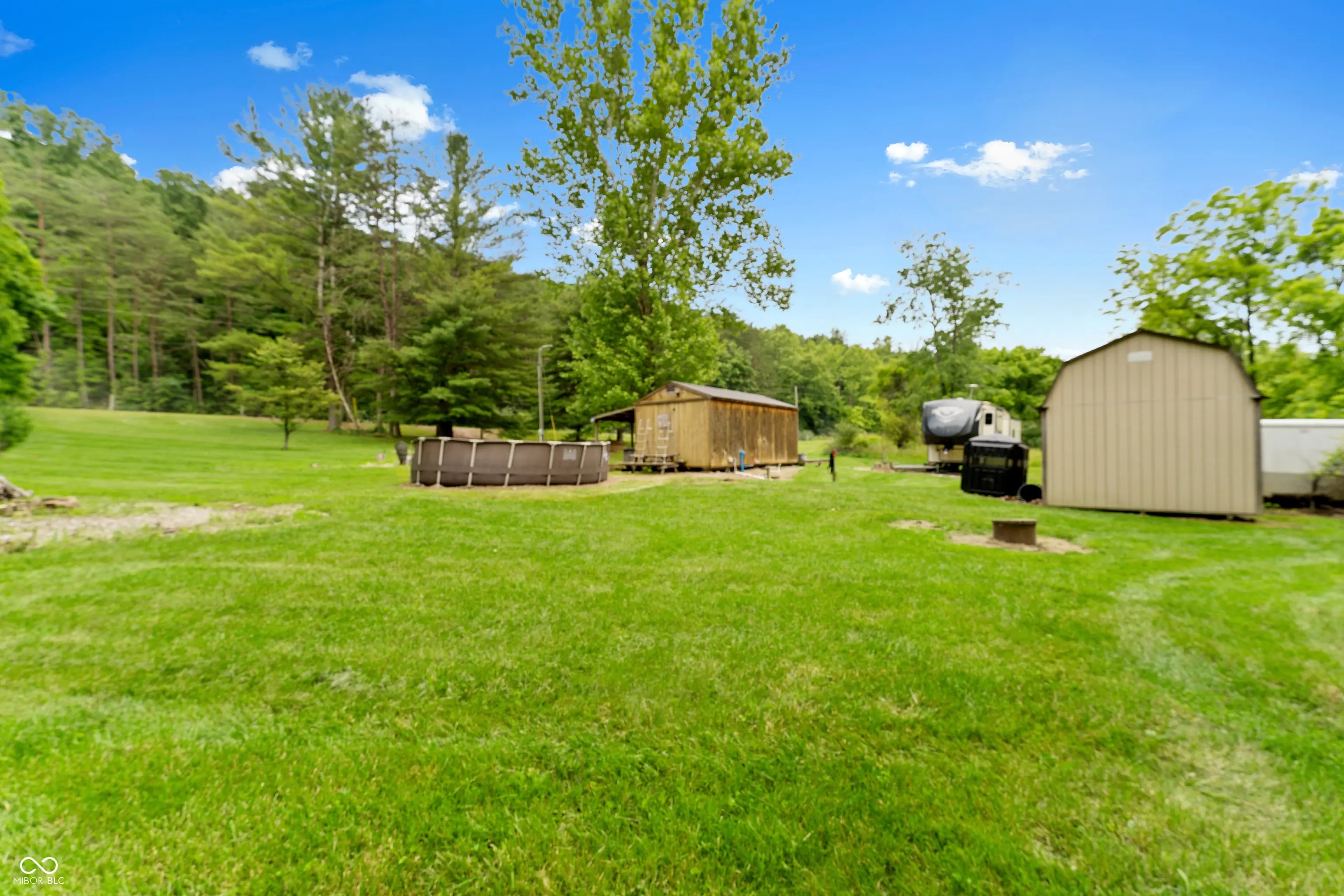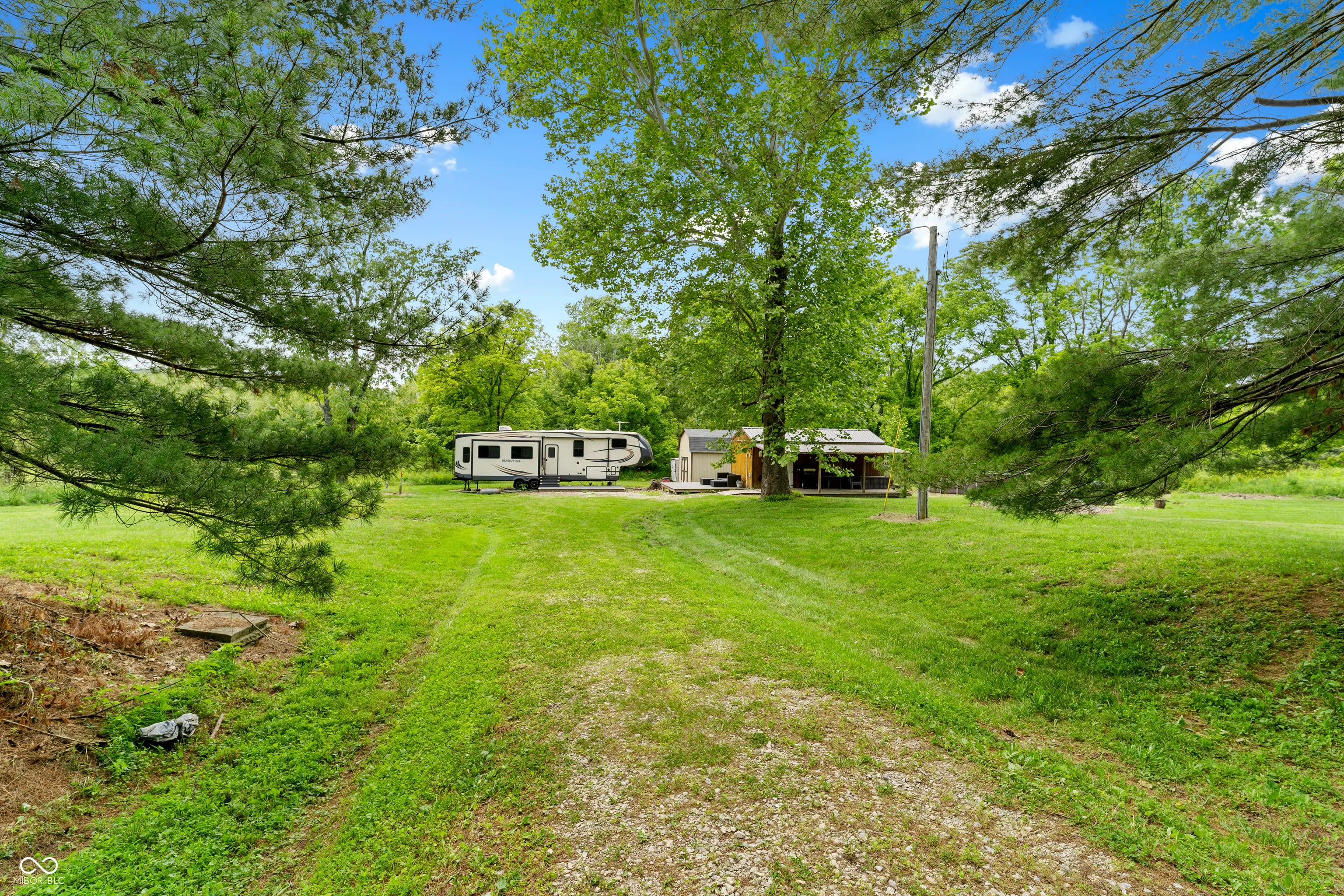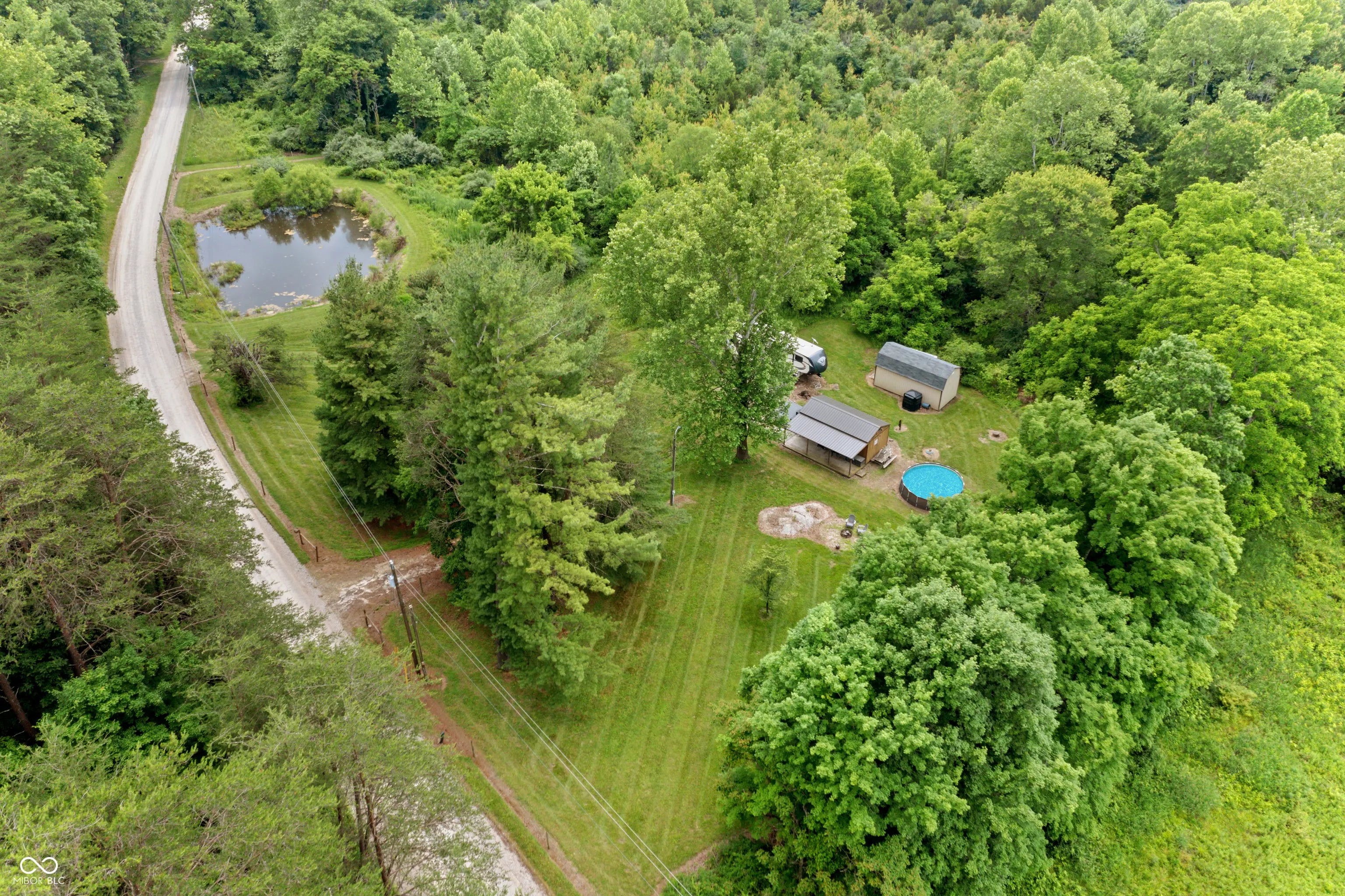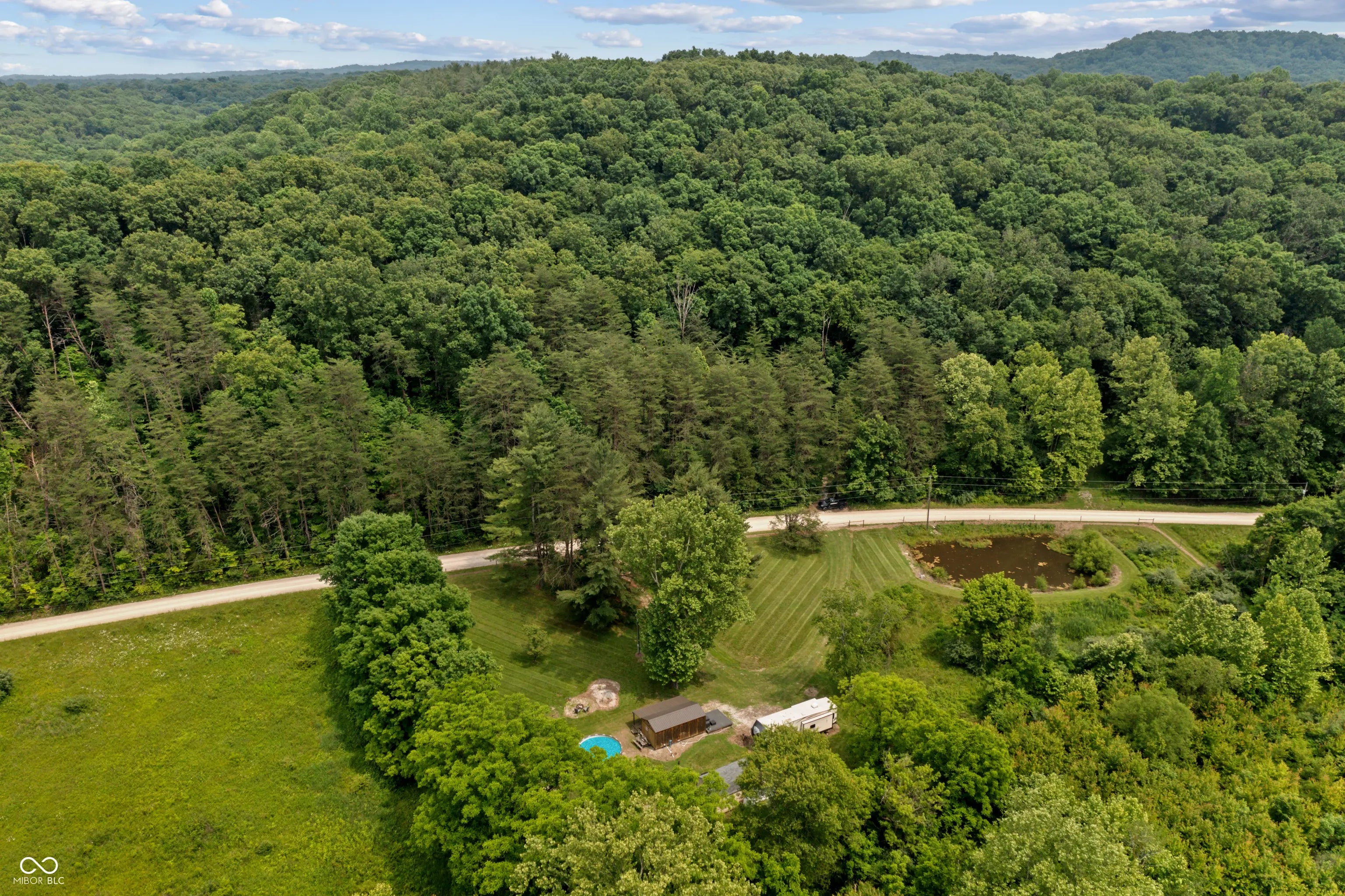 Discover the ultimate retreat for nature lovers and outdoor enthusiasts! This beautiful rural over 17 acre property features rolling wooded hills, abundant wildlife, tree stands, a 12x20 storage barn with a hoist & loft, a fire pit to cozy up on chilly nights, and a fully stocked pond perfect for fishing. Bordered on two sides by Hoosier National Forest, it offers unmatched privacy and direct access to expansive public land. Majority of land is wooded and includes land on both sides of Elkinsville Road! Located just beyond the historic town of Elkinsville and close to the renowned Story Inn and Brown County State Park, adventure awaits at every turn. Enjoy canoeing on Salt Creek, hike scenic trails, or hunt for mushrooms in this serene, natural setting. A rustic hunter's cabin on the property complete with a full bathroom, fridge, microwave, and covered porch provides a cozy escape. Also, the included fifth wheel camper with an attached front porch is another place to unwind and enjoy luxury camping on your own property! Above ground pool is also included with the property! Whether you're looking to unwind in nature or explore all that Brown County has to offer, this property is a rare gem!
