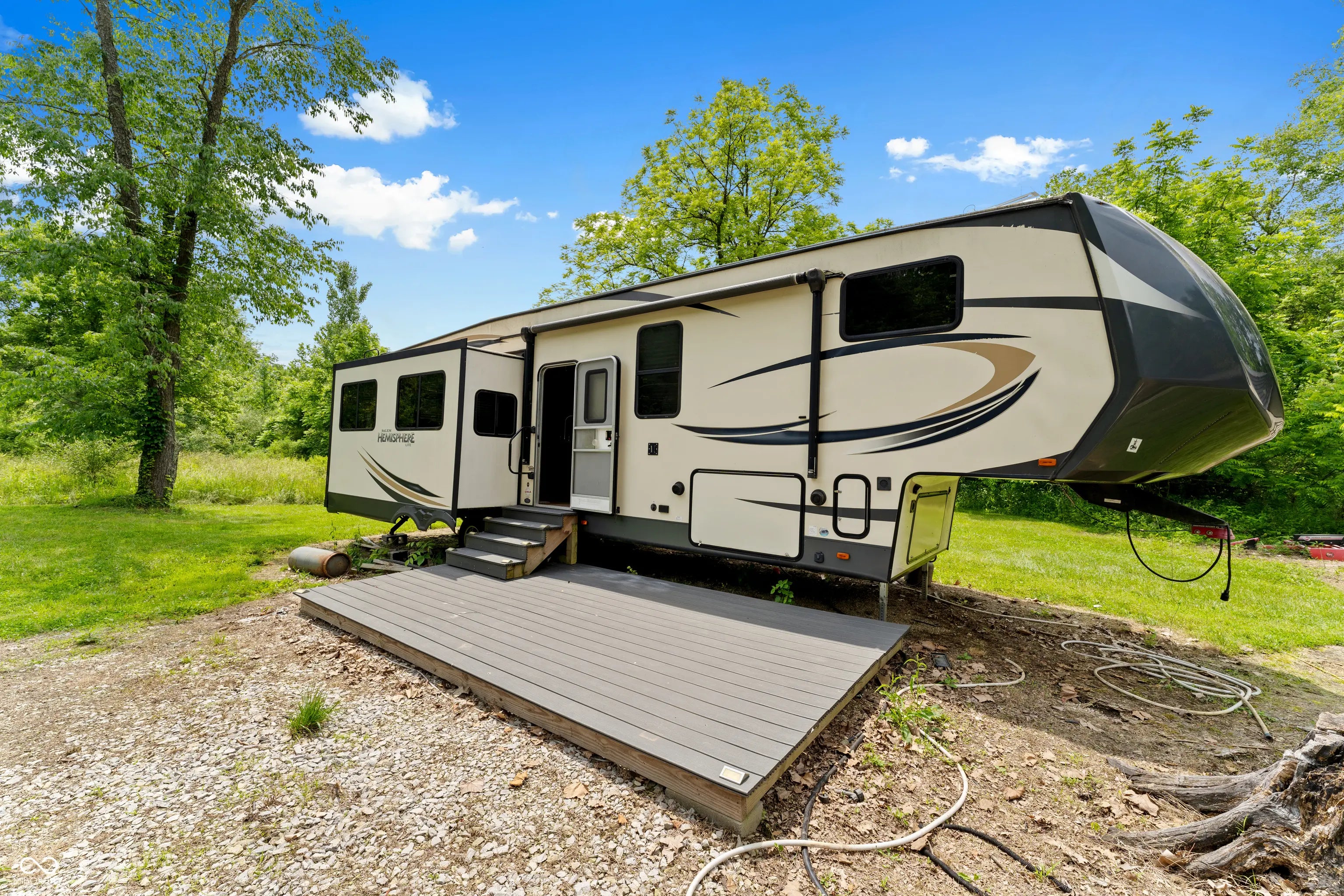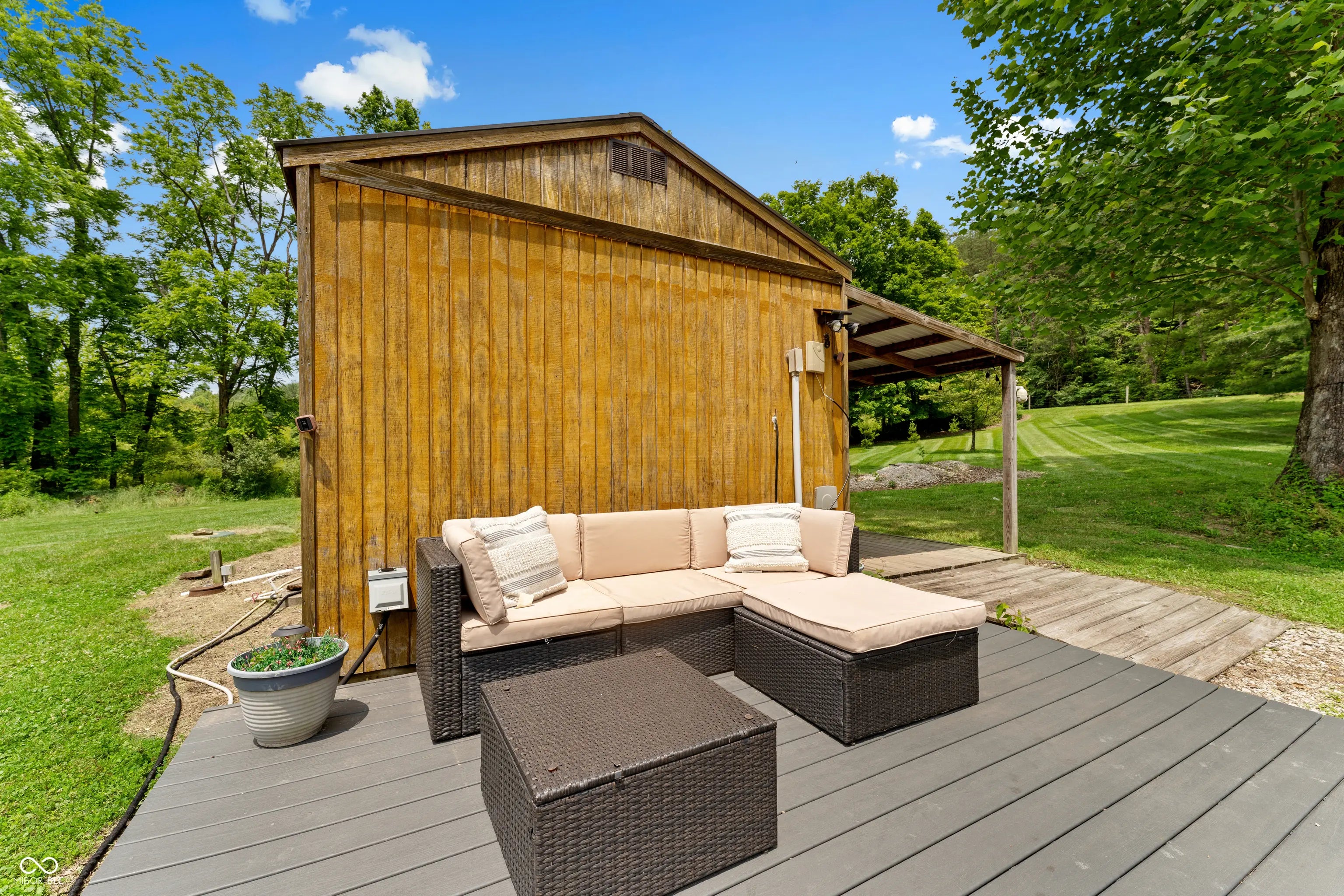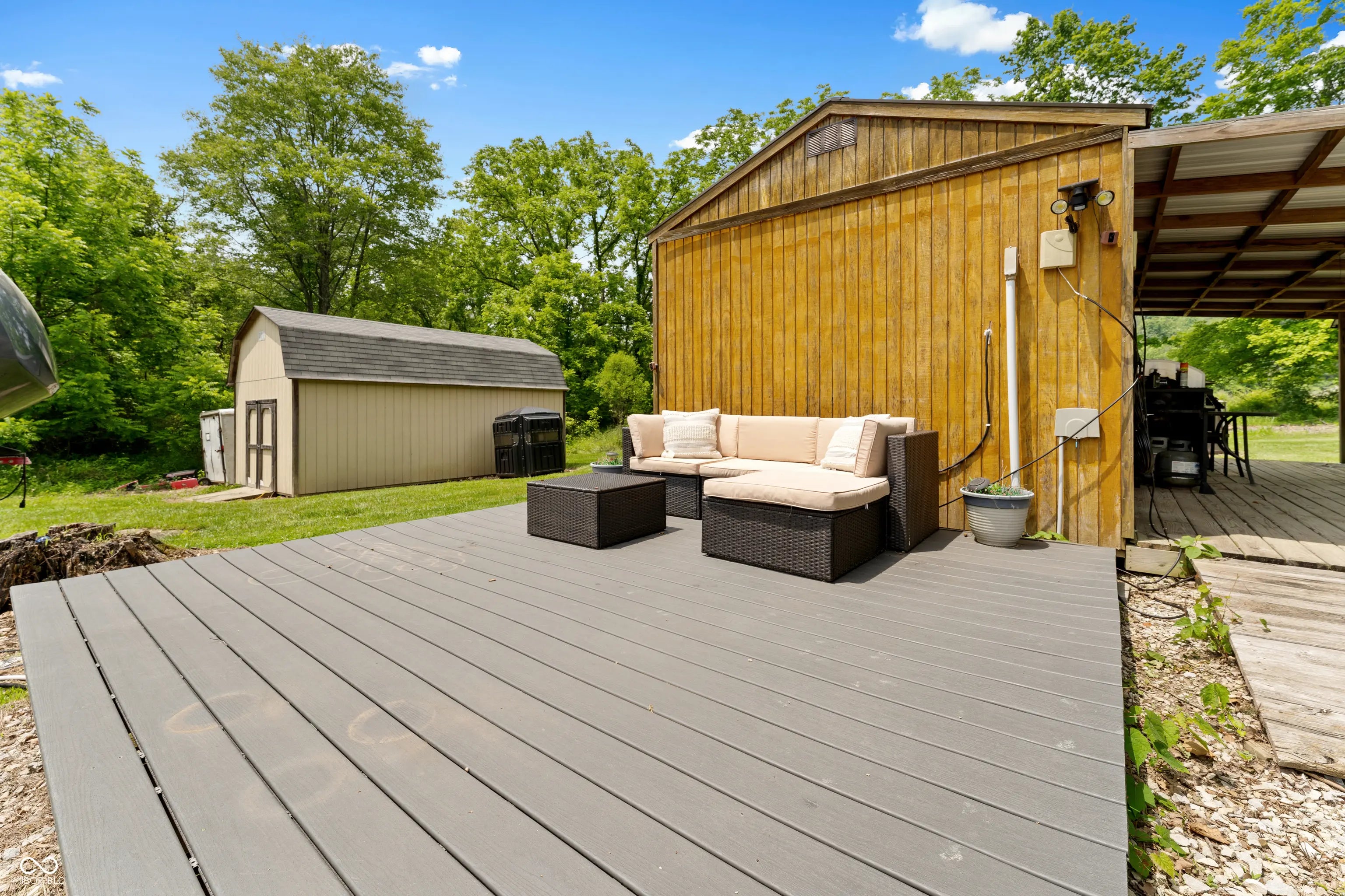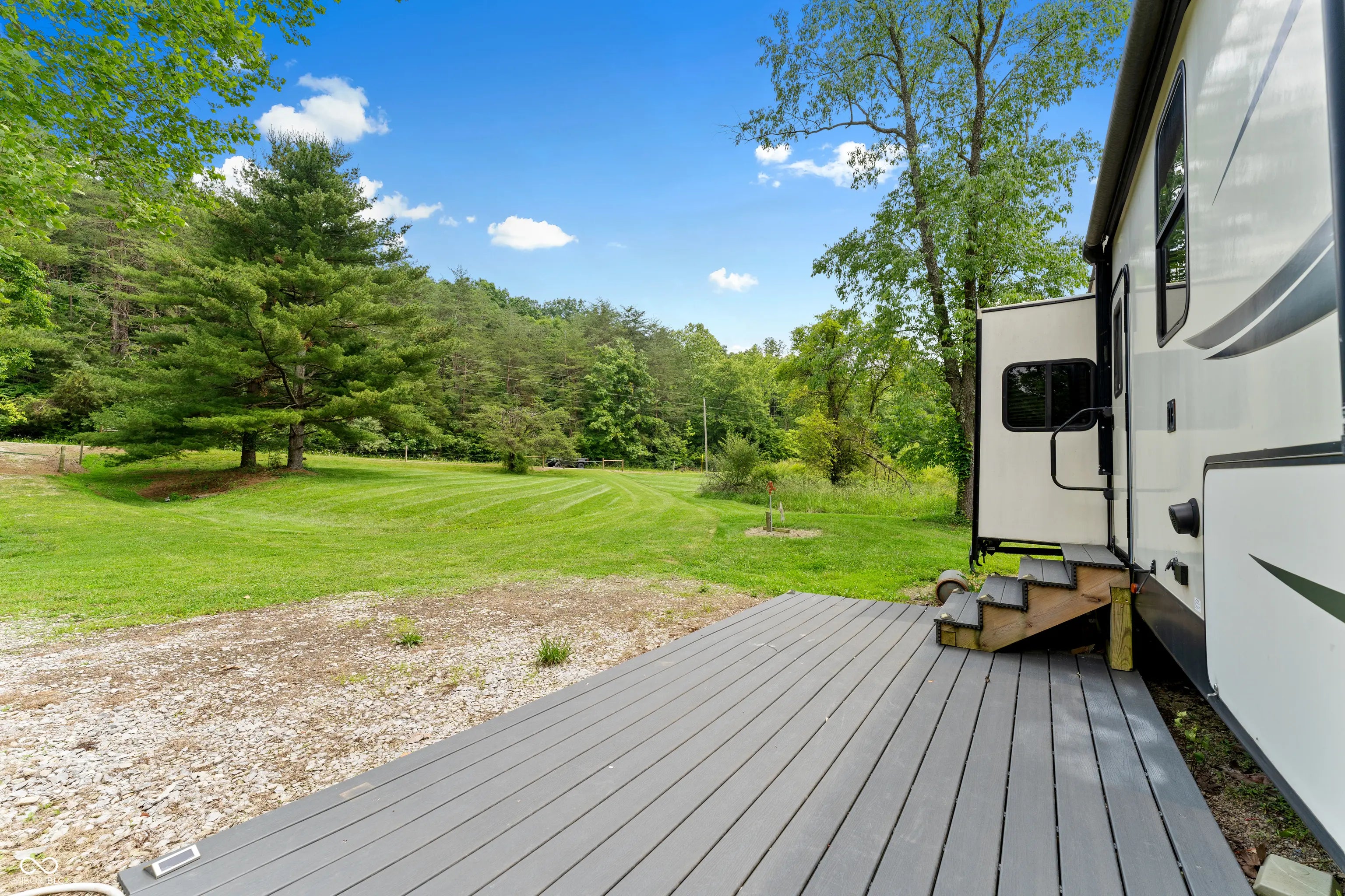Discover the ultimate retreat for nature lovers and outdoor enthusiasts! This beautiful rural over 17 acre property features rolling wooded hills, abundant wildlife, tree stands, a 12x20 storage barn with a hoist & loft, a fire pit to cozy up on chilly nights, and a fully stocked pond perfect for fishing. Bordered on two sides by Hoosier National Forest, it offers unmatched privacy and direct access to expansive public land. Majority of land is wooded and includes land on both sides of Elkinsville Road! Located just beyond the historic town of Elkinsville and close to the renowned Story Inn and Brown County State Park, adventure awaits at every turn. Enjoy canoeing on Salt Creek, hike scenic trails, or hunt for mushrooms in this serene, natural setting. A rustic hunter's cabin on the property complete with a full bathroom, fridge, microwave, and covered porch provides a cozy escape. Also, the included fifth wheel camper with an attached front porch is another place to unwind and enjoy luxury camping on your own property! Above ground pool is also included with the property! Whether you're looking to unwind in nature or explore all that Brown County has to offer, this property is a rare gem!