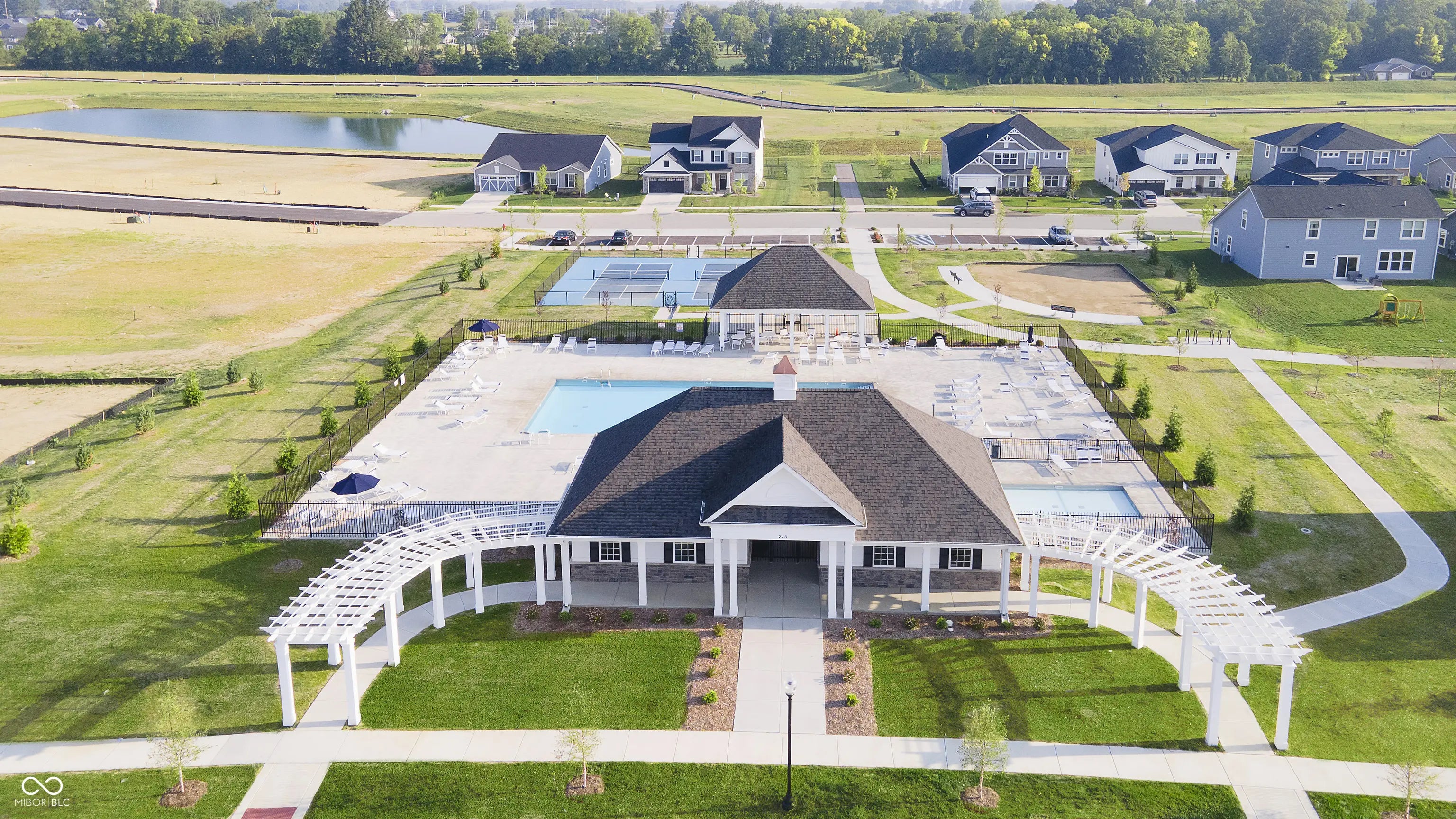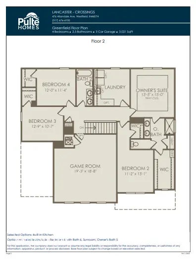 Welcome to the Greenfield model, a thoughtfully designed home nestled on a picturesque pond-view lot in the highly sought-after Lancaster neighborhood, just a short walk from community amenities. Step inside to discover a bright and airy open-concept layout, perfect for entertaining and everyday living. The chef's kitchen is a true showpiece, featuring 42" white cabinetry, Iced White Quartz countertops, gas appliances, an oversized island, and a spacious pantry. Overlooking the cozy cafe area and expansive gathering room, complete with a fireplace and elegant black granite surround, this space is designed for effortless hosting and relaxation. The main level also offers a versatile flex room, ideal for a home office, study, or playroom, along with the Pulte Planning Center, a dedicated workspace perfect for managing daily tasks, homework, or household organization. The Everyday Entry provides a convenient drop zone with built-in storage, keeping clutter at bay as you transition from the three-car garage into the home. Upstairs, retreat to the luxurious owner's suite, boasting a tiled shower and a generous walk-in closet. Three additional bedrooms all with walk in closets provide ample space, while the enormous second-floor game room offers endless possibilities for recreation and entertainment. A super-laundry room on the second floor adds convenience, making household tasks a breeze. An irrigation system ensures a lush, well-maintained lawn. The location offers close proximity to the Monon Trail, top-rated Westfield-Washington School District, and a host of community amenities such as a bath house, pool, shade pavilion, wading pool, playground, athletic courts, and Trailhead Park. This impressive two-story home design is conveniently located near the Grand Park Sports Complex, upscale shopping, and dining at Clay Terrace, as well as being just minutes from US-31 and Downtown Westfield.