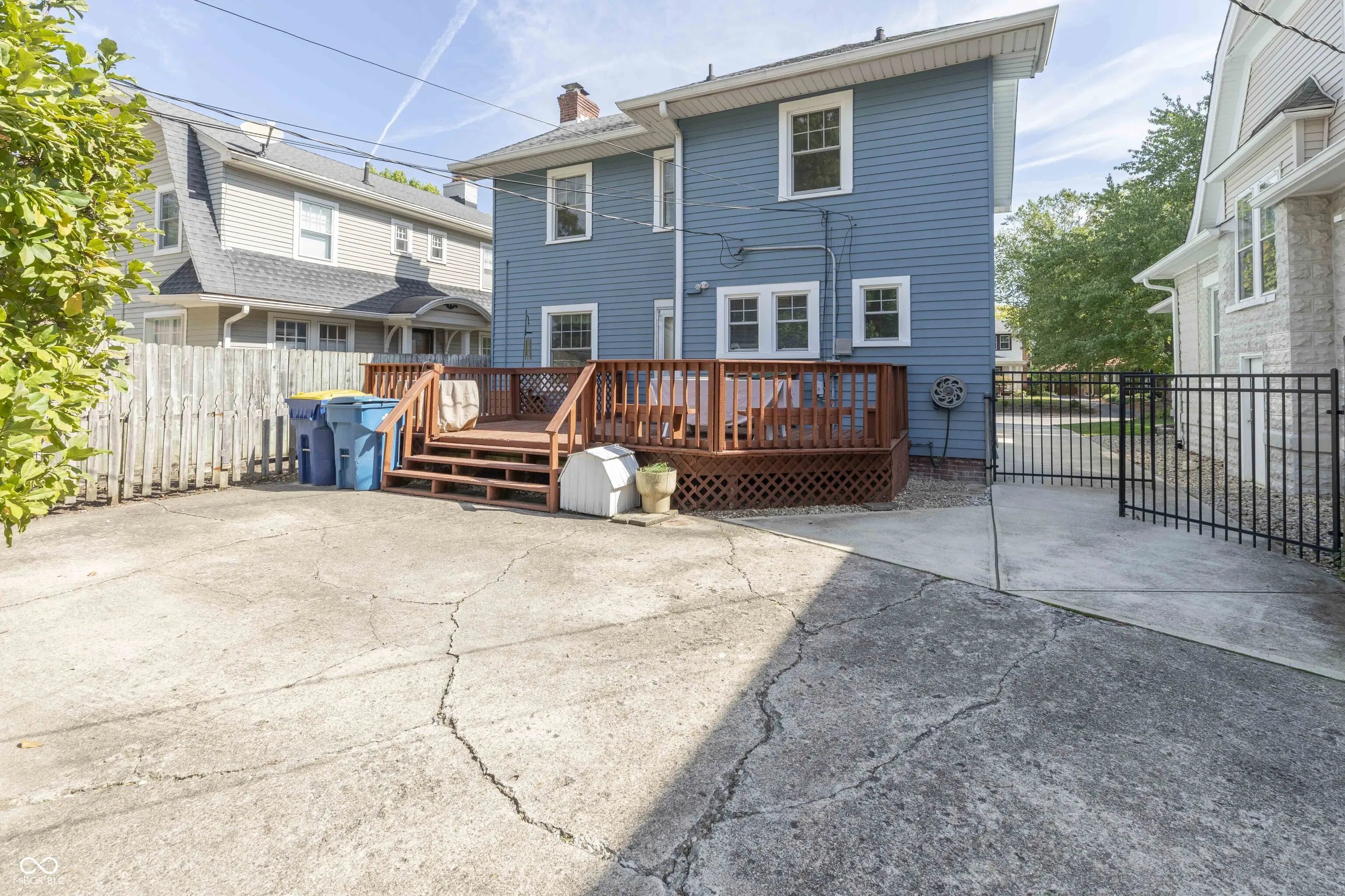 CLASSIC & CHARMING 1923 MERIDIAN KESSLER HOME! Ideal location- just minutes to Butler University, Monon Trail, the Center for Inquiry School #70, downtown, Broad Ripple, restaurants, parks and so much more. You'll feel right at home in this classic Colonial with arches and built-ins. Spacious main floor includes a large living room with gas fireplace and built in bookshelves. The formal dining room has a classic built in cabinet in the corner. Incredibly large rear deck is perfect for gatherings with friends and family. Rear yard with privacy fence has a private area that could be used for bonfires or a garden. Upstairs you will find a very large primary bedroom and two good sized bedrooms with hardwood floors and walk-in closets. The dry basement is where the washer and dryer hookups are. Large basement has plenty of storage space as well. Roof was last put in in 2014. Furnace and hot water heater installed in 2016 and A/C in 2020. All new windows in 2025! Siding is vinyl-coated steel. House is ready for your cosmetic improvements and is priced accordingly. Seller welcomes your offers. Home is sold AS-IS.