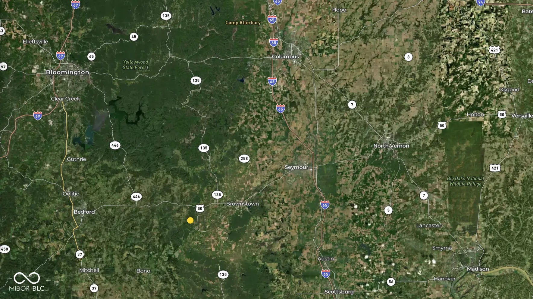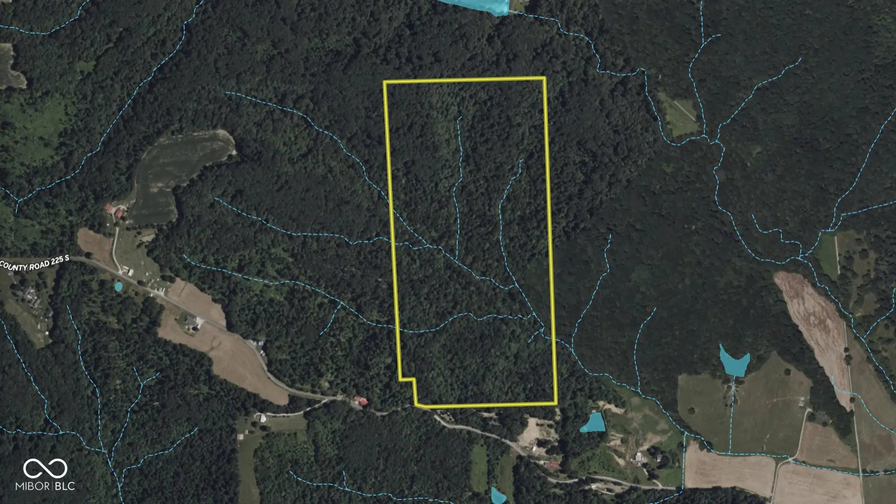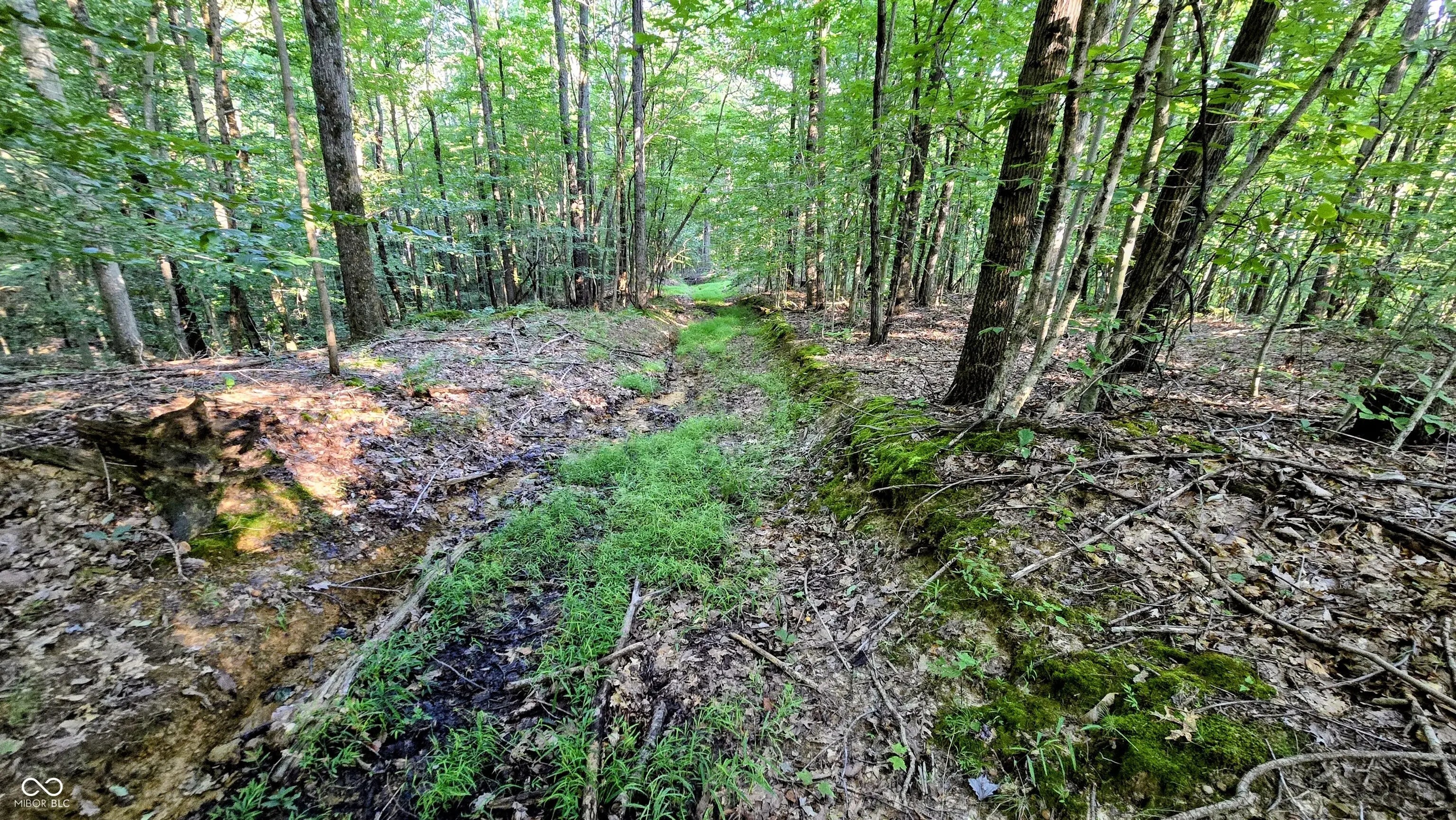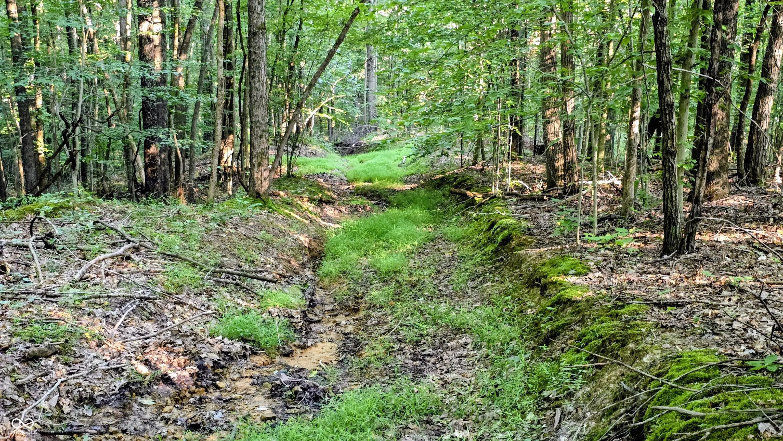 This property presents substantial acreage in southwest Jackson County, Indiana, configured as essentially a rectangle extending inland from the roadway. Entry to the property includes a pull-through camp area set above the road and screened by tall timber. Two gates-one at each end-facilitate convenient drive-through access. The property's network of trails is robust and well-maintained, allowing the frequent use of SXS and ATVs. These trails traverse diverse terrain, including wooded ridges, creek bottom, and woodland hilltops. The mature timber stand comprises oak, walnut, hickory, gum, and poplar, along with varied understory and age classes. Even in the summer months, visibility through the woods extends 100 yards or more, aiding navigation and wildlife observation. Trail routes descend through hills and ridges to a wide-open creek bottom, then ascend again to a long, tall ridge on the far side. Wildlife activity is evident-several deer and wild turkey were encountered upon entry, indicating daily use of the habitat. Access is convenient: the property sits a short distance from U.S. 50, providing straightforward regional travel to the east or west. Nearby towns offer practical amenities: Brownstown and Bedford are the closest centers for dining and shopping; Seymour and Bloomington lie a modest drive away and offer broader lodging, dining, and entertainment options. Several state and national recreation areas are within reach-including nearby Jackson-Washington State Forest and Spring Mill State Park to the southwest, as well as portions of Hoosier National Forest and Austin Bottoms not far away. Indianapolis is approximately 1.5 hours north and Louisville about one hour south, making this property a logical midpoint gathering spot. Overall, this parcel offers substantial timbered acreage, mechanical access via trails, gated privacy, and proximity to infrastructure and amenities-offering versatility for recreation, hunting, or retreat.
