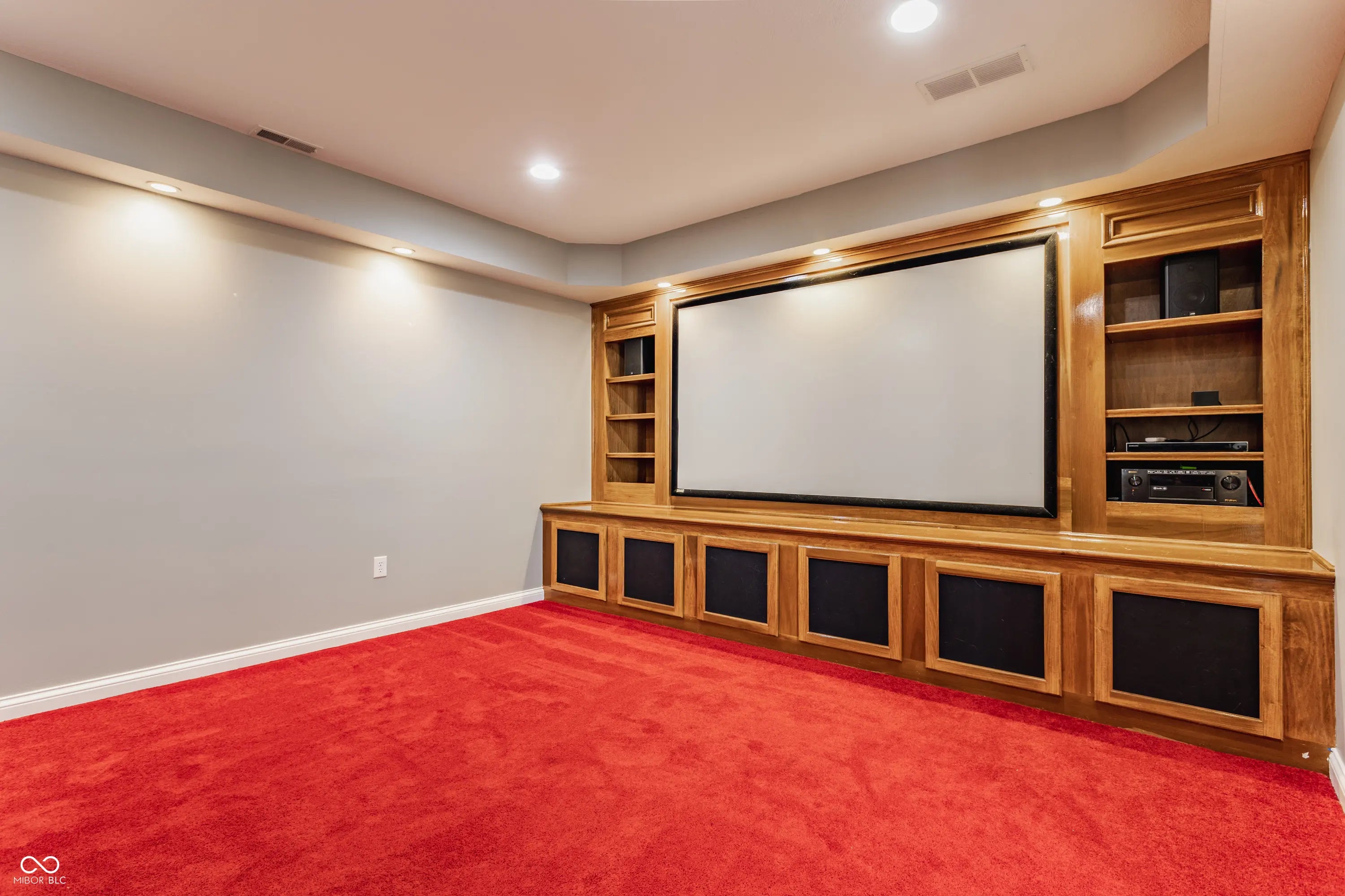 Welcome to 954 Deer Lake Drive in prestigious Buckhorn Estates, Carmel-where elegant design meets at-home indulgence. This stunning custom home offers nearly 7,200 square feet with 7 bedrooms and 5.5 baths, all set on a serene half-acre lot. The main level showcases a dramatic two-story great room with a wall of windows, custom built-ins, and a double-sided fireplace that connects to the cozy hearth room. The gourmet kitchen features granite countertops, stainless steel appliances, double ovens, and a large island, perfect for everyday living and entertaining. A refined den with coffered ceilings, a formal dining room, mudroom, and laundry room add both charm and function. Upstairs, generously sized bedrooms each feature ensuite baths and walk-in closets, while the luxurious primary suite offers a spa-like bathroom and oversized walk-in closet. The fully finished walk-out lower level is where this home truly stands apart. Enjoy a custom movie theater for cinematic nights, a dedicated gym, and even your own private sauna for spa-level relaxation. The lower level also includes a rec room with wet bar, a family room with fireplace, two additional bedrooms, a full bath, and ample storage. Outdoors, a spacious deck overlooks the lush backyard, offering privacy and space for gatherings or quiet evenings at home. Few homes combine lifestyle amenities at this level-movie theater, gym, sauna, and expansive living space-all in such a highly sought-after Carmel location. Buckhorn Estates offers privacy, prestige, and top-tier community living. This home is move-in ready and built to impress.