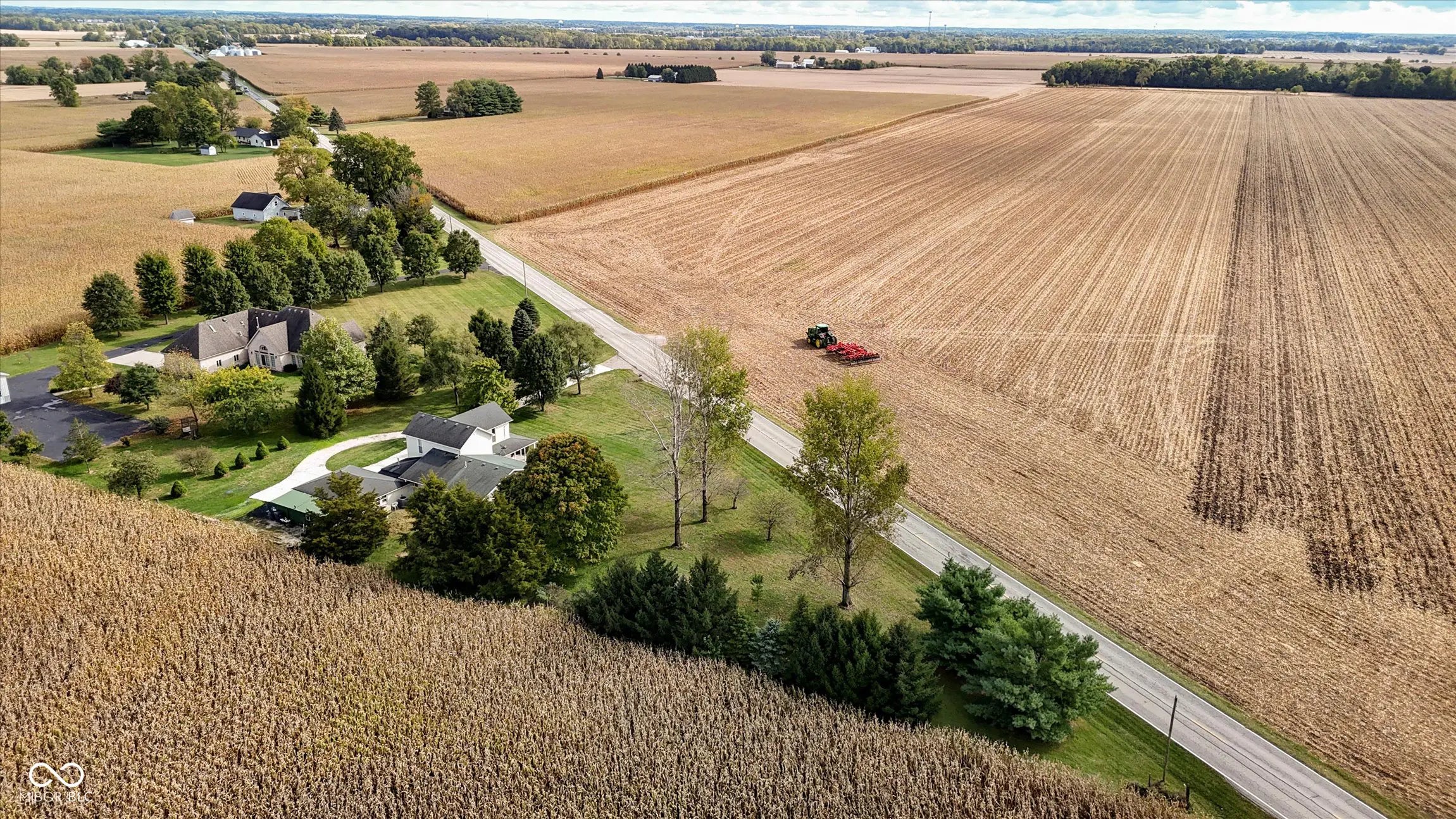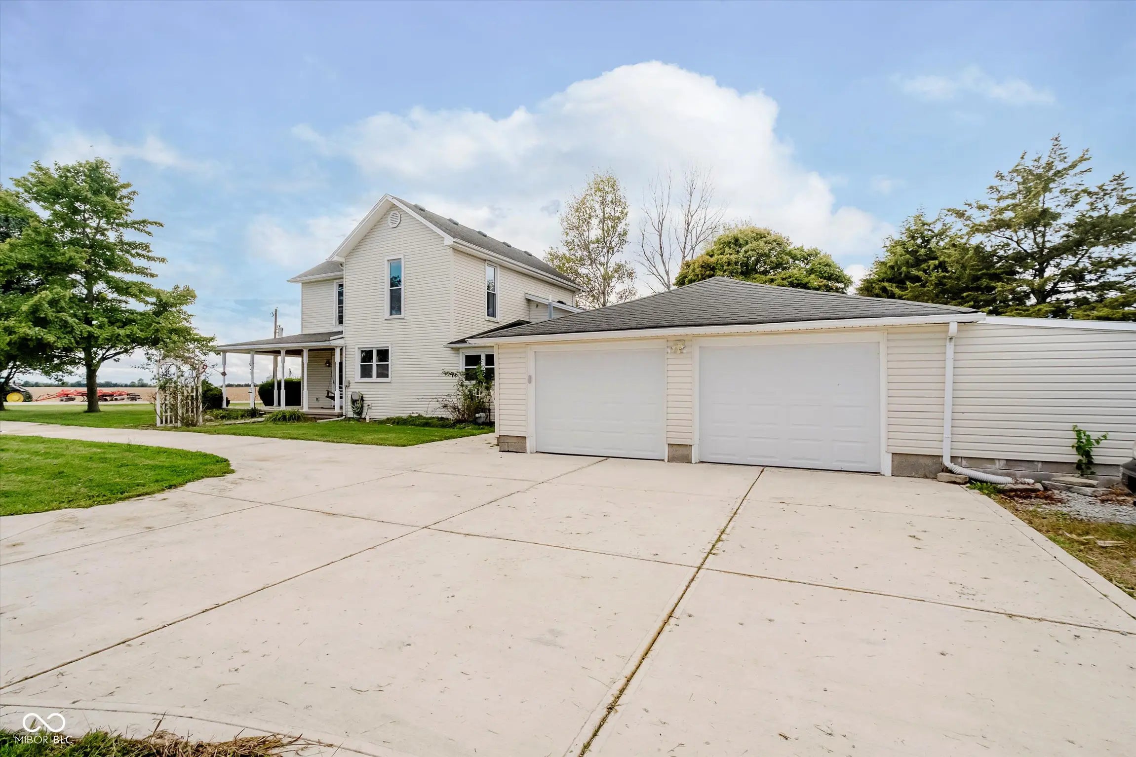 Located at 6560 Lapel Road (also known as W State Road 132), this charming farmhouse with a wrap-around porch sits on over an acre within the Frankton-Lapel school district. Virtually staged photos help you envision this as your future home! The formal living area features arched walkways, hardwood floors, wainscoting, and a ceiling fan, while the dining area is perfect for casual or formal gatherings. The family room offers hardwood floors, a cozy fireplace, recessed lighting, and a ceiling fan. The kitchen boasts stainless steel appliances, dark cabinetry, light wood flooring, and decorative ceiling tiles. A stylish laundry room provides ample cabinet and counter space, accommodating a full-sized washer and dryer. The main level includes a primary bedroom with an ensuite featuring a shower/tub combo, neutral carpeting, a ceiling fan, and sconces. A second main-level bedroom, virtually staged as a home office, includes a wood plank feature wall. Upstairs, two spacious bedrooms with natural light, hardwood floors, and ceiling fans share a full bathroom with updated finishes. A versatile loft offers additional living space. The two-car garage includes a workshop, concrete floors, and supplemental heating. A beautiful and functional mudroom with elegant wood-paneled walls includes the home water filter system, well pump, and furnace. A bonus room with insulated walls and track lighting offers endless possibilities. Outside, enjoy a covered porch, circular driveway, a well-kept lawn, an outbuilding for storage, and space for a garden. Set on a picturesque 1.01-acre lot, this homestead is beautifully framed by expansive farmland.