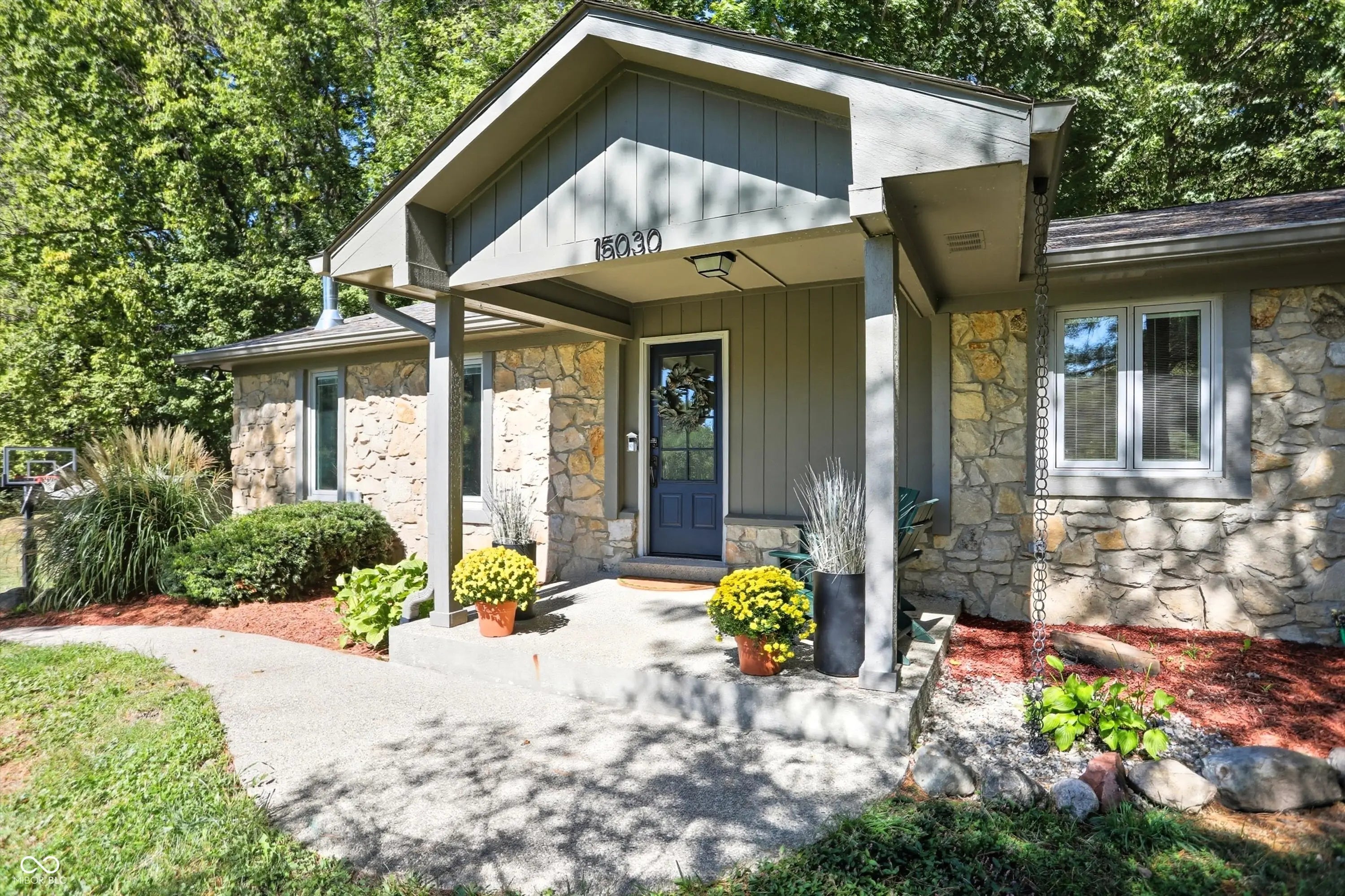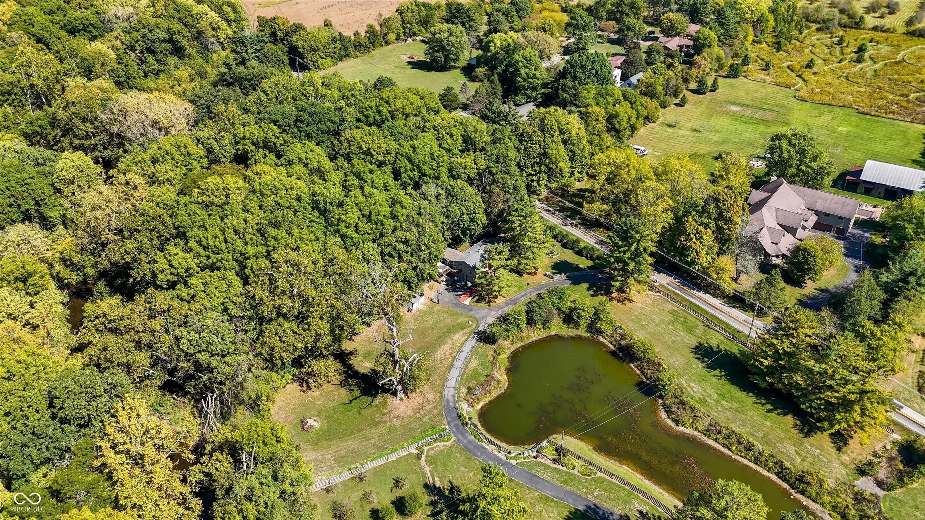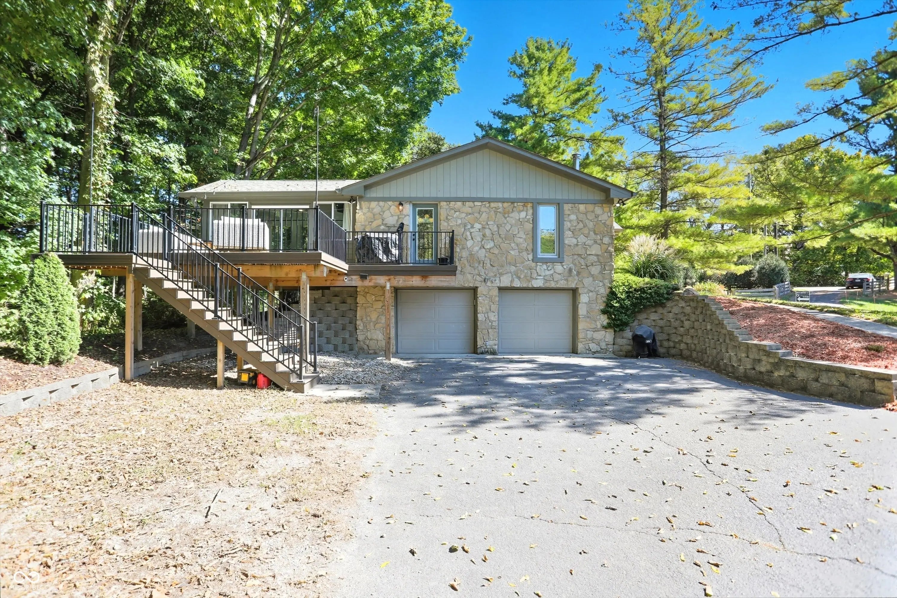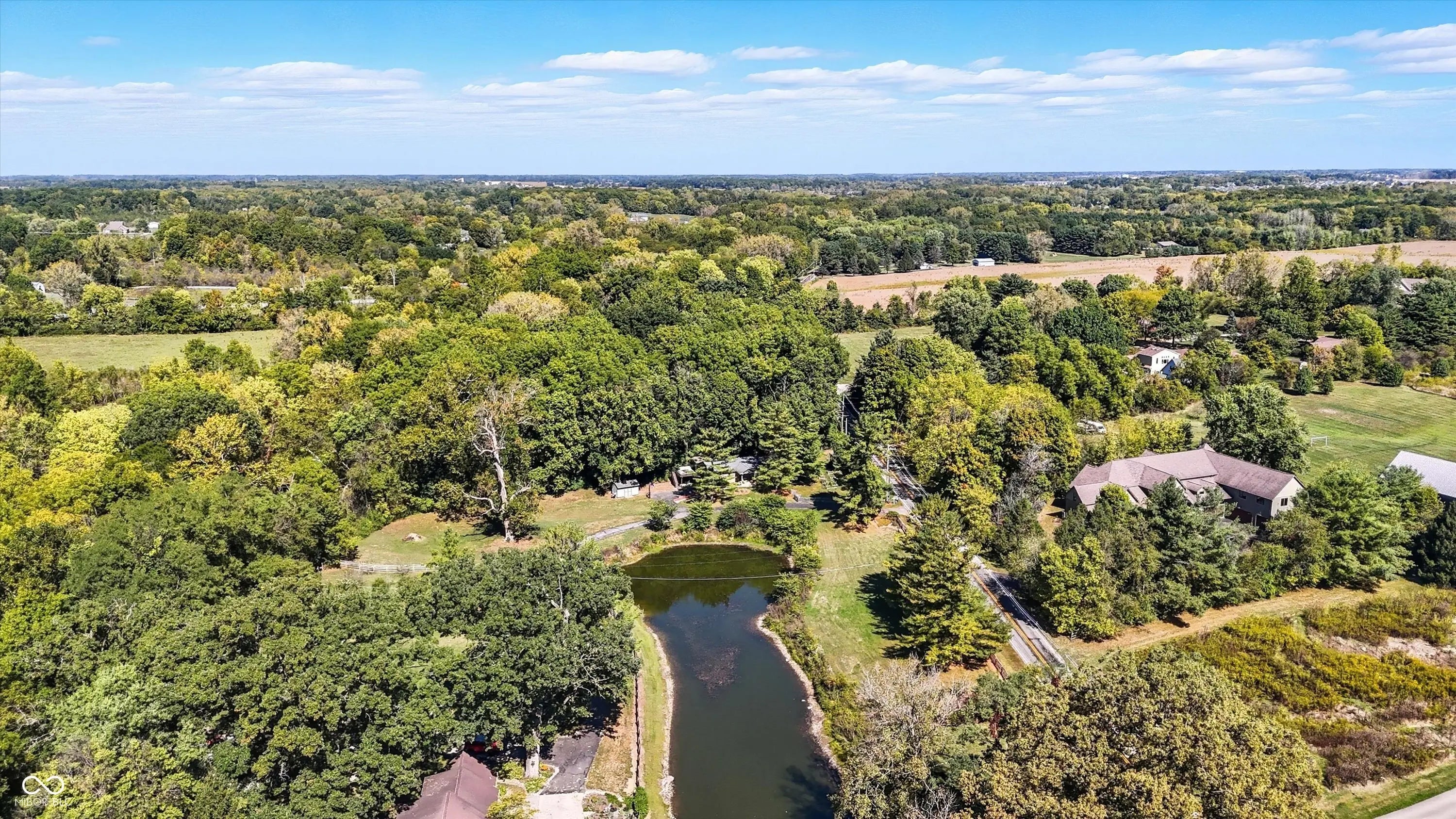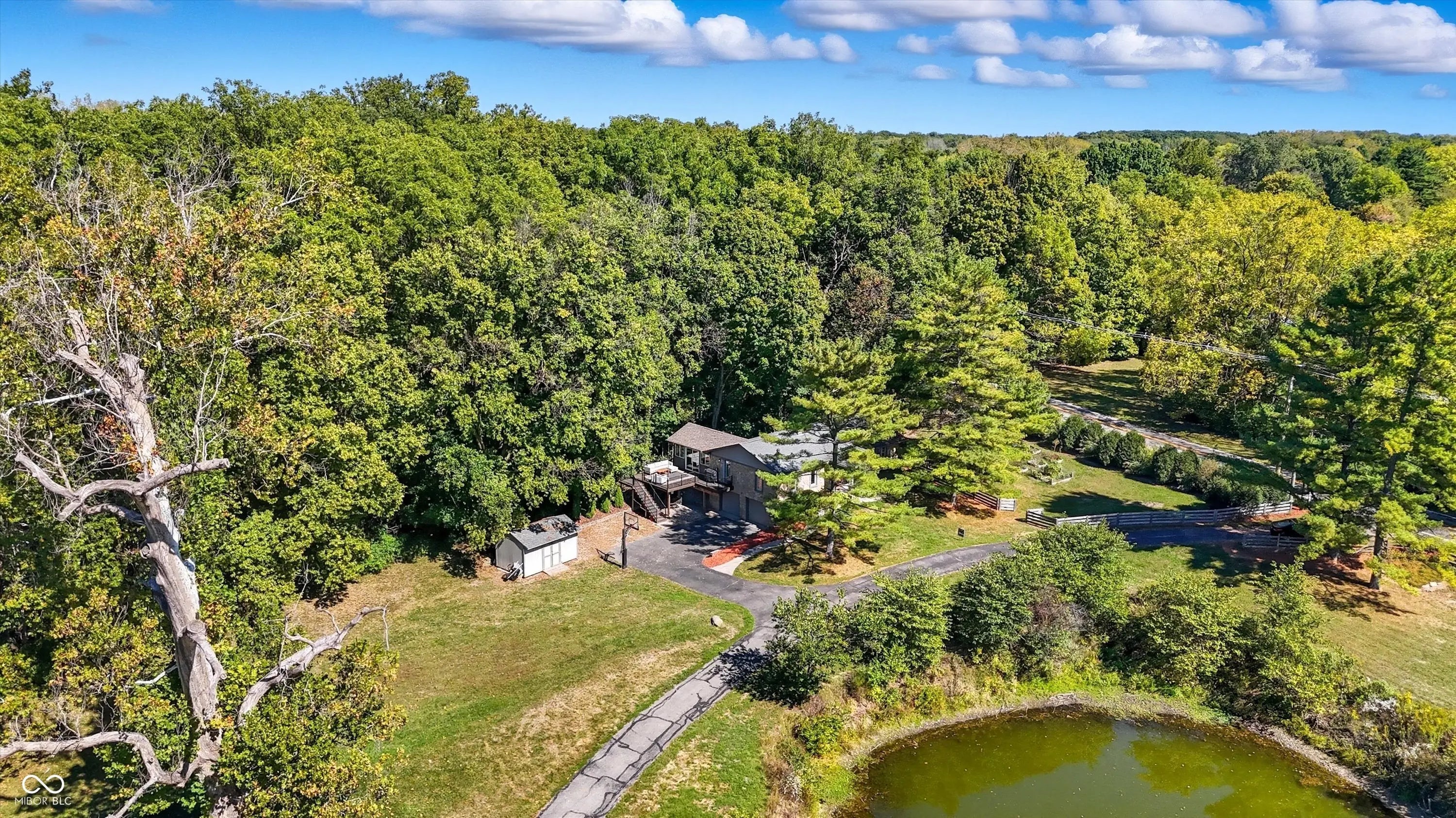 Country charm with modern updates! NO HOA, just peace and quiet from the busy day. Enjoy privacy and natural beauty just minutes from everything, including schools, shopping, and dining. Surrounded by mature trees with Little Eagle Creek and a private pond next door, this setting is truly one of a kind. Home features include an updated kitchen with new quartz countertops and an island, refreshed bathrooms, LVP flooring throughout, newer Andersen windows with built-in blinds, and a nature-filled sunroom with panoramic views of the trees. The living room offers a cozy electric fireplace, while the finished basement provides versatile space for entertaining, a TV room, playroom-or even a home gym-with convenient laundry and storage. Step outside to a low-maintenance composite deck with wrought iron railings, a fully fenced side yard, and a mini barn. Recent updates include a new reverse osmosis system & UV water system, new dishwasher, exterior paint, new light fixtures, updated kitchen with quartz countertops, and more. Enjoy the best of both worlds-nature and convenience-all in one property!