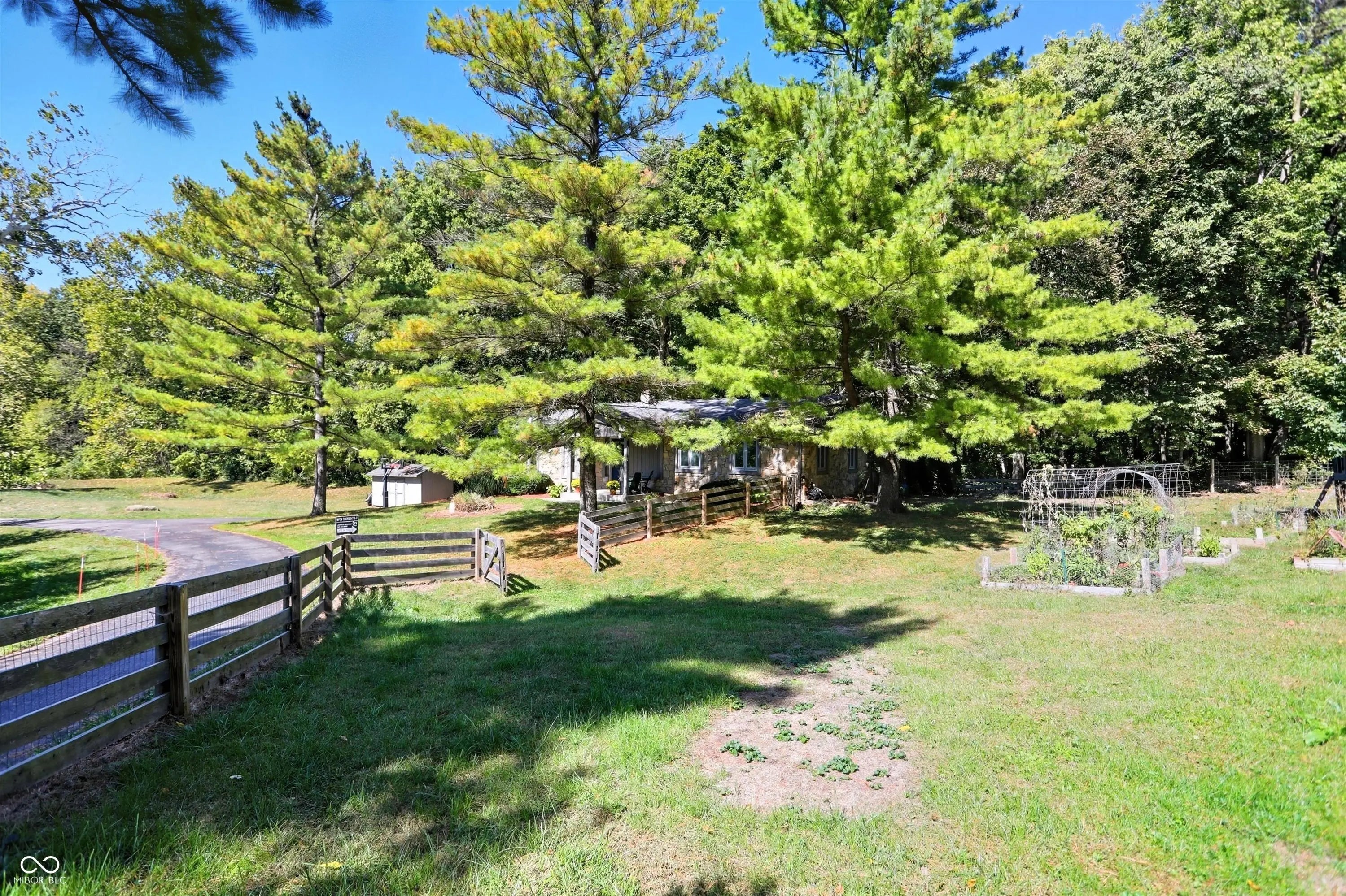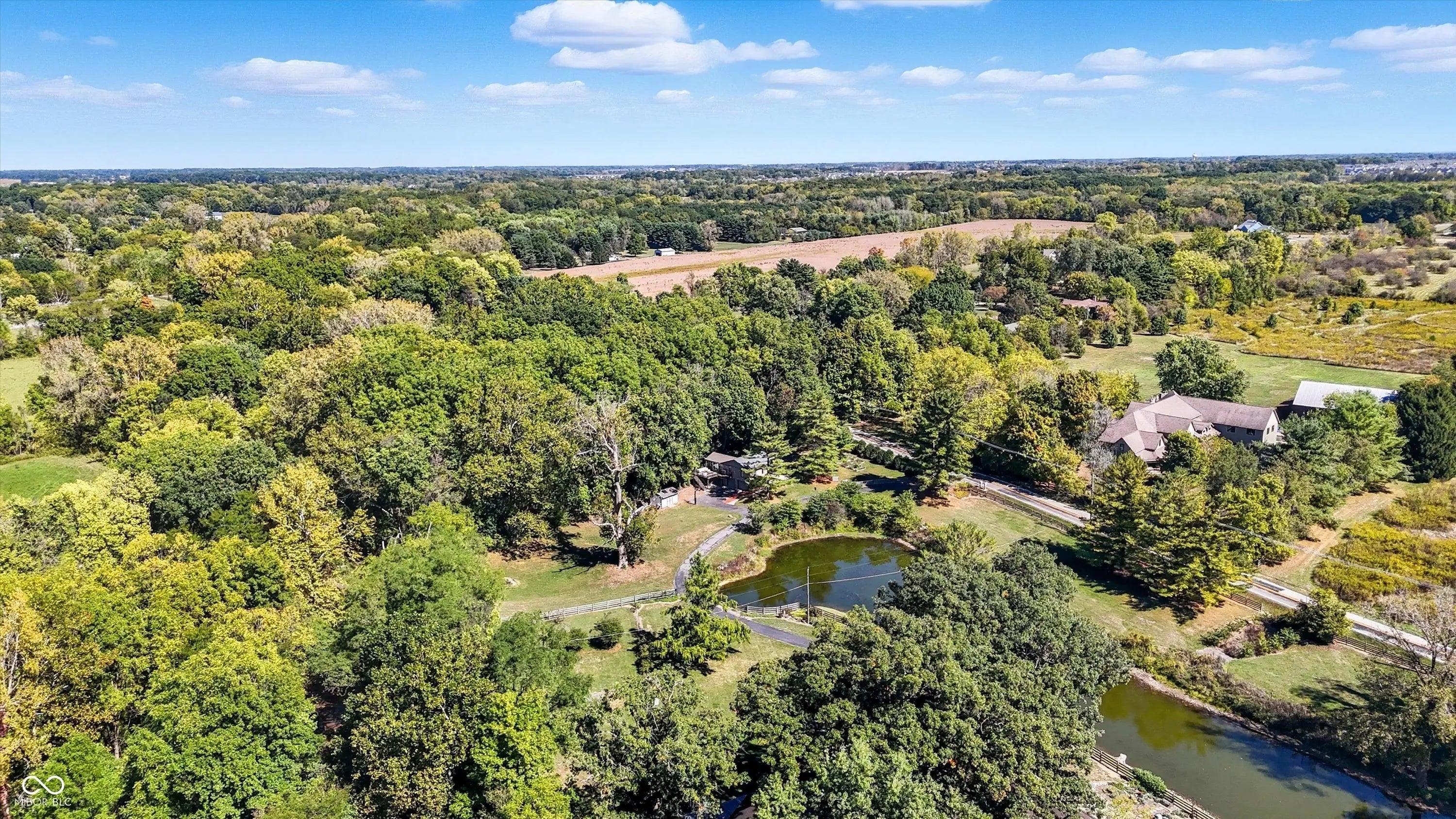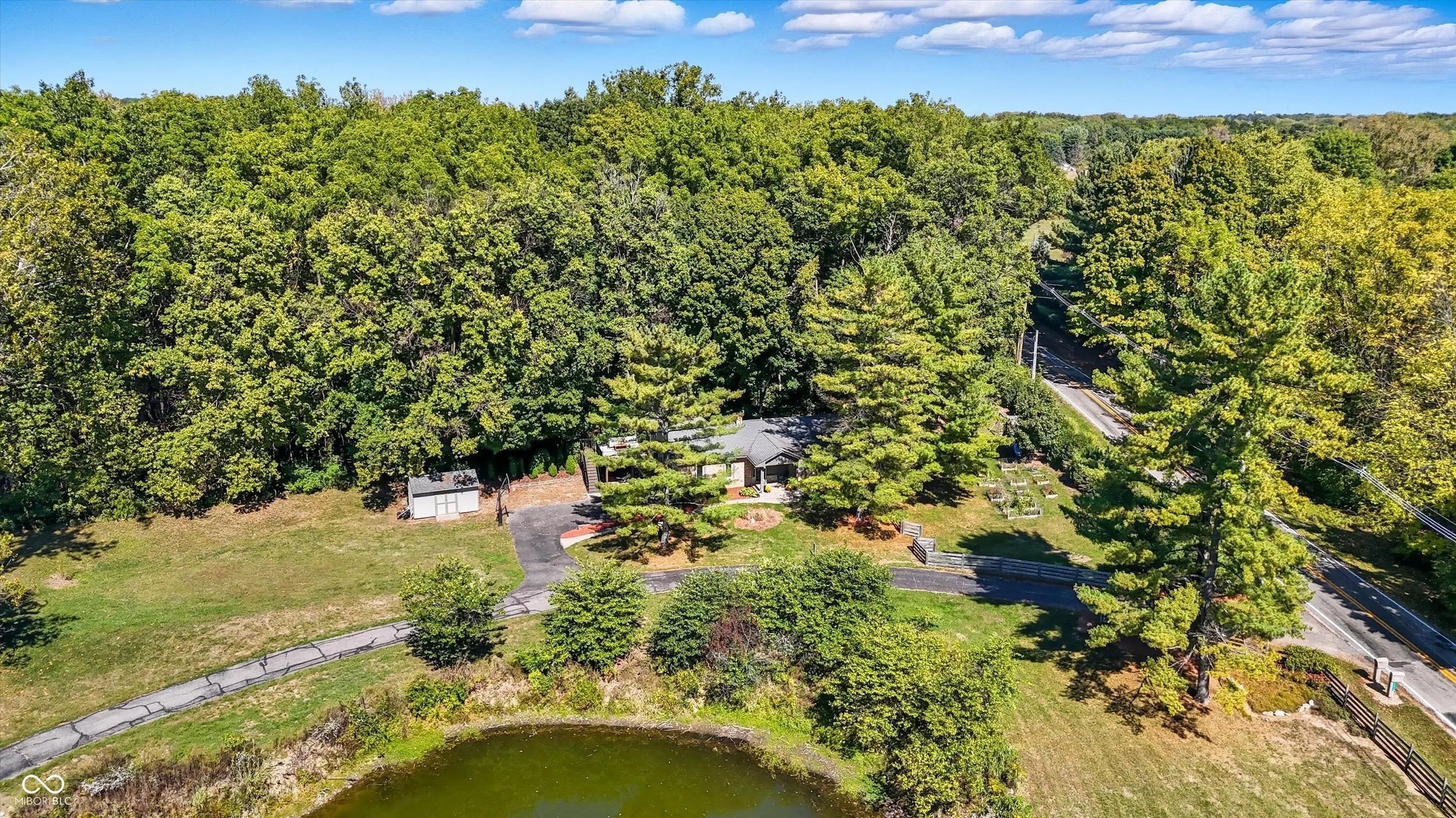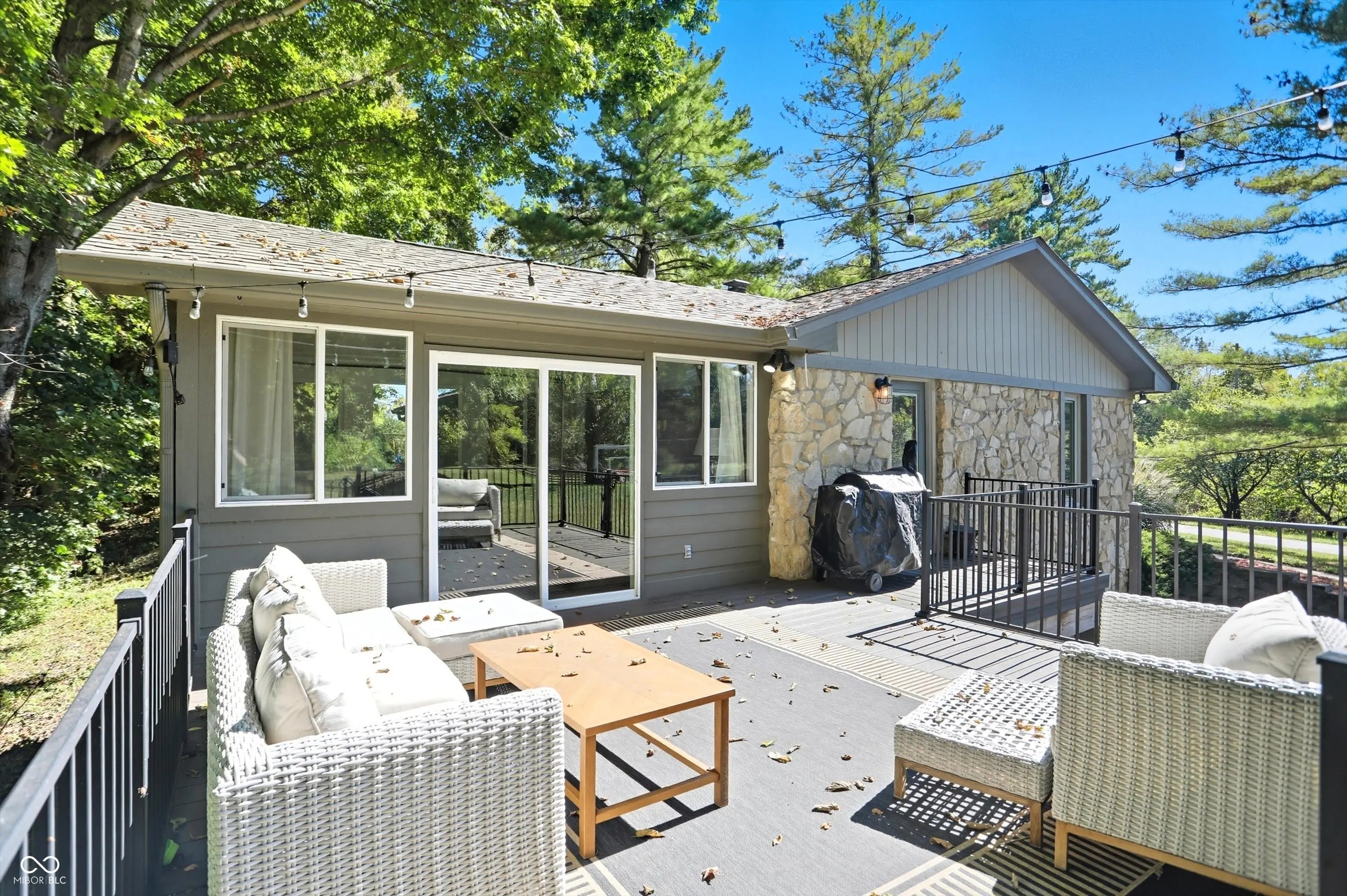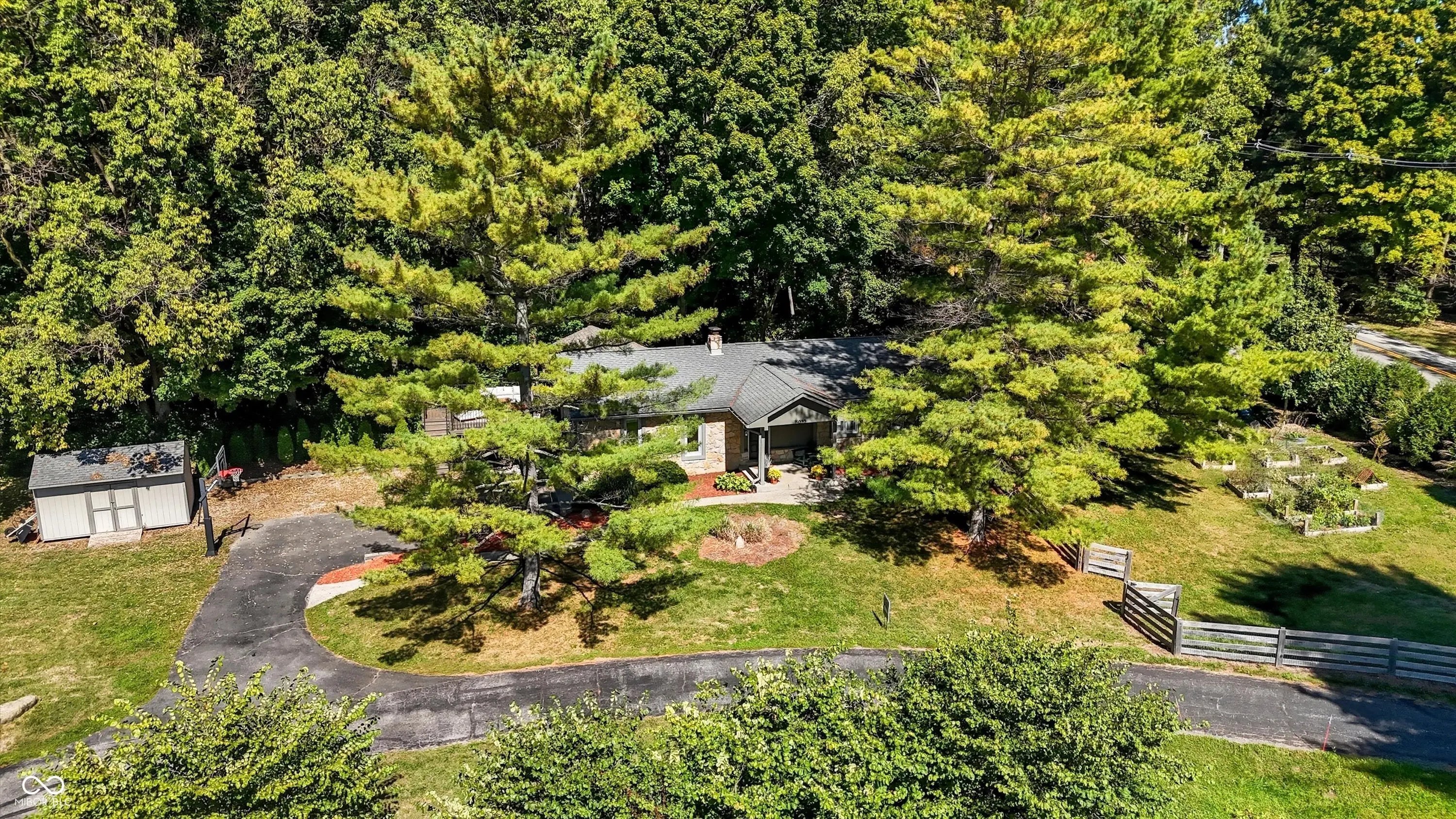 Country charm with modern updates! NO HOA, just peace and quiet from the busy day. Enjoy privacy and natural beauty just minutes from everything, including schools, shopping, and dining. Surrounded by mature trees with Little Eagle Creek and a private pond next door, this setting is truly one of a kind. Home features include an updated kitchen with new quartz countertops and an island, refreshed bathrooms, LVP flooring throughout, newer Andersen windows with built-in blinds, and a nature-filled sunroom with panoramic views of the trees. The living room offers a cozy electric fireplace, while the finished basement provides versatile space for entertaining, a TV room, playroom-or even a home gym-with convenient laundry and storage. Step outside to a low-maintenance composite deck with wrought iron railings, a fully fenced side yard, and a mini barn. Recent updates include a new reverse osmosis system & UV water system, new dishwasher, exterior paint, new light fixtures, updated kitchen with quartz countertops, and more. Enjoy the best of both worlds-nature and convenience-all in one property!