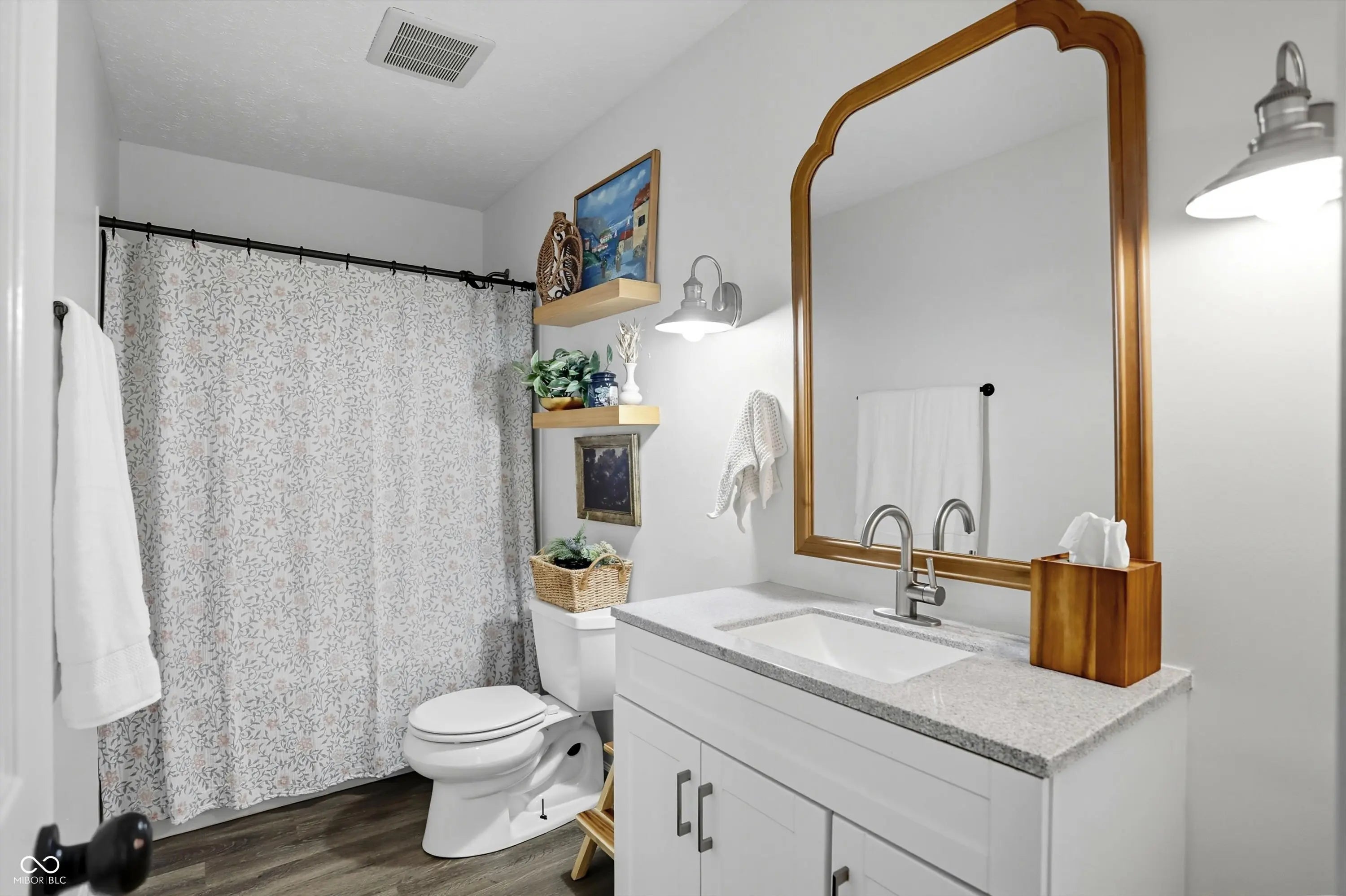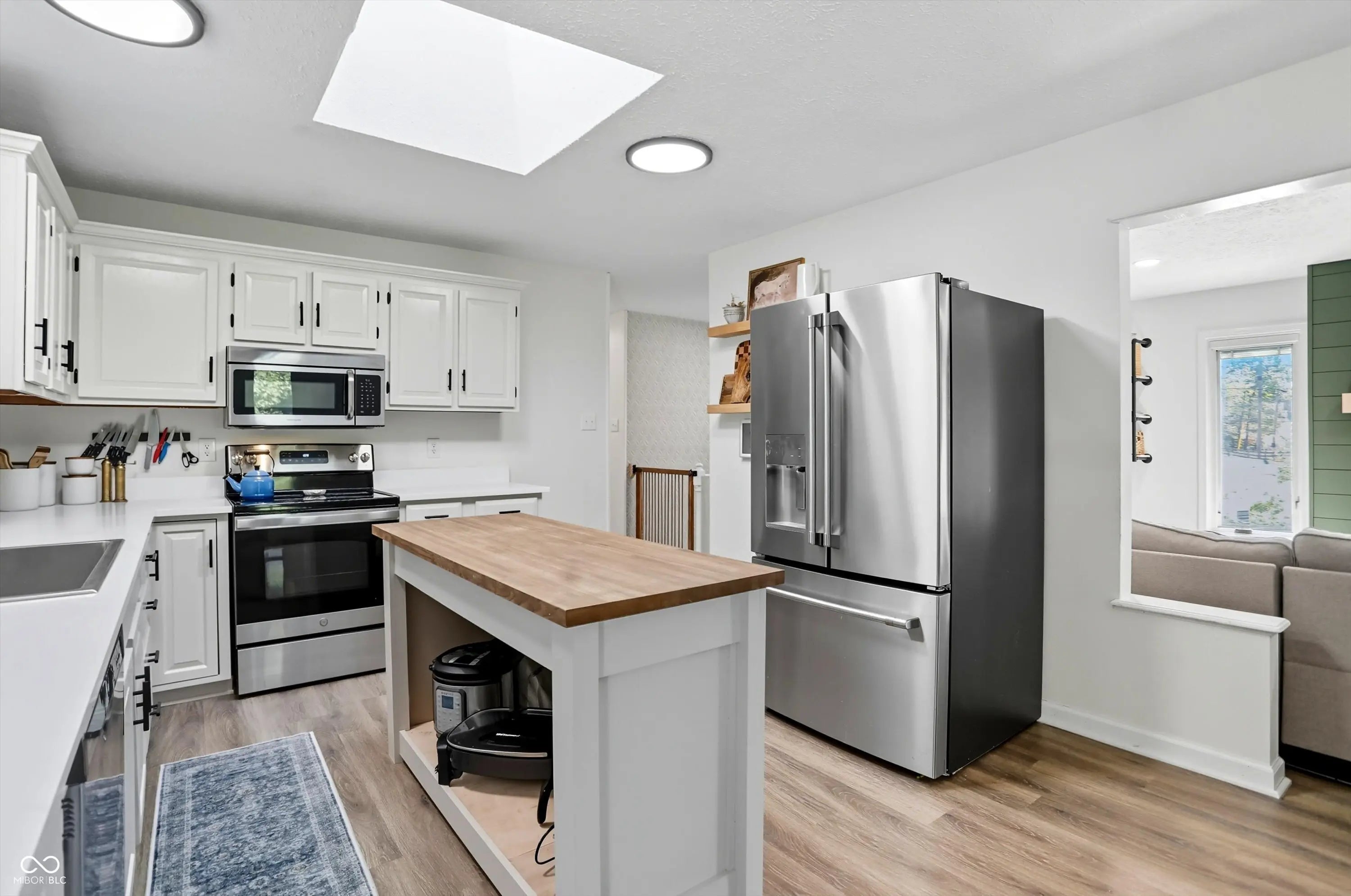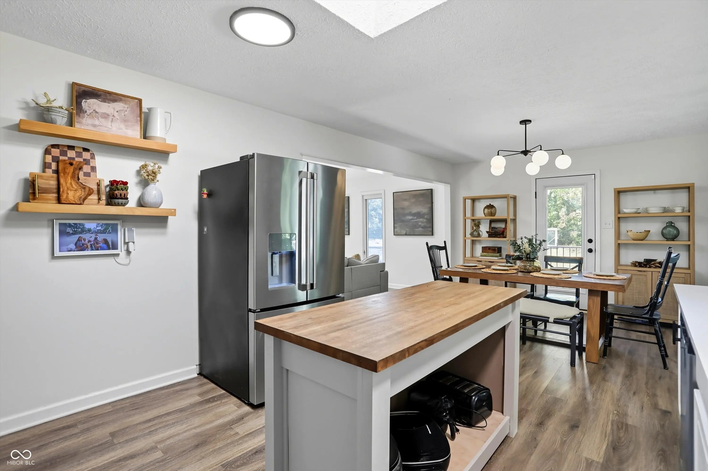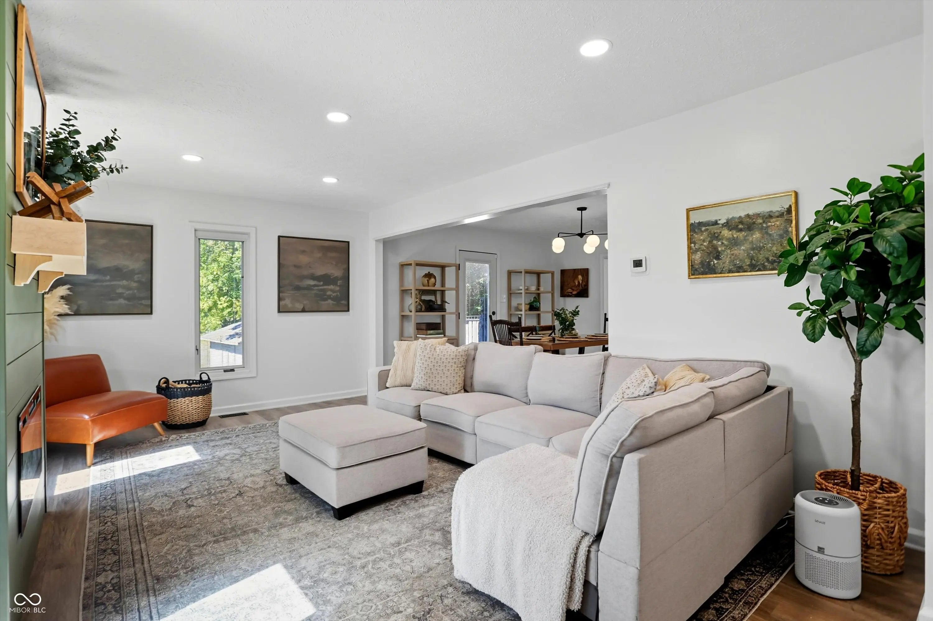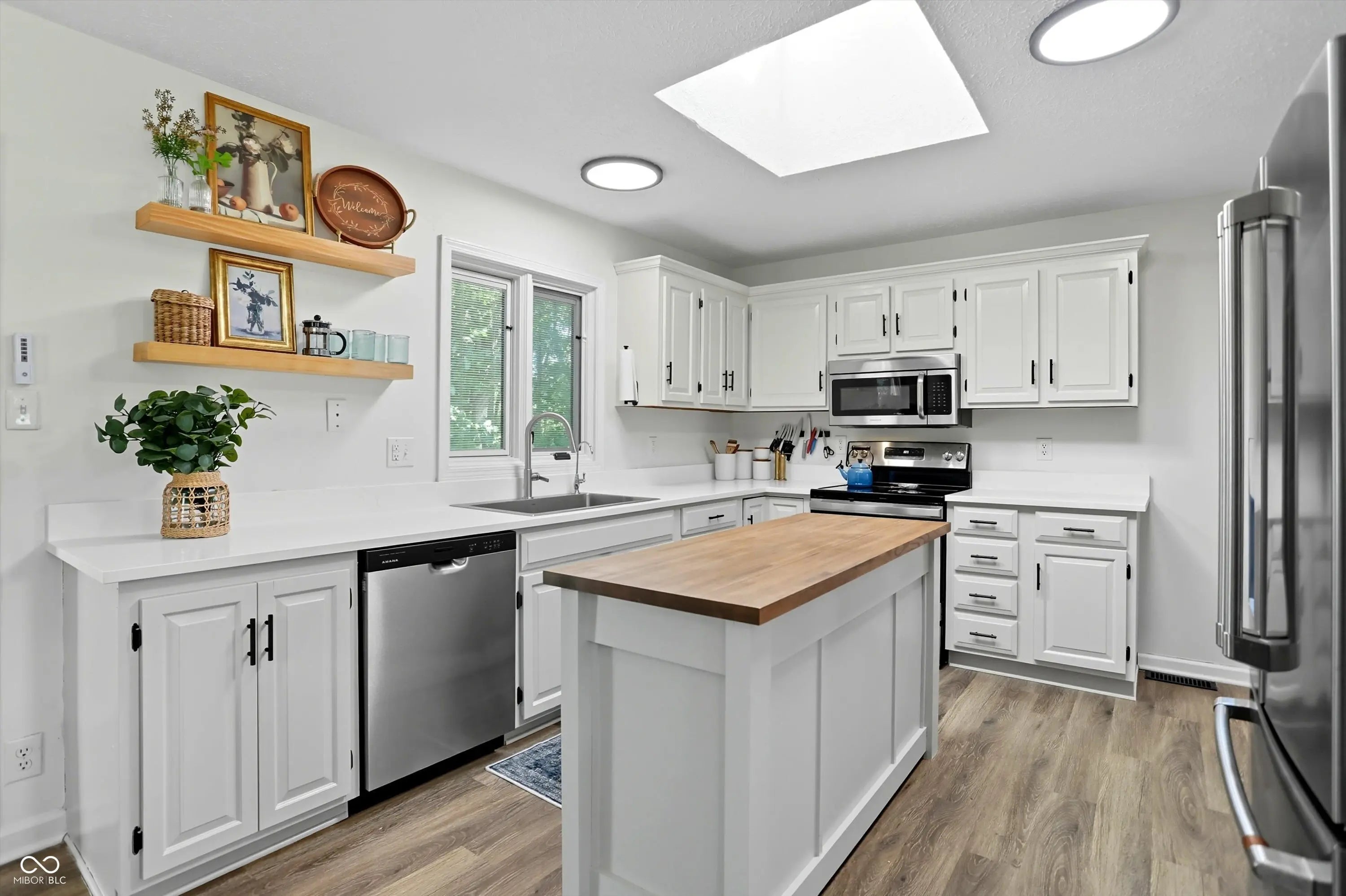 Country charm with modern updates! NO HOA, just peace and quiet from the busy day. Enjoy privacy and natural beauty just minutes from everything, including schools, shopping, and dining. Surrounded by mature trees with Little Eagle Creek and a private pond next door, this setting is truly one of a kind. Home features include an updated kitchen with new quartz countertops and an island, refreshed bathrooms, LVP flooring throughout, newer Andersen windows with built-in blinds, and a nature-filled sunroom with panoramic views of the trees. The living room offers a cozy electric fireplace, while the finished basement provides versatile space for entertaining, a TV room, playroom-or even a home gym-with convenient laundry and storage. Step outside to a low-maintenance composite deck with wrought iron railings, a fully fenced side yard, and a mini barn. Recent updates include a new reverse osmosis system & UV water system, new dishwasher, exterior paint, new light fixtures, updated kitchen with quartz countertops, and more. Enjoy the best of both worlds-nature and convenience-all in one property!