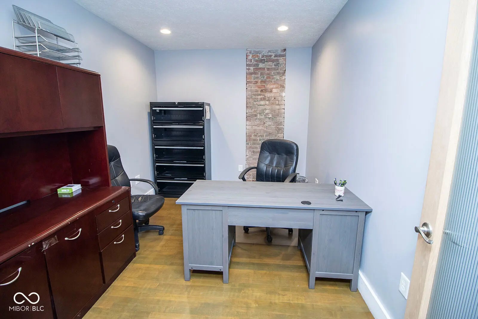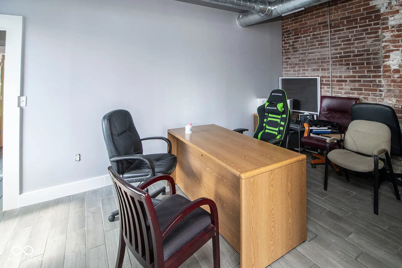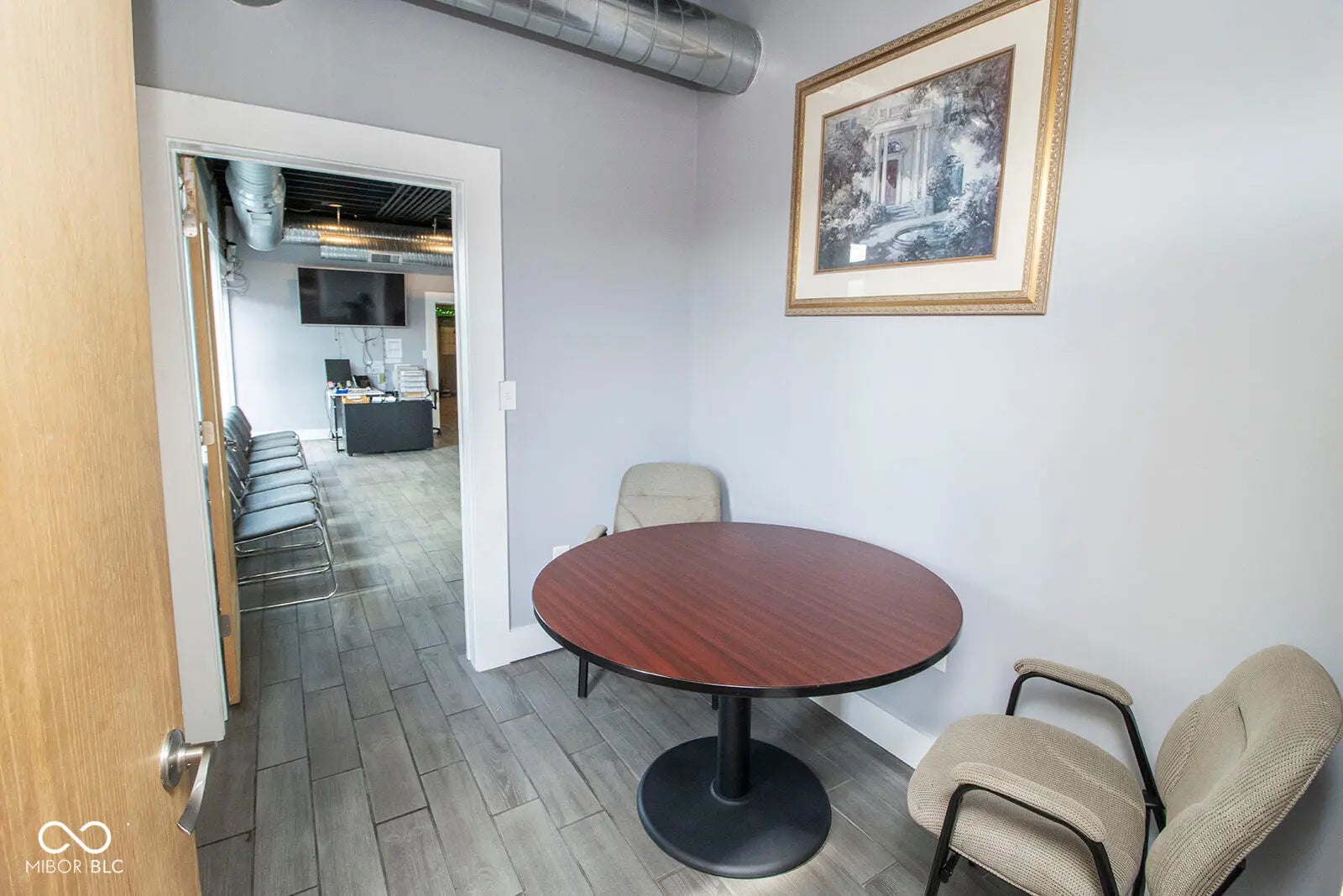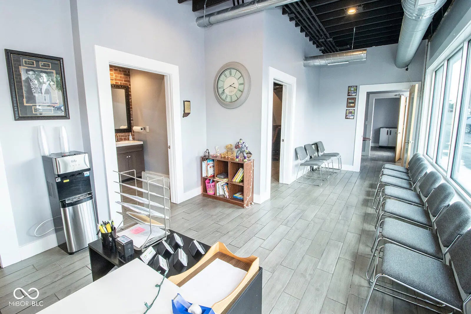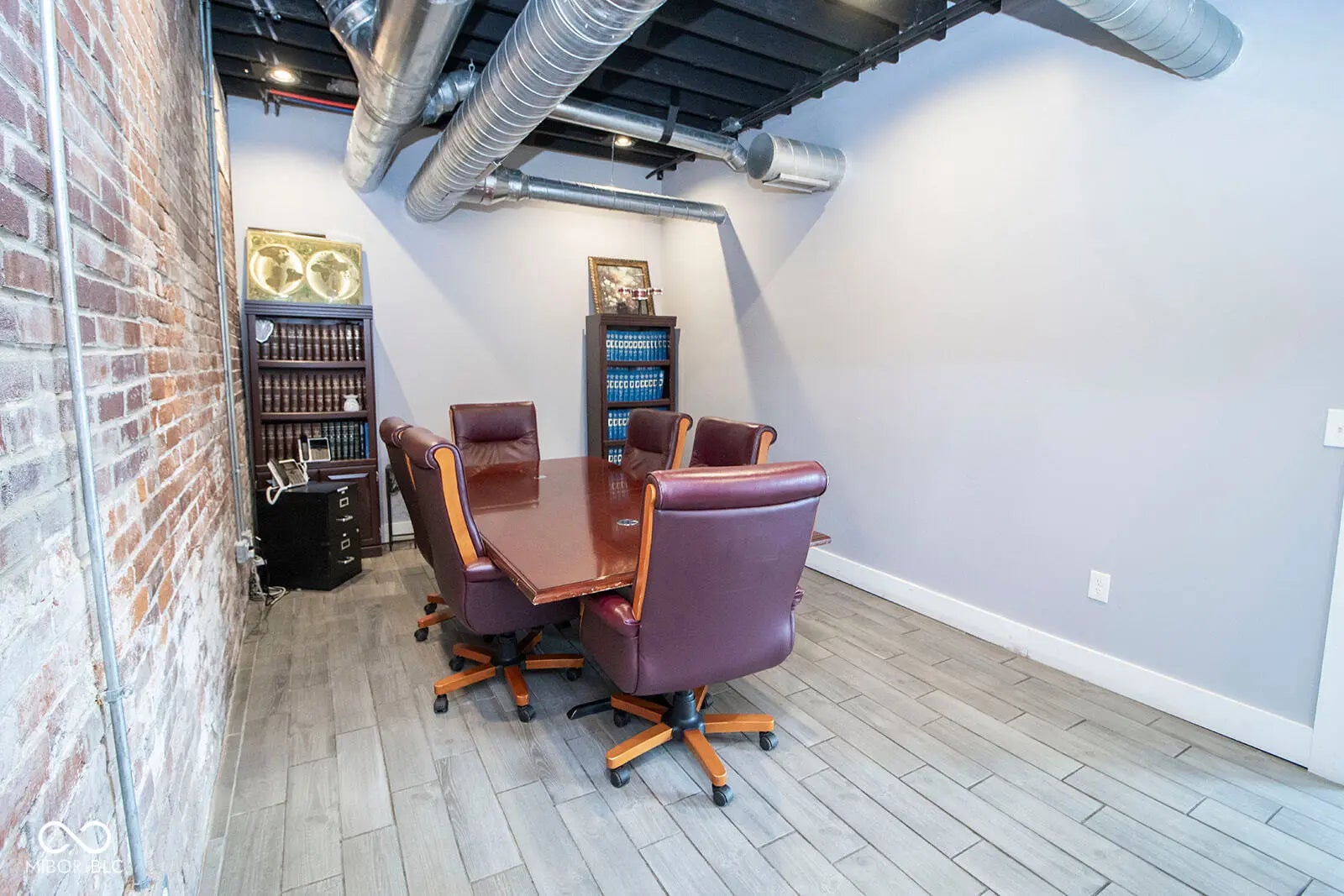 Nestled in the heart of downtown Anderson, just steps from the Madison County Courthouse and within view, this fully renovated 2,700 sq ft commercial property offers a rare blend of historic charm and modern sophistication. The fully renovated space exudes a rustic urban industrial aesthetic with exposed brick walls and hardwood floors, complemented by recent upgrades including a new rubber roof, new HVAC, and a freshly asphalted large parking lot. Inside, a spacious lobby welcomes clients, while room for 15+ associates, ample storage, a full kitchen, and three restrooms-including a full bath with shower-ensure functionality and comfort. Fully furnished and move-in ready, this turnkey property, currently thriving as a law office, is ideal for businesses seeking a prestigious address with unmatched visibility in downtown Anderson.