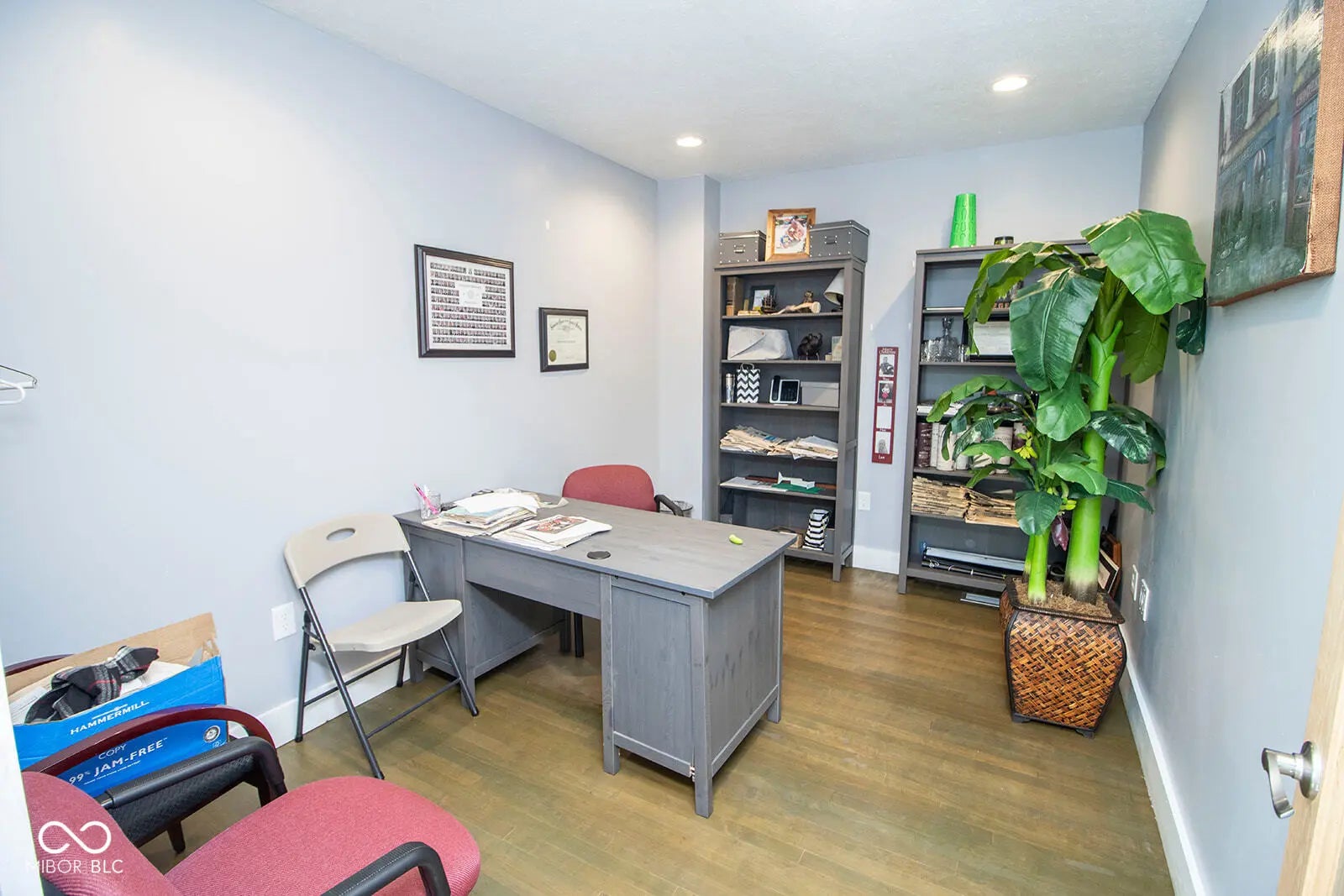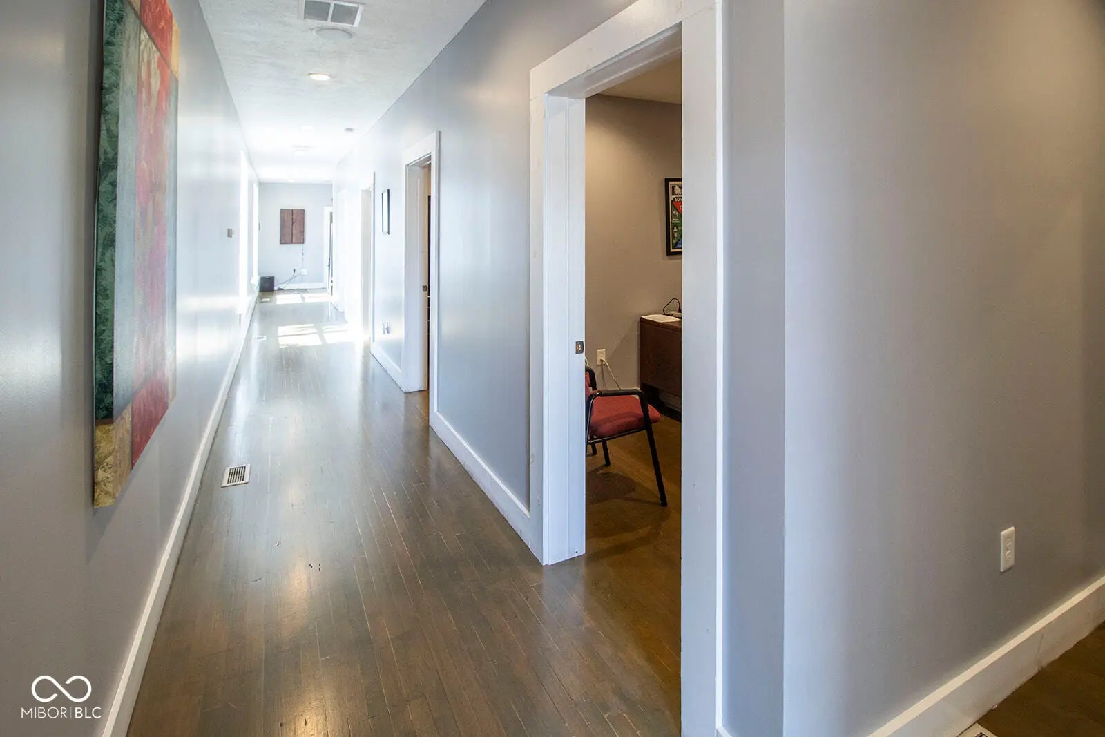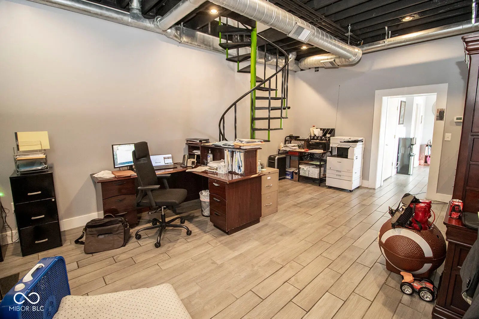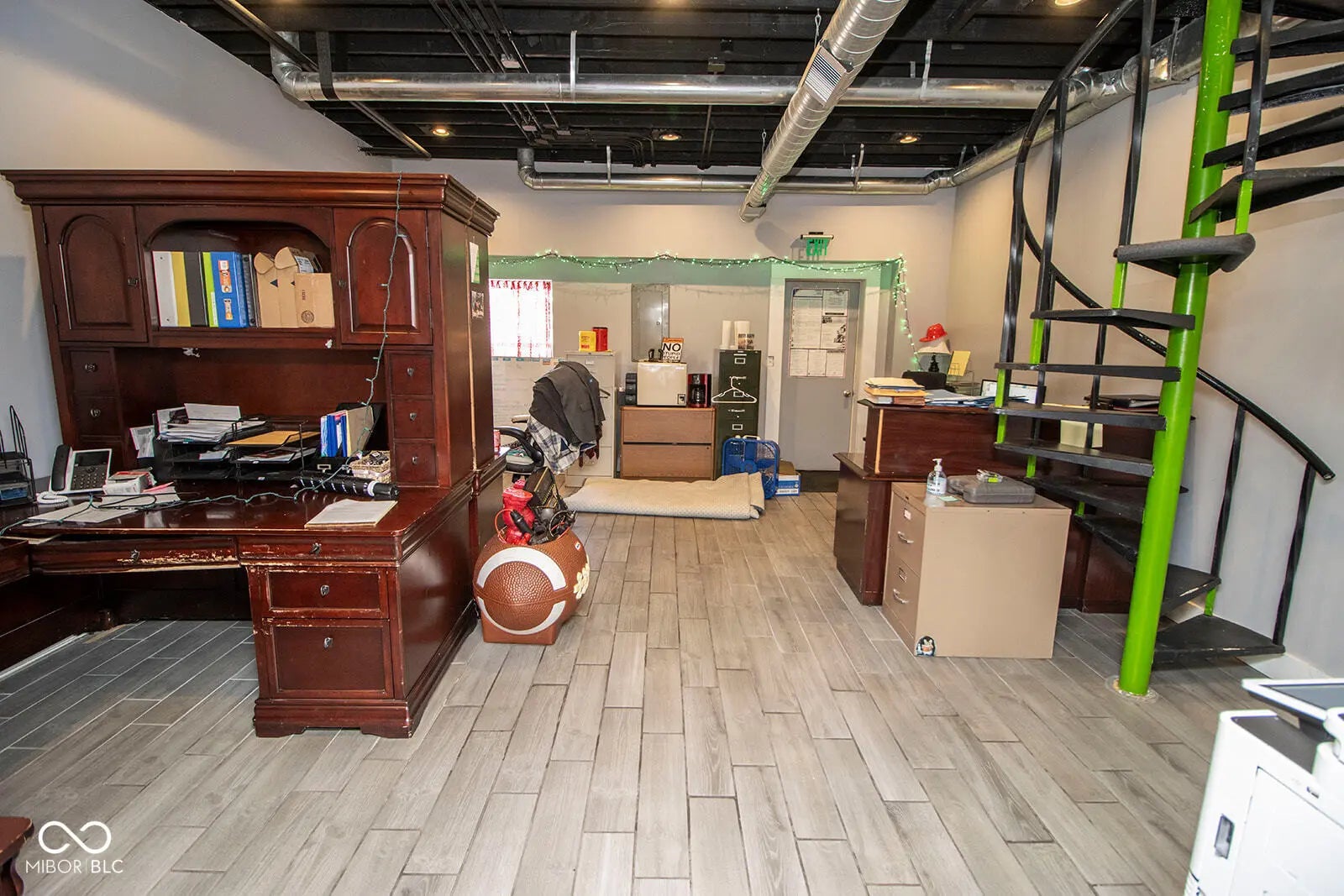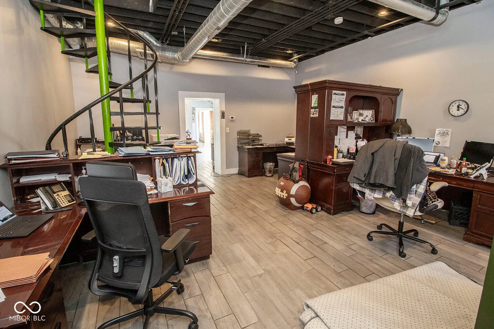 Nestled in the heart of downtown Anderson, just steps from the Madison County Courthouse and within view, this fully renovated 2,700 sq ft commercial property offers a rare blend of historic charm and modern sophistication. The fully renovated space exudes a rustic urban industrial aesthetic with exposed brick walls and hardwood floors, complemented by recent upgrades including a new rubber roof, new HVAC, and a freshly asphalted large parking lot. Inside, a spacious lobby welcomes clients, while room for 15+ associates, ample storage, a full kitchen, and three restrooms-including a full bath with shower-ensure functionality and comfort. Fully furnished and move-in ready, this turnkey property, currently thriving as a law office, is ideal for businesses seeking a prestigious address with unmatched visibility in downtown Anderson.
