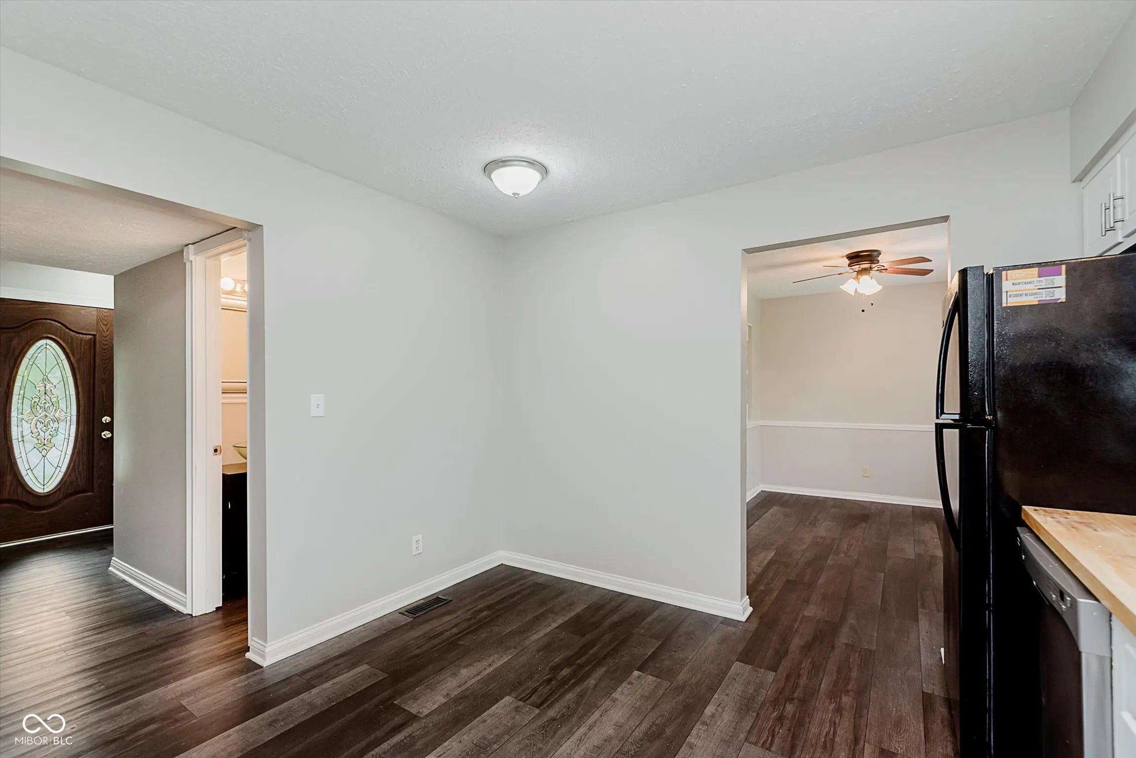 Inviting 3-Bedroom Home in North German Church Woods of Warren Township! No HOA! Welcome to this charming 3-bedroom, 1.5-bath home in the desirable North German Church Woods community. Offering just over 1,500 square feet of living space, this residence blends comfort, style, and functionality. You're welcomed by a quaint covered front porch, a two-car attached garage, and a concrete driveway that provides ample parking. Inside, the informal entryway leads to a convenient half bath, the upper level, or the inviting living room featuring LVP flooring, fresh neutral paint, and plenty of space for everyday living. The dining area is ideal for family meals and entertaining, flowing seamlessly into the updated kitchen-complete with bright white cabinetry, sleek black and stainless-steel appliances, wood-grain countertops, and coordinating LVP flooring. A closet-style laundry area sits just off the kitchen for added convenience. The kitchen overlooks a cozy family room, highlighted by a brick fireplace, built-in shelving, and sliding glass doors leading to the expansive fully fenced backyard with an open patio-perfect for relaxing or hosting outdoor gatherings. Upstairs, you'll find three spacious bedrooms, all featuring LVP flooring and fresh paint throughout. The primary bath includes a tub/shower combo and dual sinks, providing both comfort and functionality. Move-in ready and full of charm, this home offers the perfect balance of warmth and convenience in a sought-after Warren Township location.