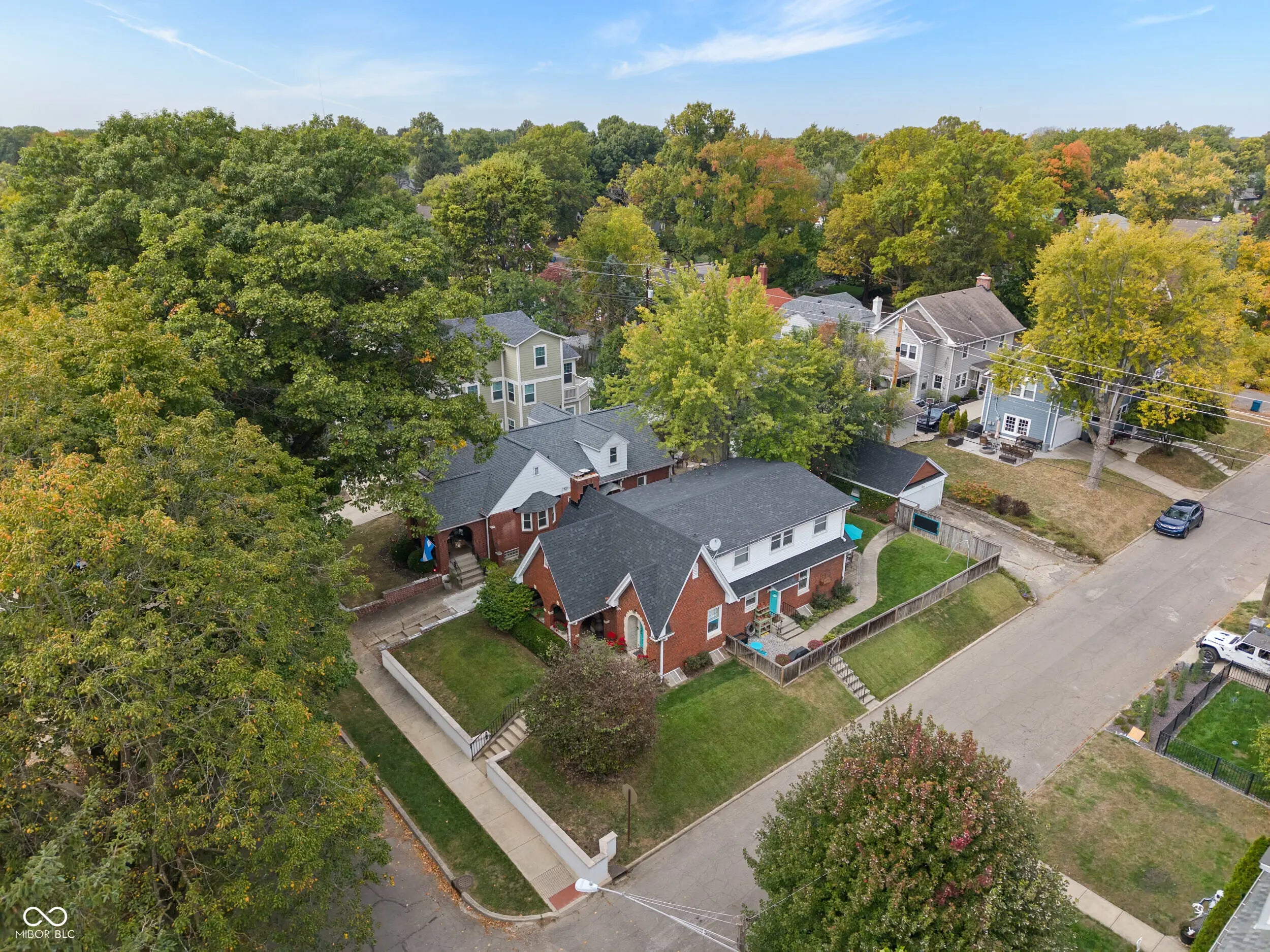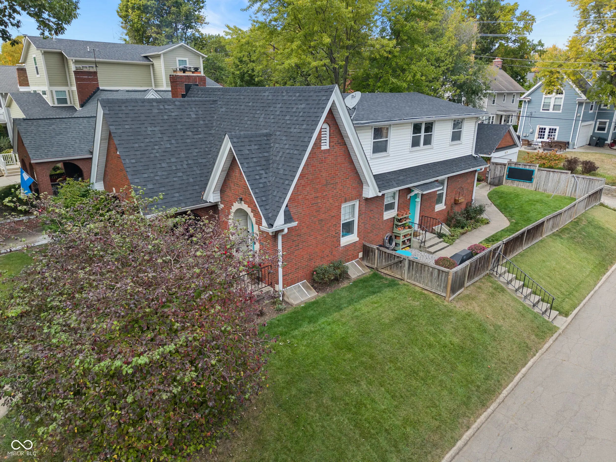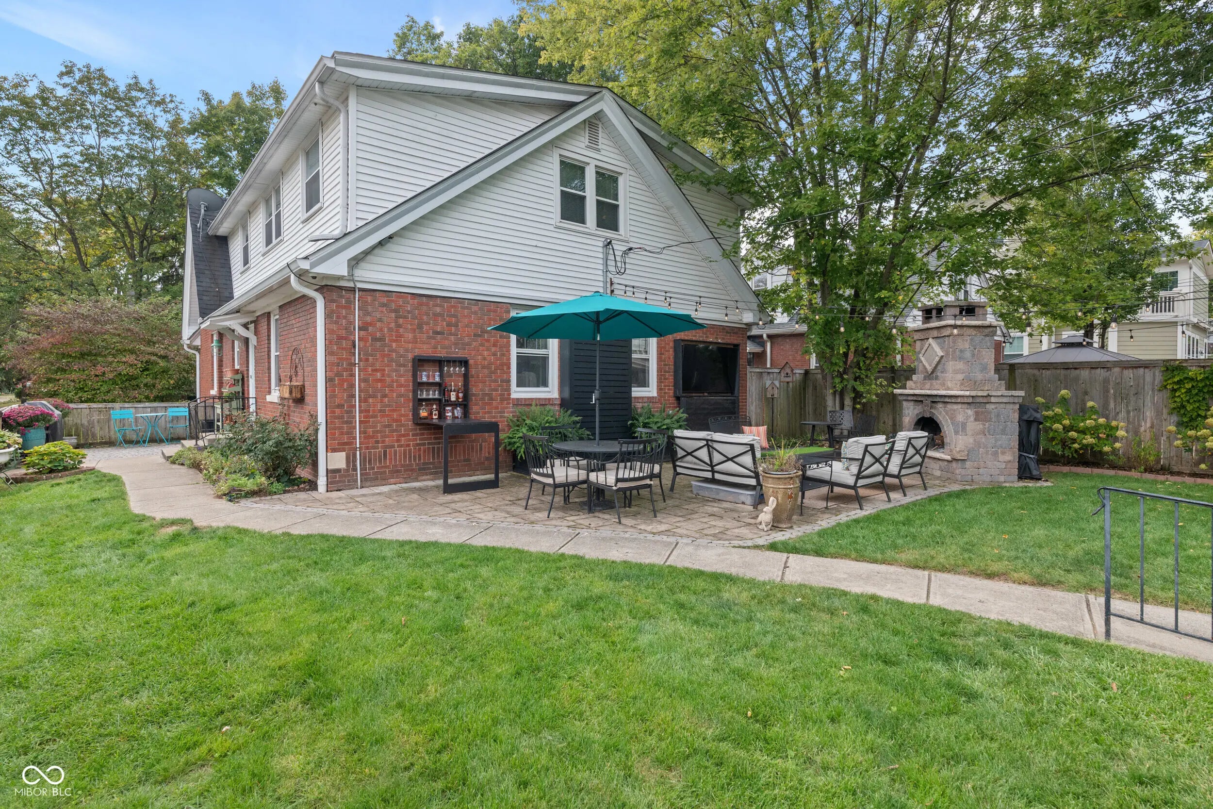 Welcome to this storybook Tudor in the highly sought-after Butler-Tarkington neighborhood! Full of character and thoughtfully updated throughout, this home seamlessly combines classic character with modern updates. The spacious living room features a wood-burning fireplace and flows into a formal dining room that's currently being used as a music room. An updated kitchen complete with all appliances, ample counter space, and a tiled backsplash. Just off the kitchen is a cozy wine-tasting room offers the perfect space to unwind or entertain. The main-level primary suite includes a pocket office, large closet, and a spacious bathroom with tiled shower. Upstairs, you'll find three large bedrooms (one currently serving as a home office with a Murphy bed) and a fully remodeled bath, each space offering ample storage and flexibility. The finished basement extends your living area with a large family room featuring a gas fireplace, a bonus room with kitchenette, and a dedicated play area for kids. Out back, enjoy two paver patios-one with a pull-down bar top, enclosed TV compartment, and massive outdoor fireplace, which is ideal for game days or relaxing evenings. The fenced yard and charming front porch complete this exceptional Butler-Tarkington gem. Conveniently located near Clewes Hall, Hinkle Fieldhouse, Holcomb Gardens, Broad Ripple eateries, the Monon Trail and easy access to downtown Indianapolis and Carmel.