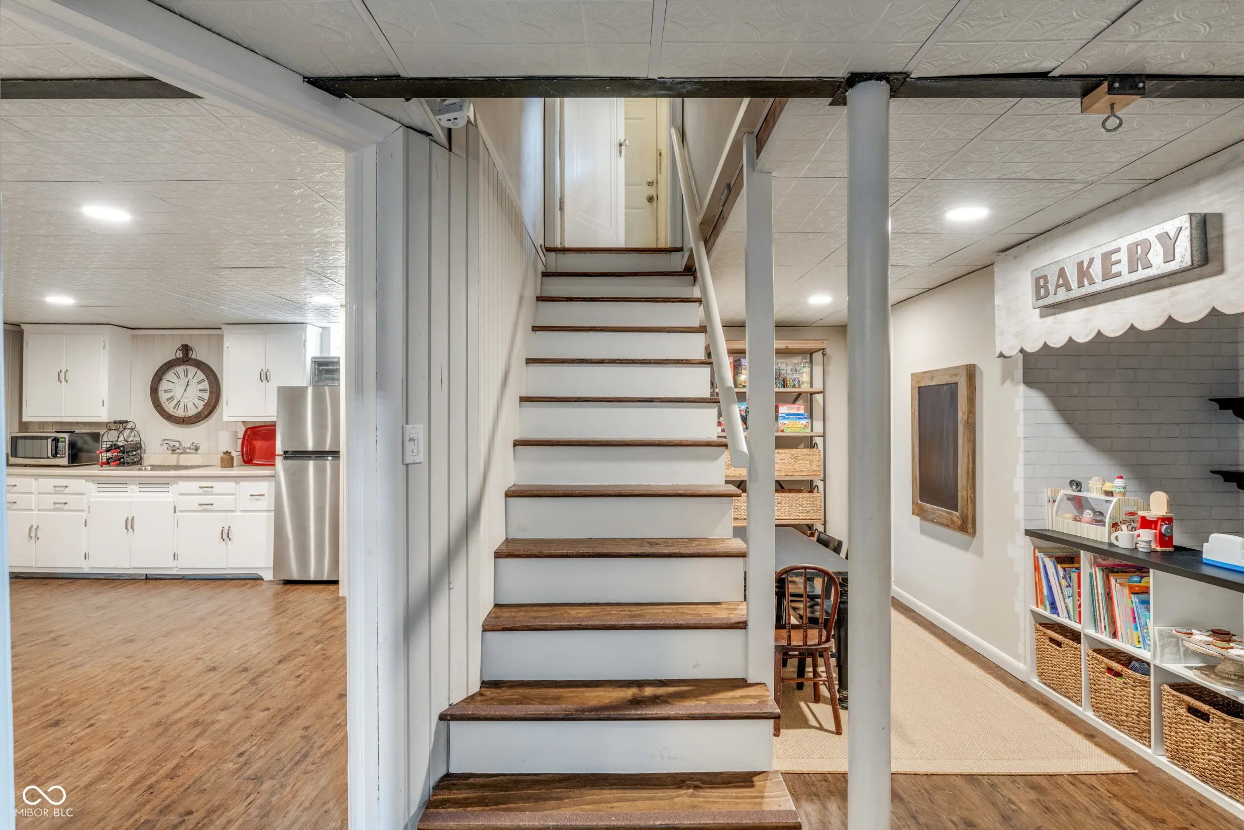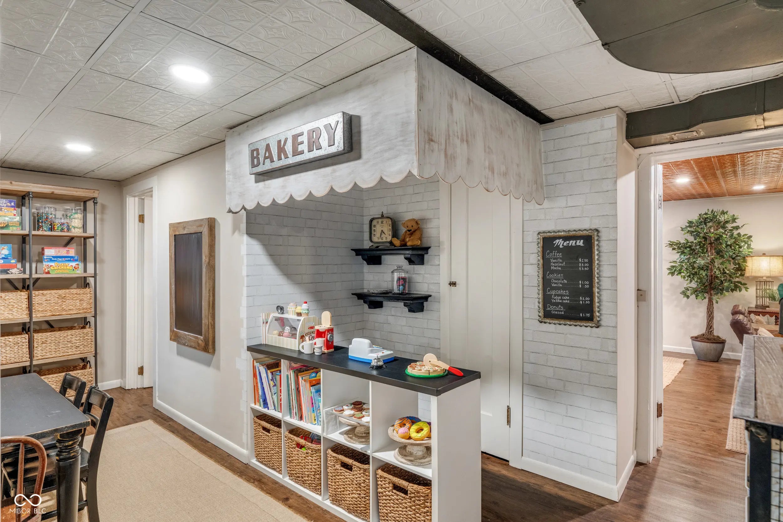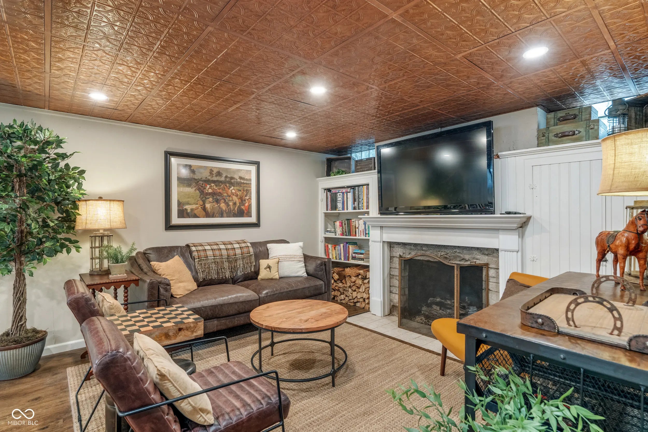 Welcome to this storybook Tudor in the highly sought-after Butler-Tarkington neighborhood! Full of character and thoughtfully updated throughout, this home seamlessly combines classic character with modern updates. The spacious living room features a wood-burning fireplace and flows into a formal dining room that's currently being used as a music room. An updated kitchen complete with all appliances, ample counter space, and a tiled backsplash. Just off the kitchen is a cozy wine-tasting room offers the perfect space to unwind or entertain. The main-level primary suite includes a pocket office, large closet, and a spacious bathroom with tiled shower. Upstairs, you'll find three large bedrooms (one currently serving as a home office with a Murphy bed) and a fully remodeled bath, each space offering ample storage and flexibility. The finished basement extends your living area with a large family room featuring a gas fireplace, a bonus room with kitchenette, and a dedicated play area for kids. Out back, enjoy two paver patios-one with a pull-down bar top, enclosed TV compartment, and massive outdoor fireplace, which is ideal for game days or relaxing evenings. The fenced yard and charming front porch complete this exceptional Butler-Tarkington gem. Conveniently located near Clewes Hall, Hinkle Fieldhouse, Holcomb Gardens, Broad Ripple eateries, the Monon Trail and easy access to downtown Indianapolis and Carmel.