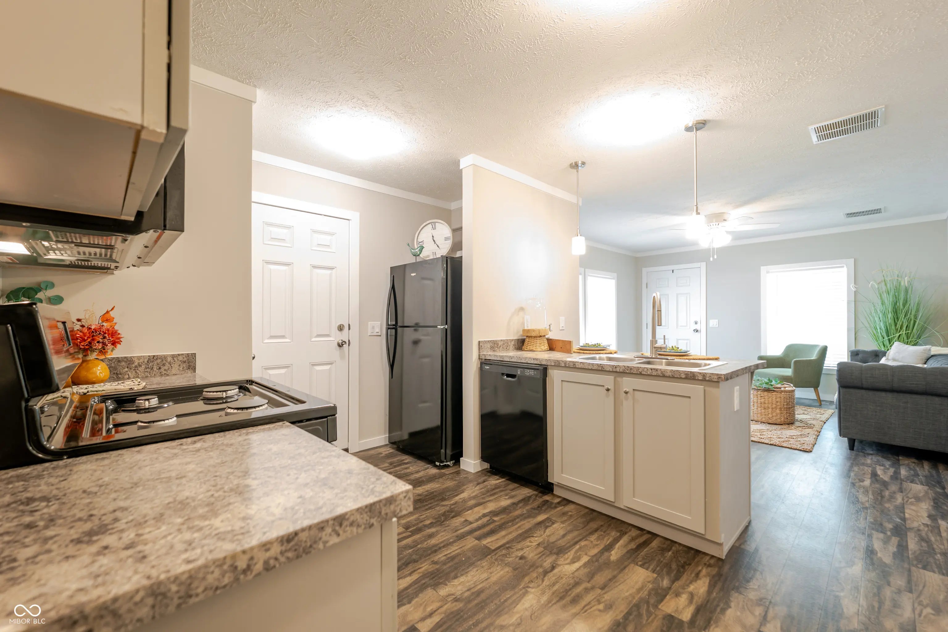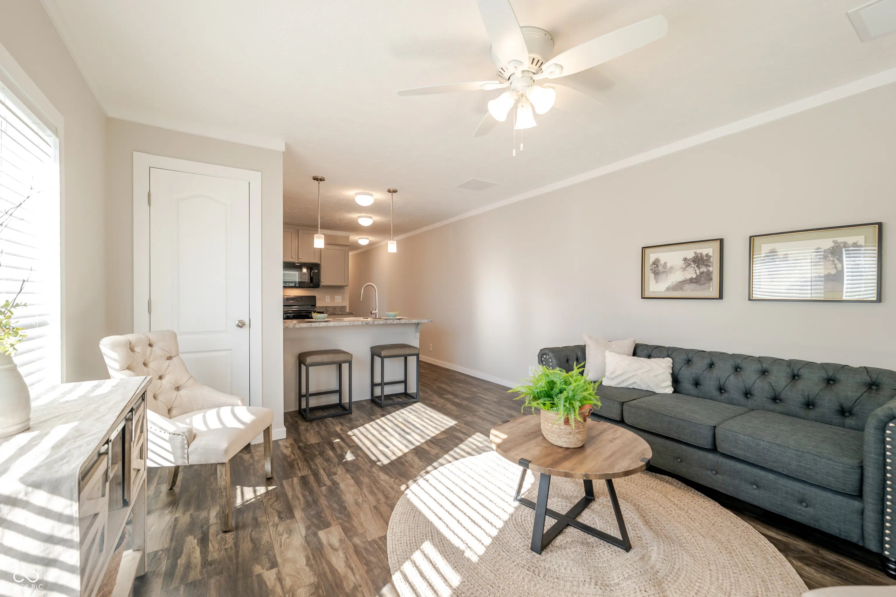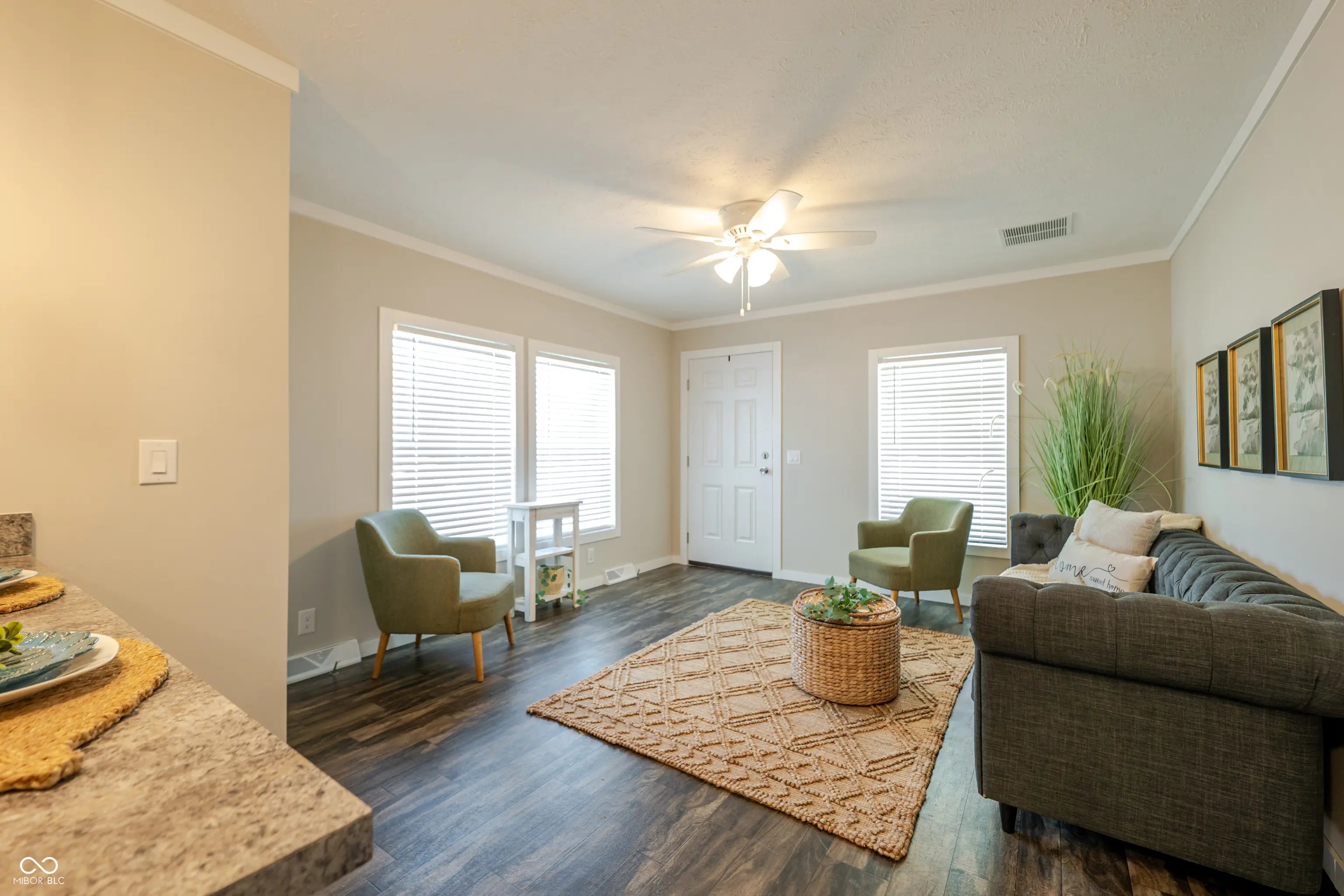 Located at 340 S Walnut ST, ATLANTA, IN, this duplex presents an attractive opportunity for comfortable living. Constructed in 2025, this property is in better than new condition, ready to welcome its new owner/tenant. The living room is enhanced with crown molding, creating a sophisticated space that invites relaxation and conversation. Imagine the ambiance as natural light fills the room, highlighting the architectural details and making every gathering feel special. The kitchen is truly a focal point, featuring clean lines with the countertops and shaker cabinets that offer a blend of style and functionality. The kitchen peninsula provides additional workspace and casual seating, perfect for meal preparation or enjoying a quick bite. The bedroom provides a serene retreat, complete with crown molding that adds architectural interest and a touch of sophistication. This personal space is designed for rest and rejuvenation. This property features a porch perfect for enjoying the outdoors, as well as an open floor plan that creates a sense of spaciousness and facilitates easy movement throughout the home. With a lot area having sod in the front, this one-story residence offers a blend of modern design and practical living. Park is across the street and walking distance to main street.