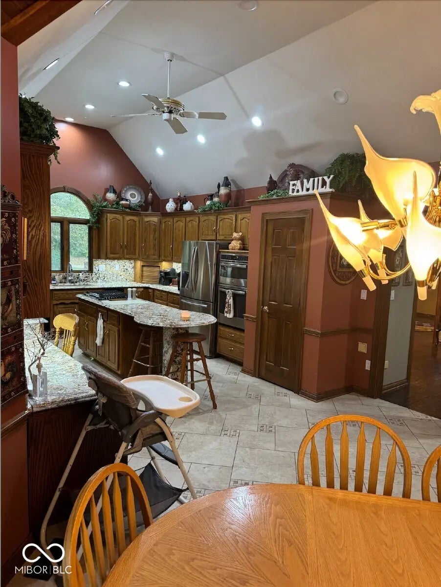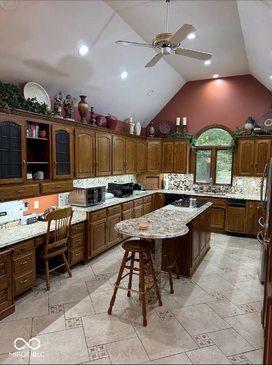Nestled at 1406 S Harmony TRL, GREENFIELD, IN, this single-family residence in Hancock County stands as a testament to luxurious living, presented in great condition and awaiting its fortunate inhabitants. The living room, a grand space designed for both relaxation and entertainment, features a fireplace that serves as a warm focal point, while the beamed, high, and vaulted wood ceiling, accented by crown molding, creates an atmosphere of architectural magnificence. The kitchen is a culinary dream, boasting a backsplash, a large kitchen island, a kitchen bar, and stone countertops, all under a beautiful wood ceiling, with a stovetop ready for creating memorable meals. The bedrooms offer a comfortable retreat, enhanced with crown molding for an added touch of elegance. The bathrooms provide a spa-like experience, each one thoughtfully designed to offer relaxation, with one featuring a jetted tub. This home offers four full bathrooms and one half bathroom, alongside four bedrooms, spread across three stories and 3052 square feet of living area, constructed in 1989 with top-tier materials. This property offers amazing design that is complemented by its woods view. This amazing design represents an unparalleled opportunity to embrace a lifestyle of comfort and sophistication.