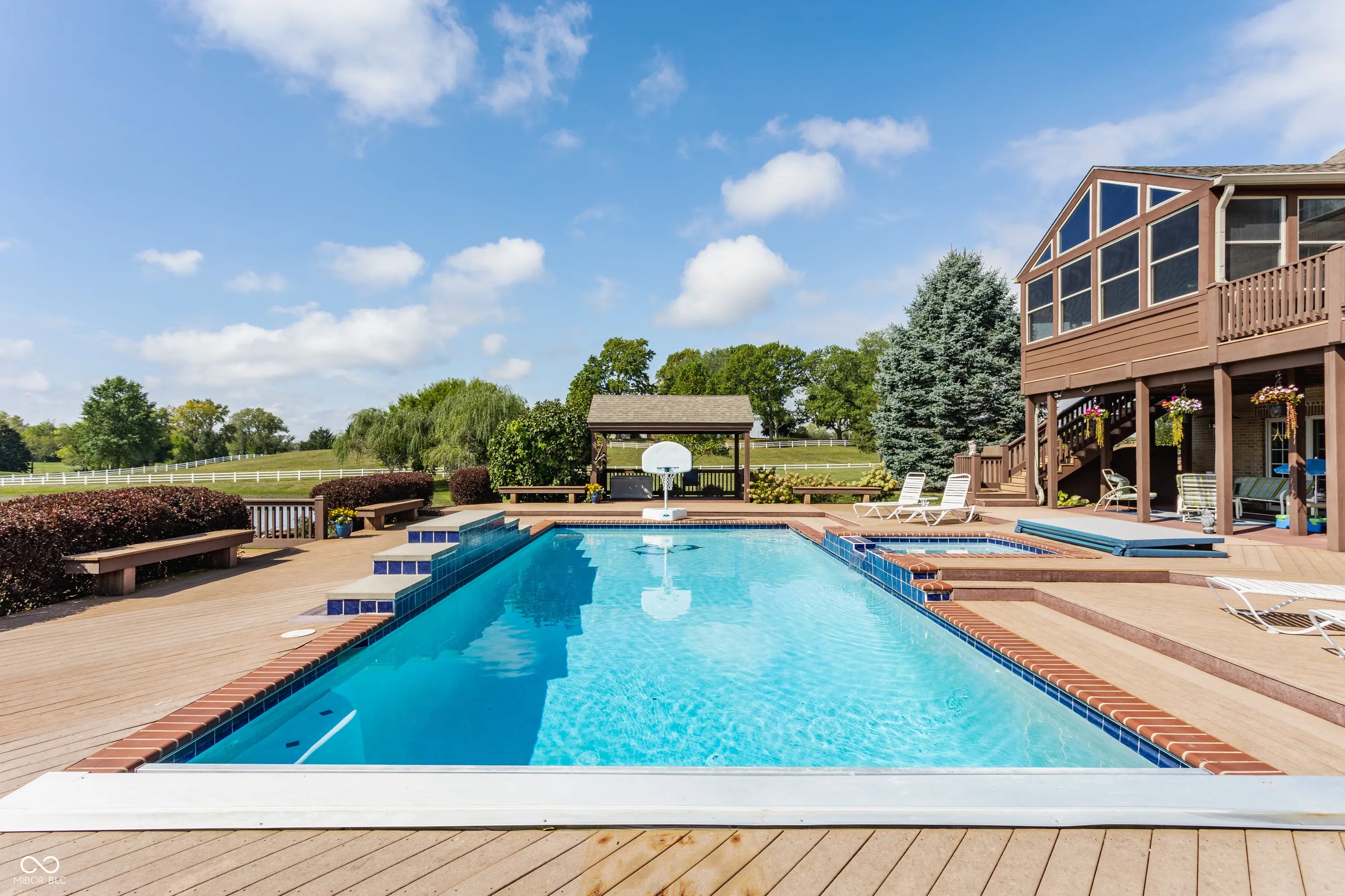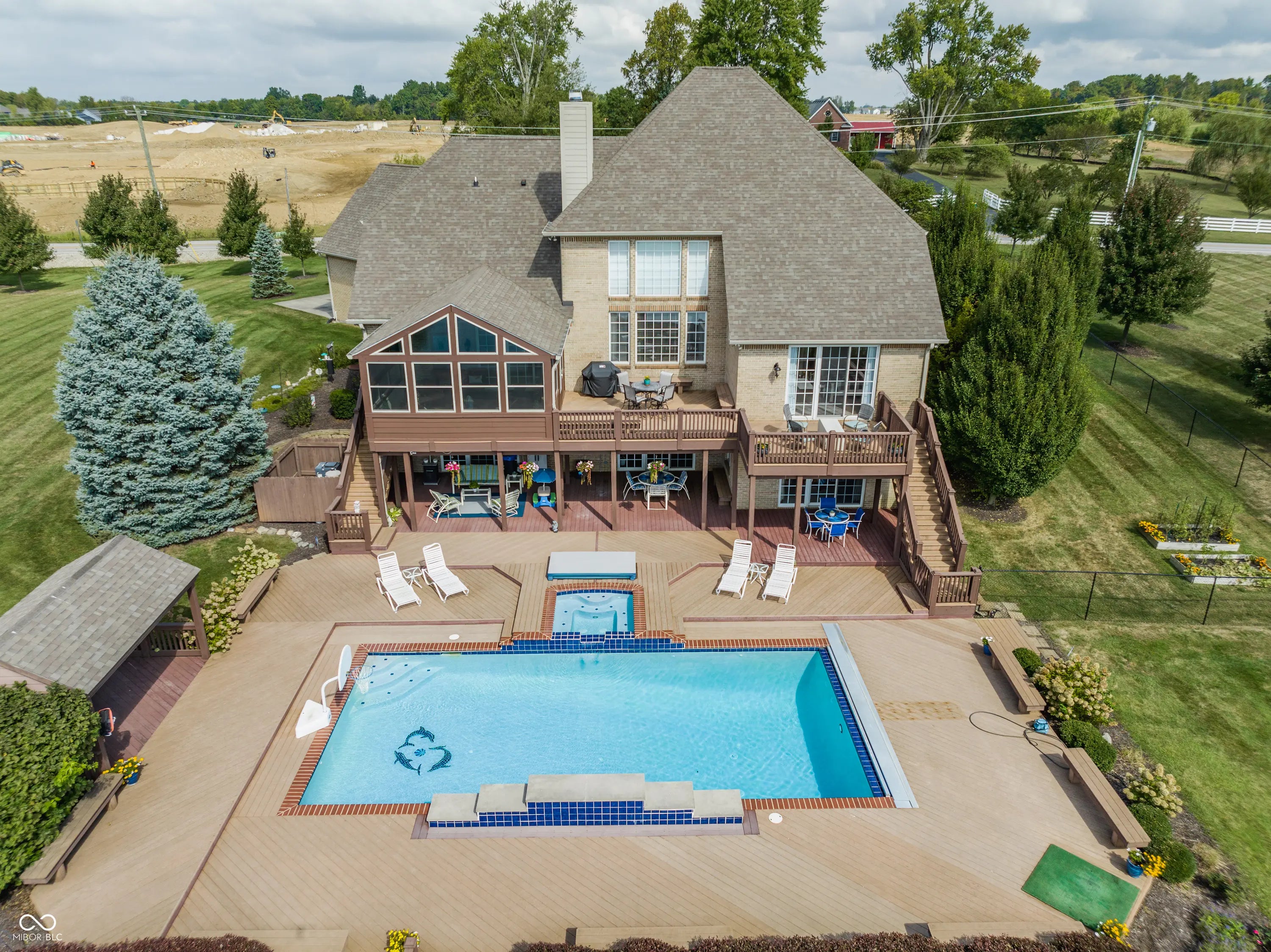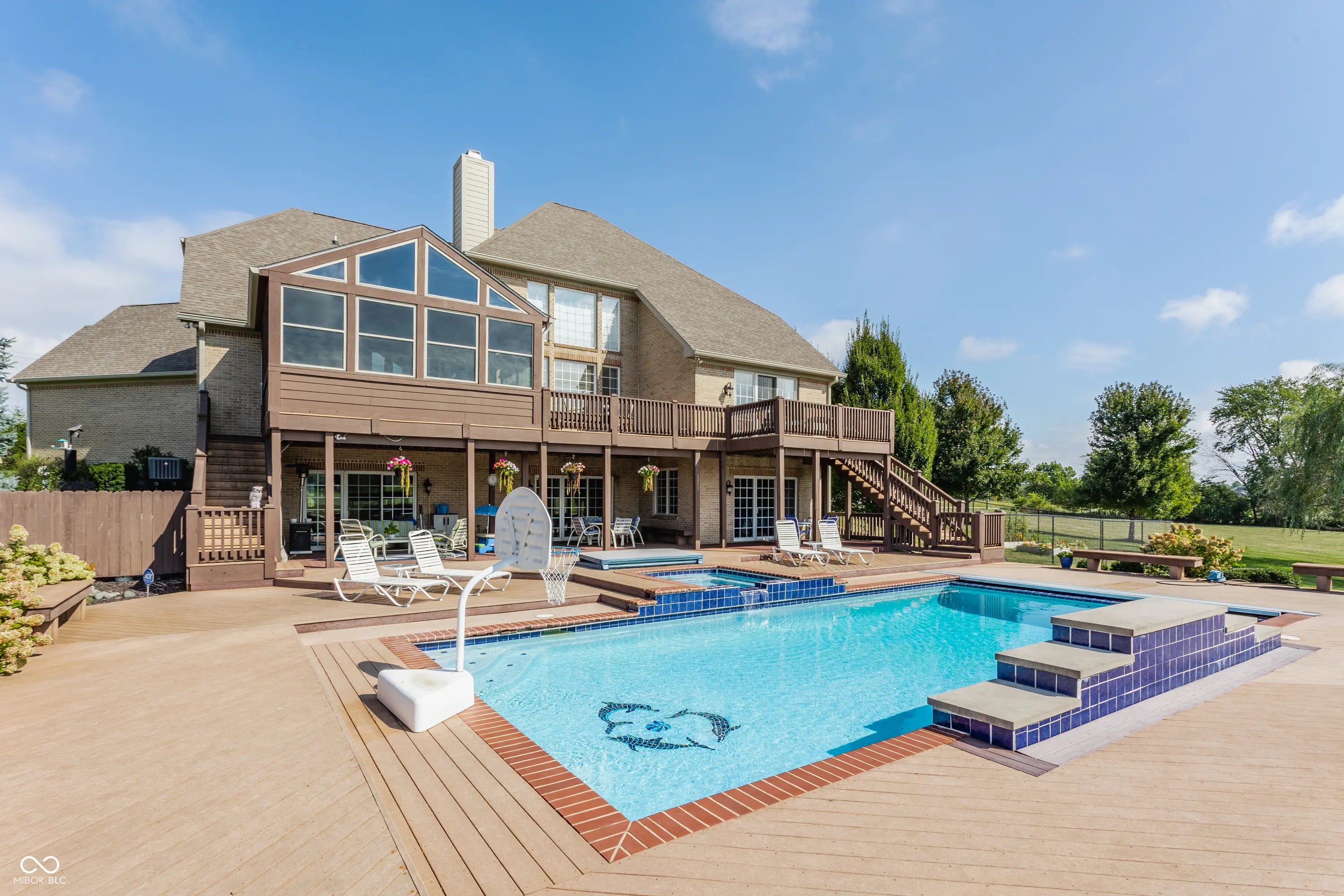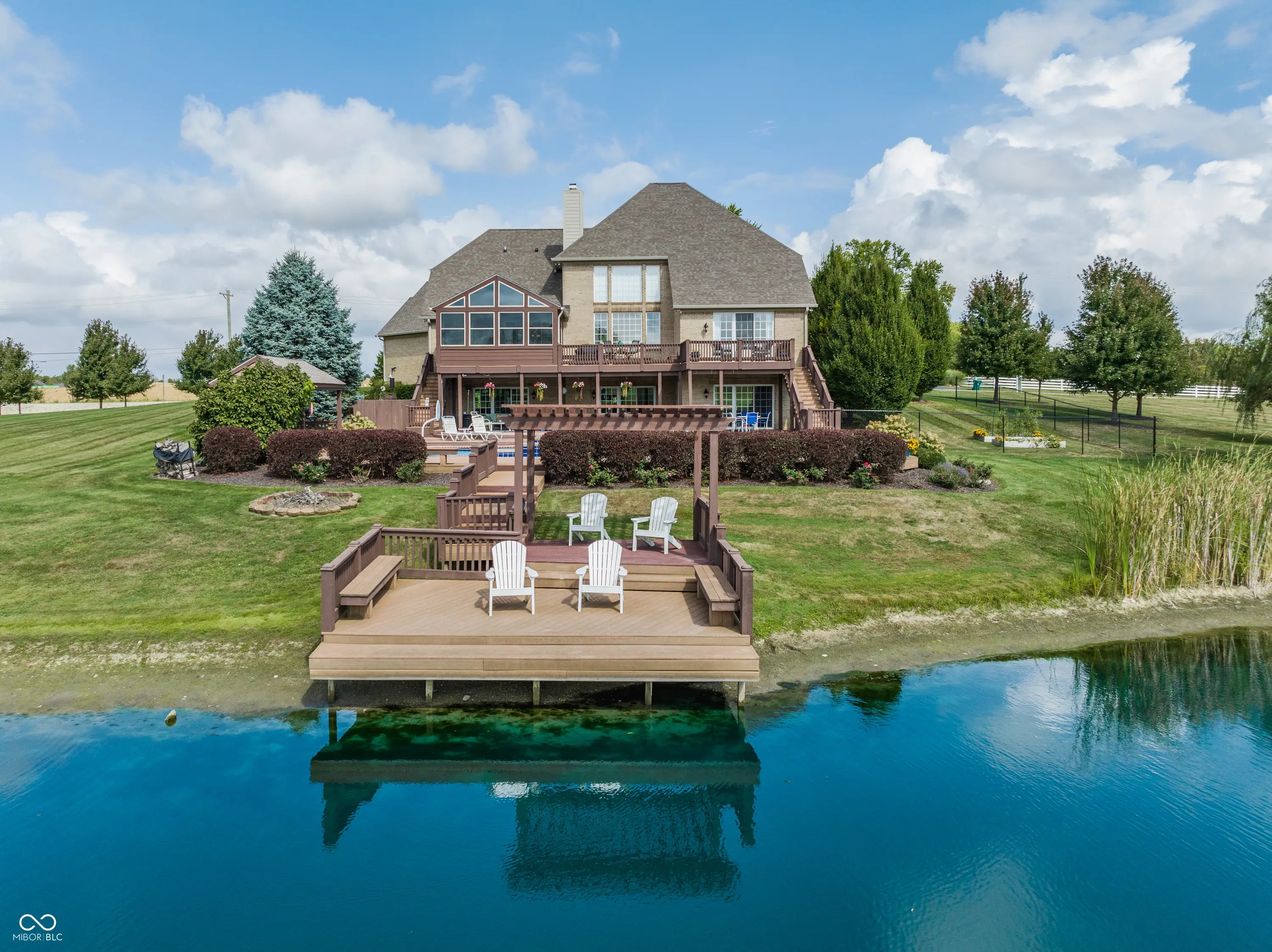 Nestled at 1939 W 161st ST, WESTFIELD, IN, this elegant single-family residence in Hamilton County offers an exceptional blend of luxury, comfort, and style. Step inside to a grand living room featuring soaring ceilings, intricate crown molding, and a beautiful fireplace that anchors the space with warmth and charm. Built-in-shelving provides both functionality and a perfect showcase for treasured decor. The kitchen is designed as a culinary haven, featuring granite countertops that offers ample work space and shaker cabinets that provide generous storage. The built-in oven and microwave, and stovetop meet the demands of any chef, while the kitchen island and kitchen bar offer additional seating and serving options. The main floor primary suite provides a peaceful retreat, featuring a tray ceiling and a spa-inspired bathroom with a tiled walk-in shower, soaking tub, and dual vanity. Upstairs, you'll find three spacious bedrooms, each with ample closet space and access to beautifully finished bathrooms-perfect for family or guests. The fifth bedroom is located in the finished walk-out basement, which also features a large recreation room, cozy family room, and a stylish full bar-creating an ideal space for guests, hobbies, or a private home office. Outside, the expansive property truly shines with its resort-style amenities. Enjoy relaxing days by the private pool or in the in-ground hot tub, unwind on the patio or deck, or entertain under the charming pergola. The fenced backyard ensures privacy, while water and golf course views create a serene backdrop for outdoor dining and leisure, or a perfect place for a special event. This home is a rare opportunity to enjoy luxury living in a peaceful, scenic setting, with every detail designed for comfort, entertaining, and timeless appeal.