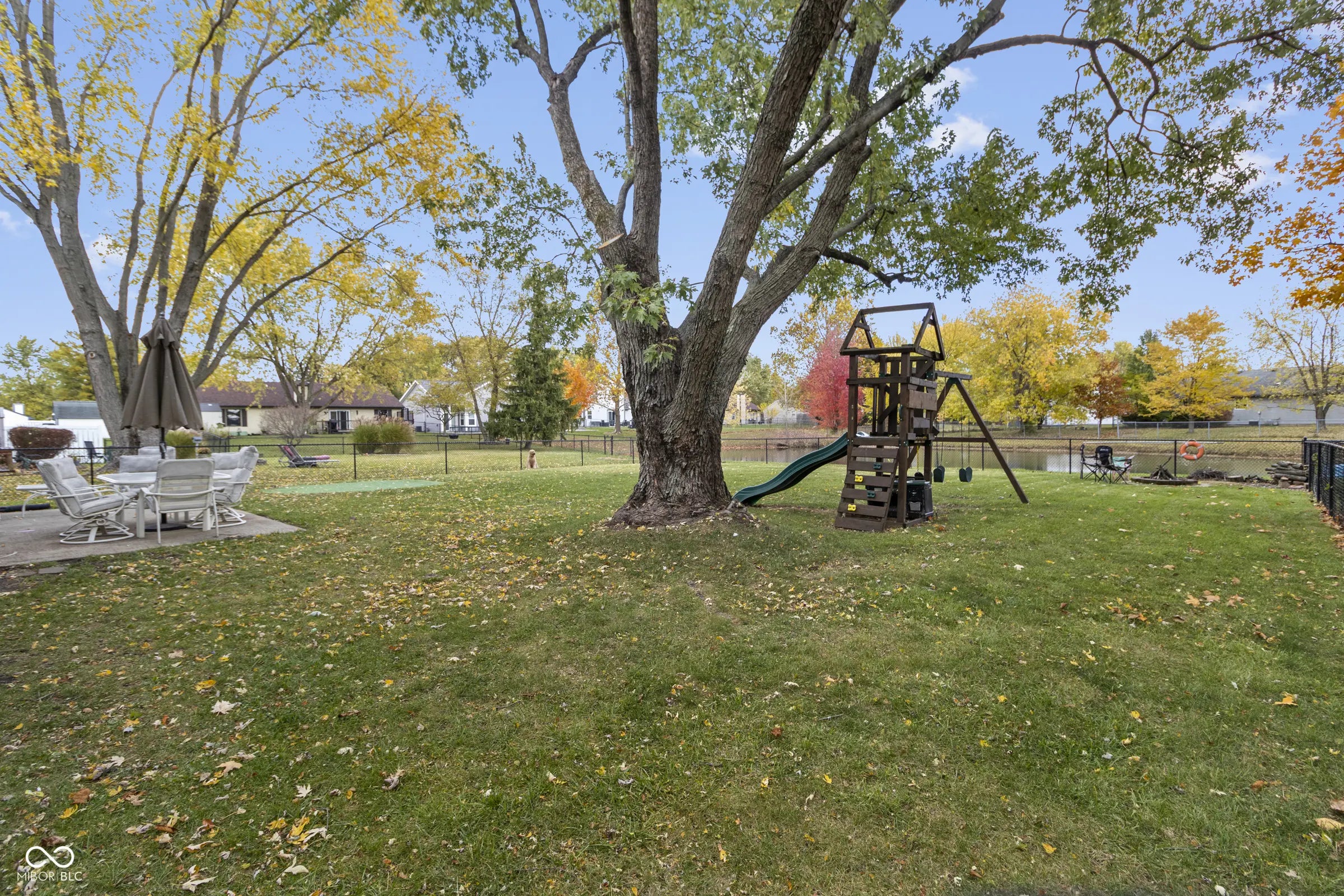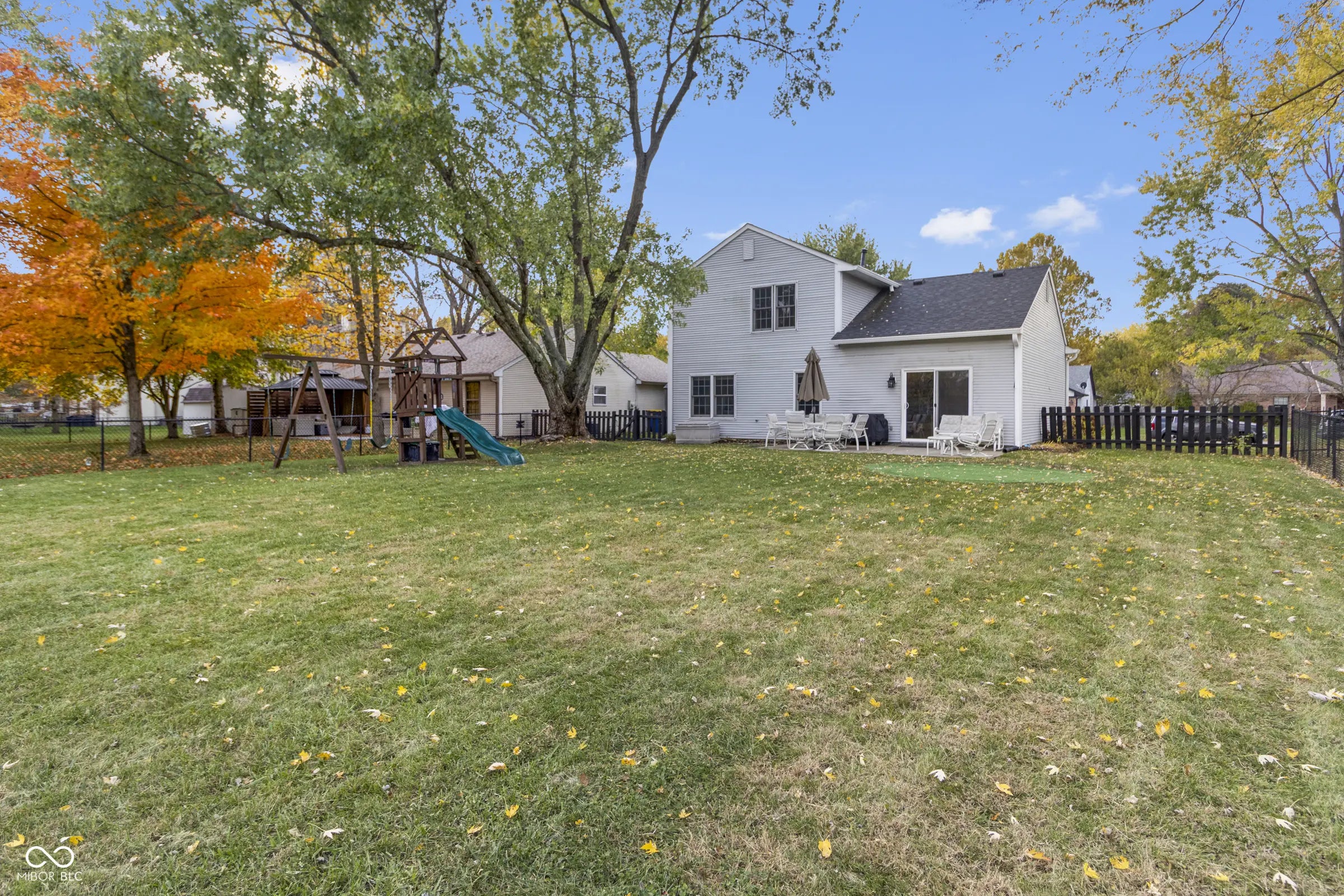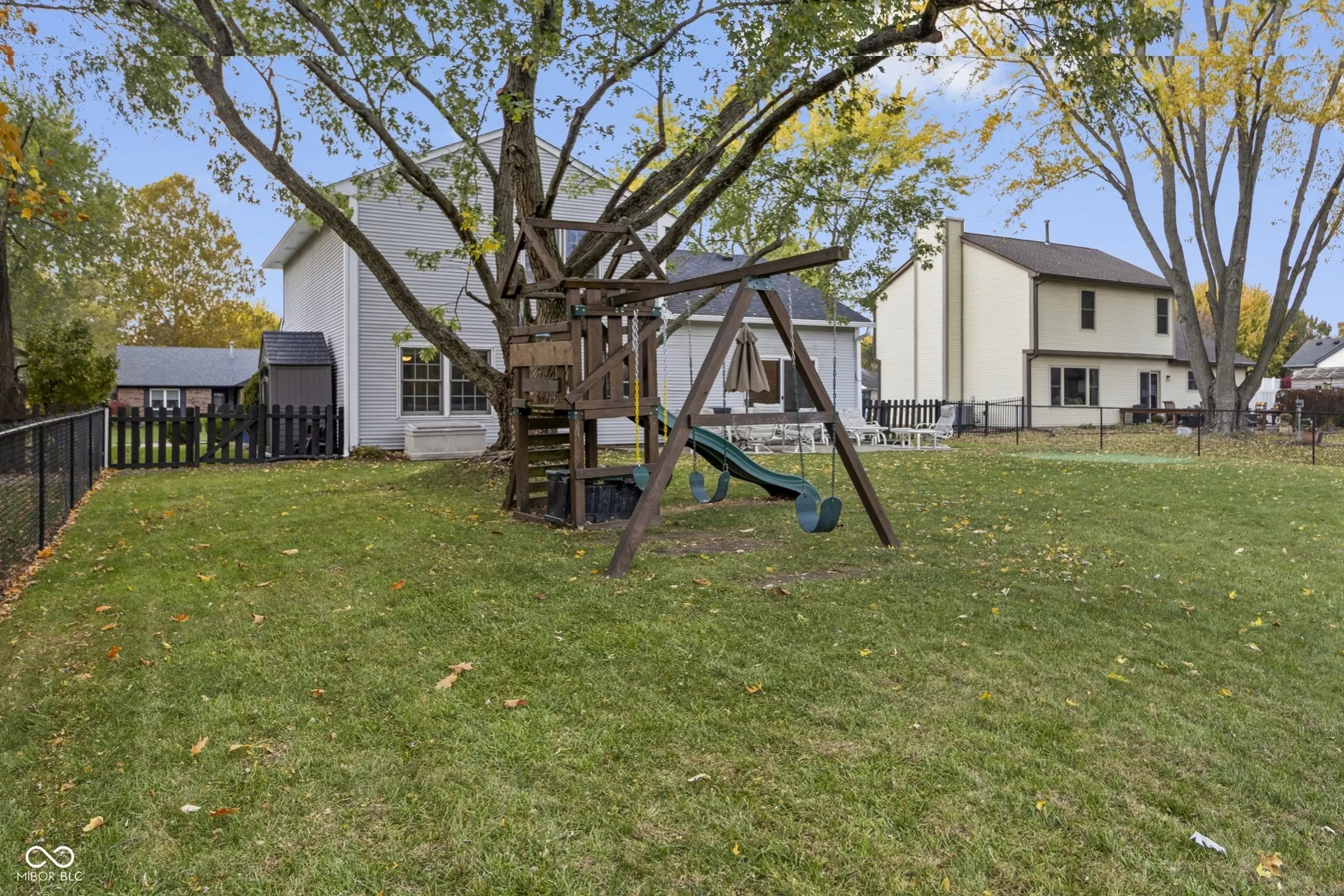 - Features: Fire Pit, Playset, Storage Shed
