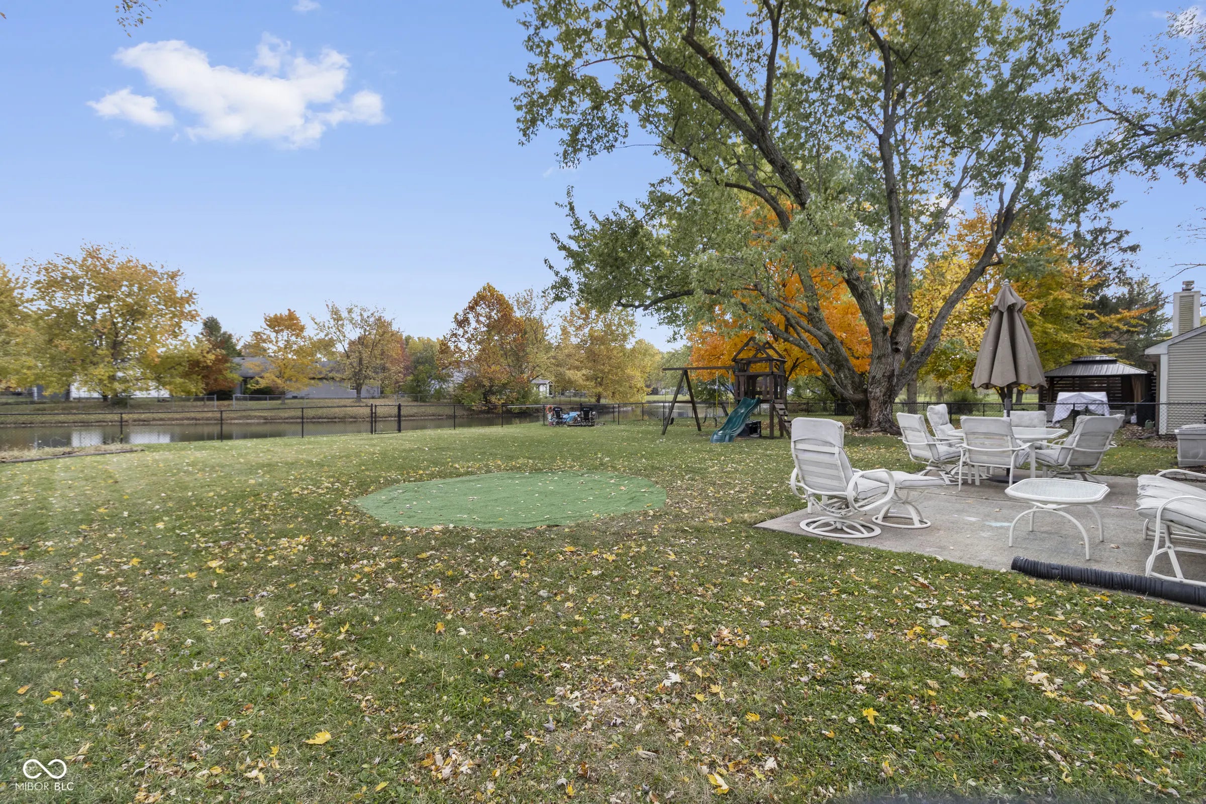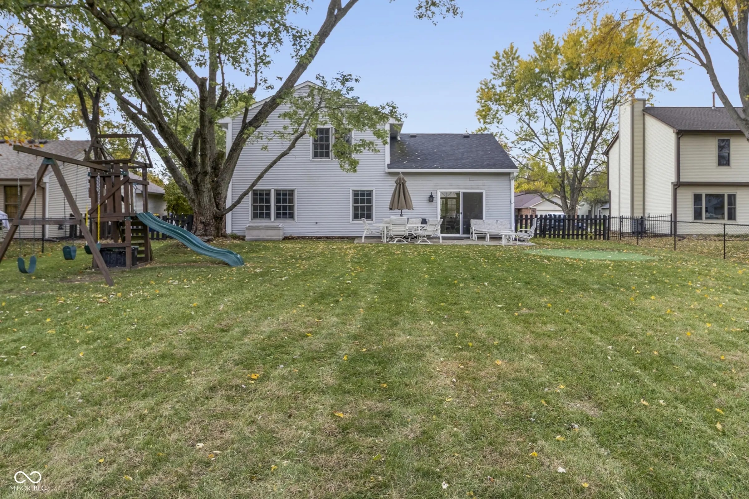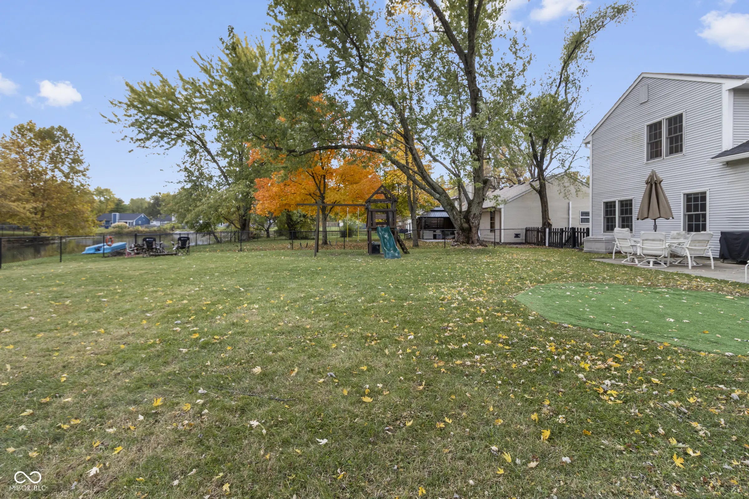 - Features: Fire Pit, Playset, Storage Shed