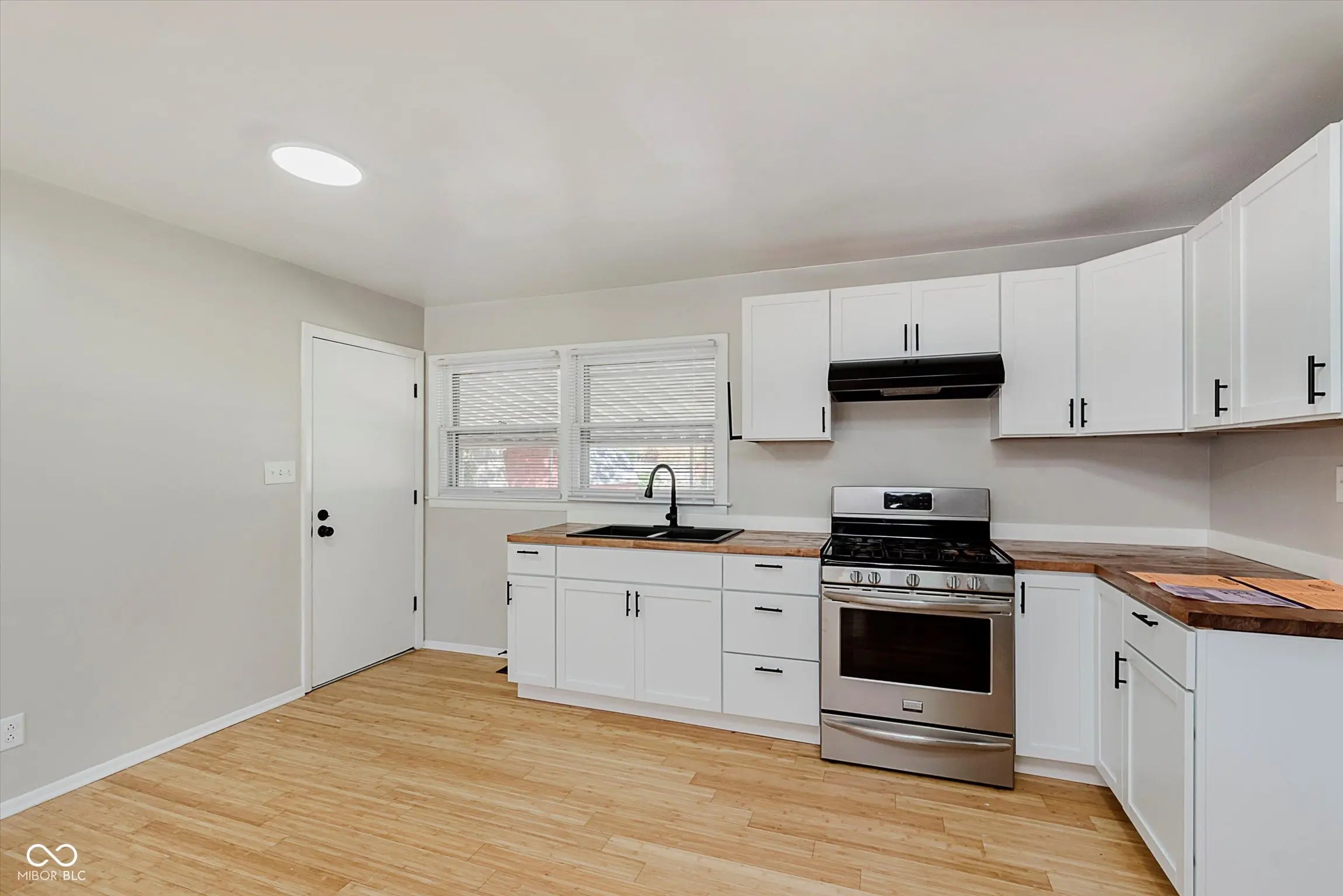 Charming Brick Ranch in Perry Township! Welcome home to this beautifully maintained 3-bedroom, 2-bath brick ranch offering timeless character and modern updates. Situated on a spacious lot with mature trees, this home combines comfort, convenience, and classic appeal. A covered front porch and wide driveway provide a warm welcome. Inside, you'll find gleaming hardwood floors in the living room, highlighted by a large picture window that fills the space with natural light. The open-concept design flows seamlessly into the kitchen, which features crisp white cabinetry, butcher block countertops, black hardware, and stainless steel appliances. A pantry closet adds extra storage, and convenient access to the attached garage includes a laundry area. Down the hall, the primary suite offers a private bath with a shower and bright white vanity. Two additional well-sized bedrooms share a full bath with a tub/shower combo. Step outside to enjoy the fully fenced backyard with mature trees, a covered patio area-perfect for relaxing or entertaining-and a handy storage shed. Conveniently located just minutes from shopping, dining, and amenities along US 31, this charming home is ready to welcome its next owner.