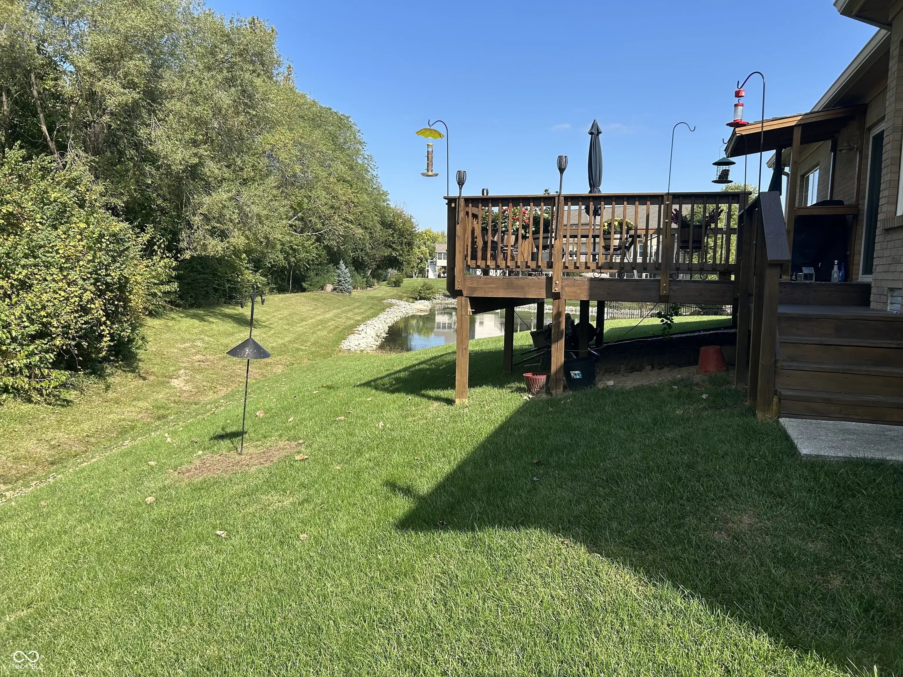 Discover this charming all-brick ranch nestled in a serene Greenwood neighborhood! This beautifully custom-built home features an open concept design with 3 bedrooms, 2 updated bathrooms, and 1,777 sqft of inviting living space. The 9' ceilings and abundant natural light highlight the spacious great room, while the split bedroom layout offers privacy and comfort. The bathrooms have been modernized, including a luxurious master bath with a walk-in shower. The kitchen boasts solid surface countertops, newer stainless-steel appliances, and a convenient coffee bar overlooking the tree-lined backyard. Additional interior updates include new carpet in the dining and great room areas. Enjoy outdoor living on the large, updated back deck, perfect for relaxing or entertaining. This private lot is surrounded by mature trees and views of a pond. The finished garage offers pull-down storage. Additional features include a high-efficiency furnace, a new humidifier and water softener, and a 2-year-old roof for peace of mind. With HOA dues of only $30 annually, this home combines affordability with exceptional amenities. Don't miss your chance to make this exceptional property yours!
