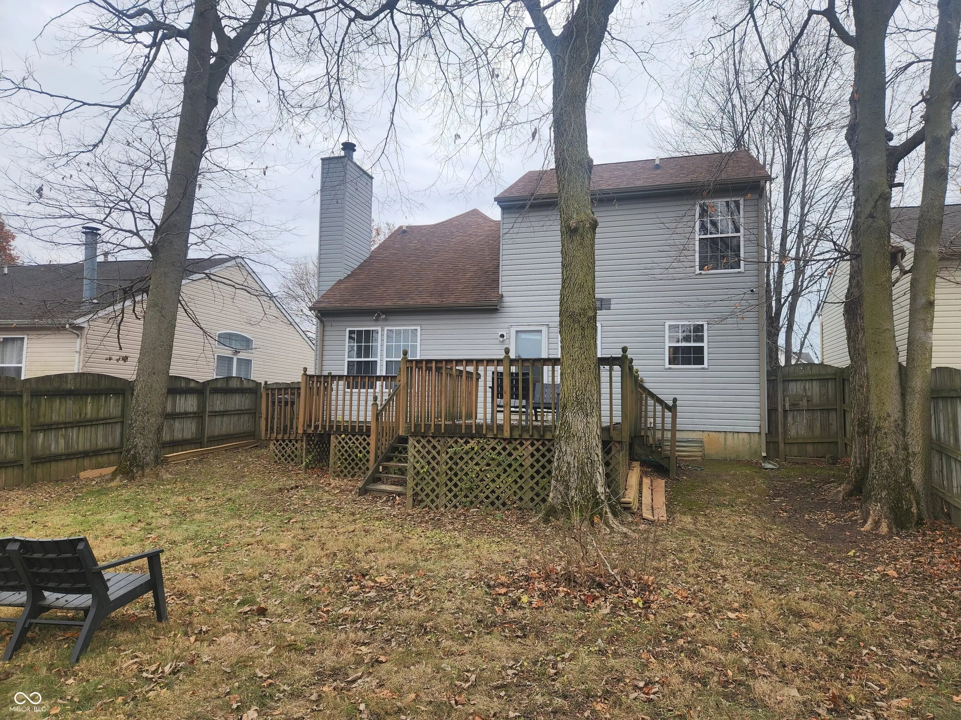 Welcome to this charming 3-bedroom, 2.5-bath two-story home in desirable Aspen Ridge in the Eagle Creek area. The freshly painted interior makes this home truly move-in ready. With an inviting layout and numerous updates throughout, this property offers plenty of space for all your needs. The main level features a bright living room with vaulted ceilings and wood flooring, along with a versatile formal dining room or office space. The family room is open to the kitchen and includes a warm, cozy wood-burning fireplace and a large window overlooking the backyard. The kitchen is equipped with newer appliances and a convenient pantry, helping to make meal prep a breeze. Upstairs, the primary suite boasts wood floors, a walk-in closet, and a private bath complete with a soaking tub, separate shower, and double sinks. Two additional bedrooms provide flexibility, with the third bedroom currently open to the lower level but easily enclosed for privacy if desired. The finished basement offers valuable additional living space, perfect as a flex room for entertainment, hobbies, or a home gym. The home also includes a two-car garage and convenient access to I-465, I-65, shopping, restaurants, and local amenities. Eagle Creek Park is just minutes away. Step outside to a large, fully fenced backyard with a spacious deck ideal for outdoor gatherings. The storage shed, complete with electricity, adds even more functionality and possibilities. Move-in ready and full of character, this Aspen Ridge home is one you won't want to miss!