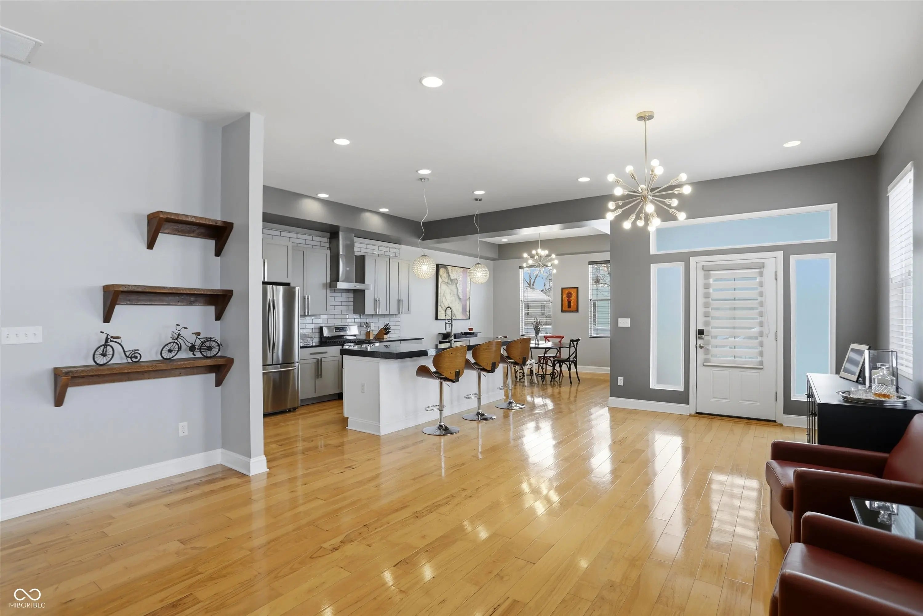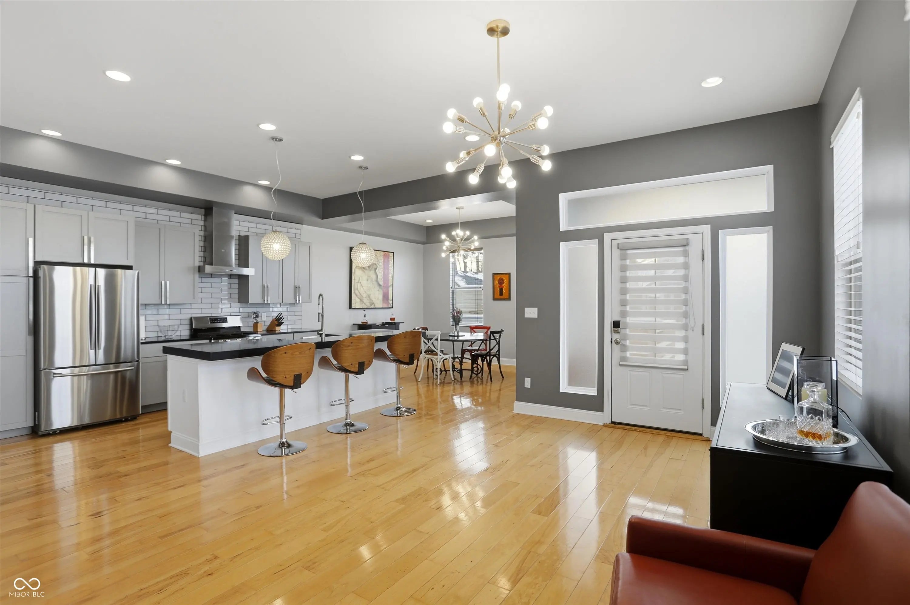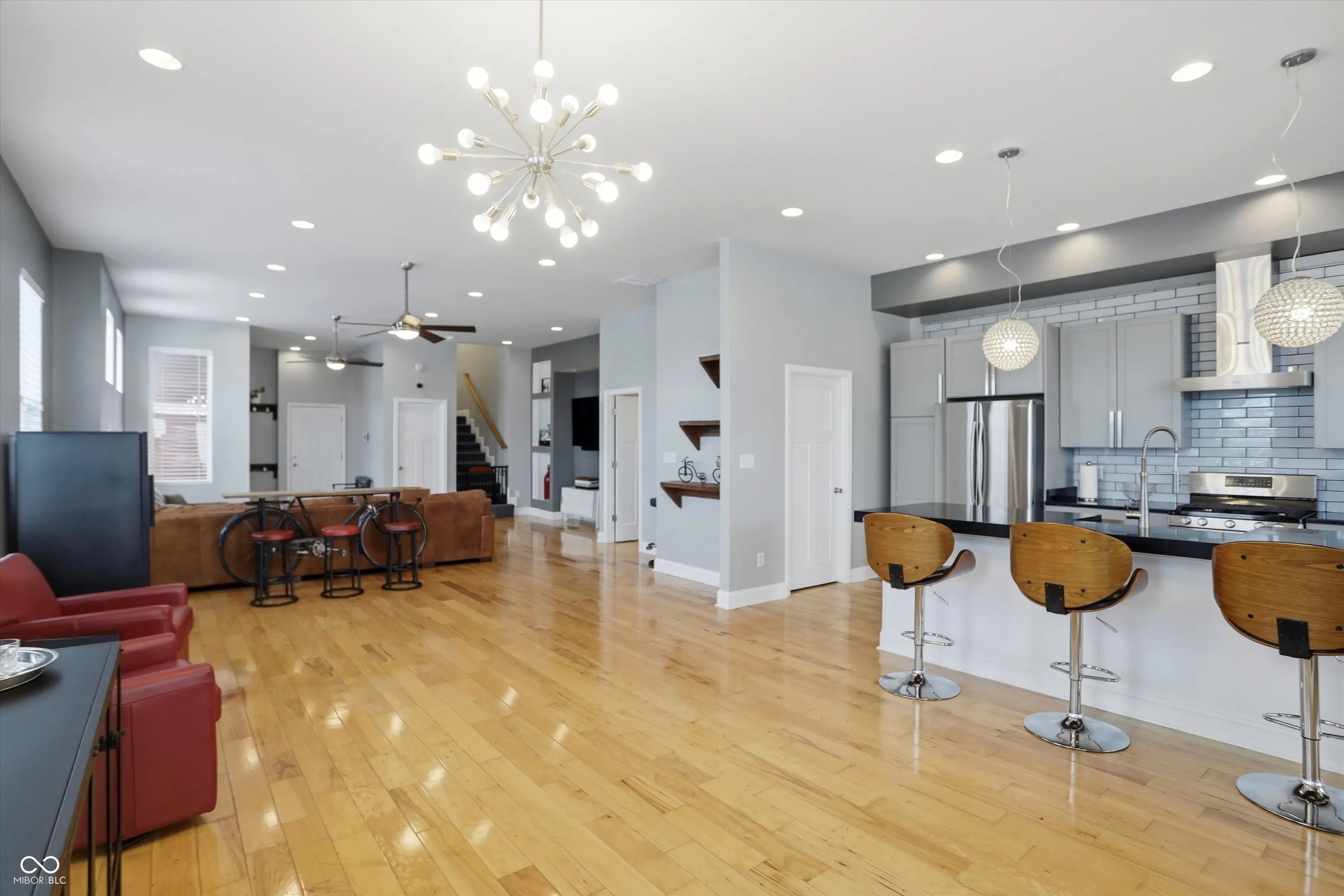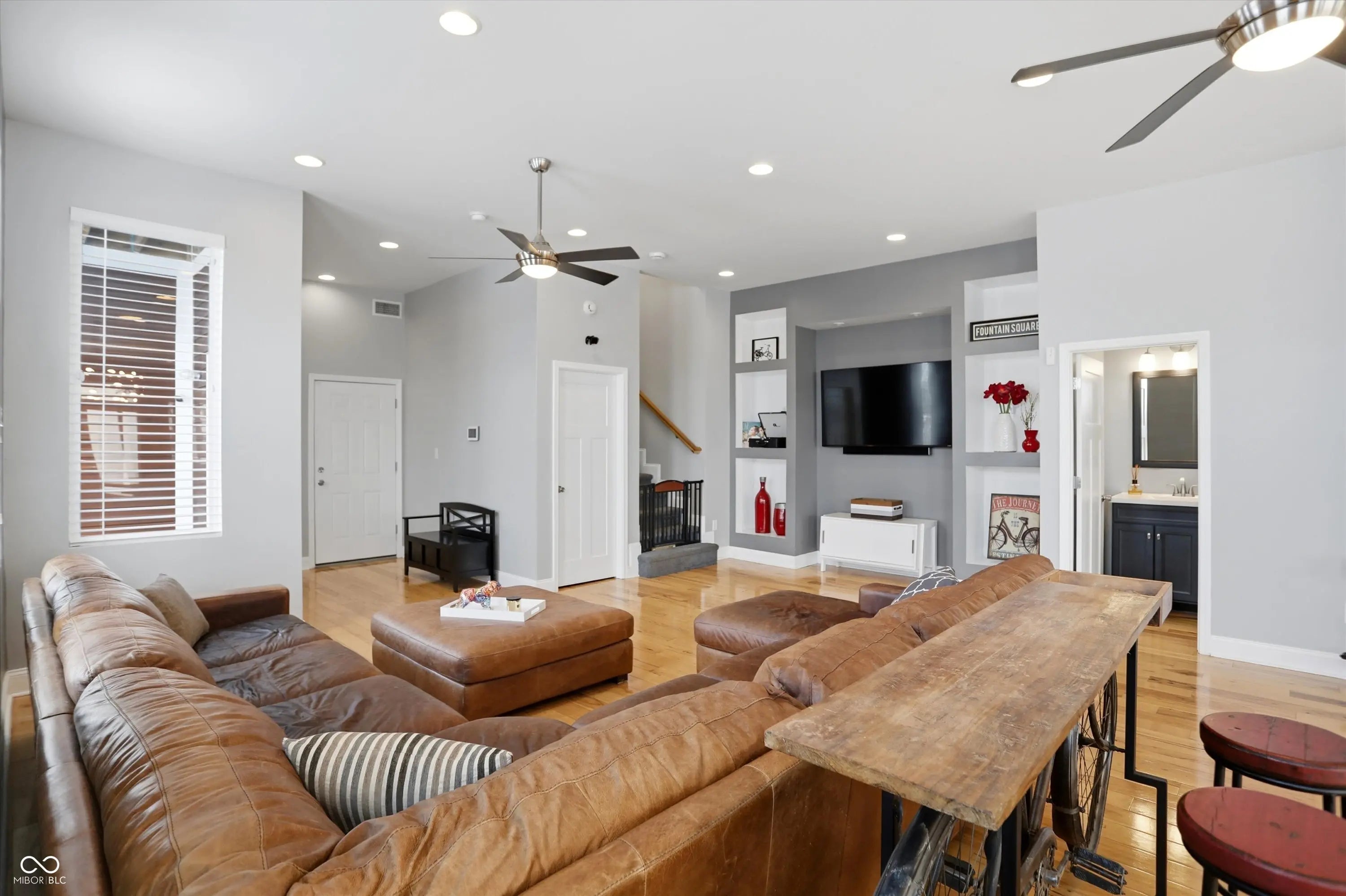 Thoughtfully designed custom built home in the heart of Fountain Square. Built new from the ground up, this modern residence blends downtown energy with warm livable style. The main level is wide open, with an easy flow from the dining area to the chef inspired kitchen with stainless appliances, granite counters and a center island with seating, then into a light filled great room with hardwoods and custom built ins crafted from pieces of the original house. Upstairs you will find two private suites including a stunning primary retreat with spa like bath and an epic custom closet, plus an additional living area with wet bar and two more bedrooms. Multiple balconies and decks capture panoramic skyline views, while a turf courtyard creates a private low maintenance outdoor escape. All of this in one of Indys most vibrant cultural districts, with restaurants, live music, nightlife and the Cultural Trail just outside your door.