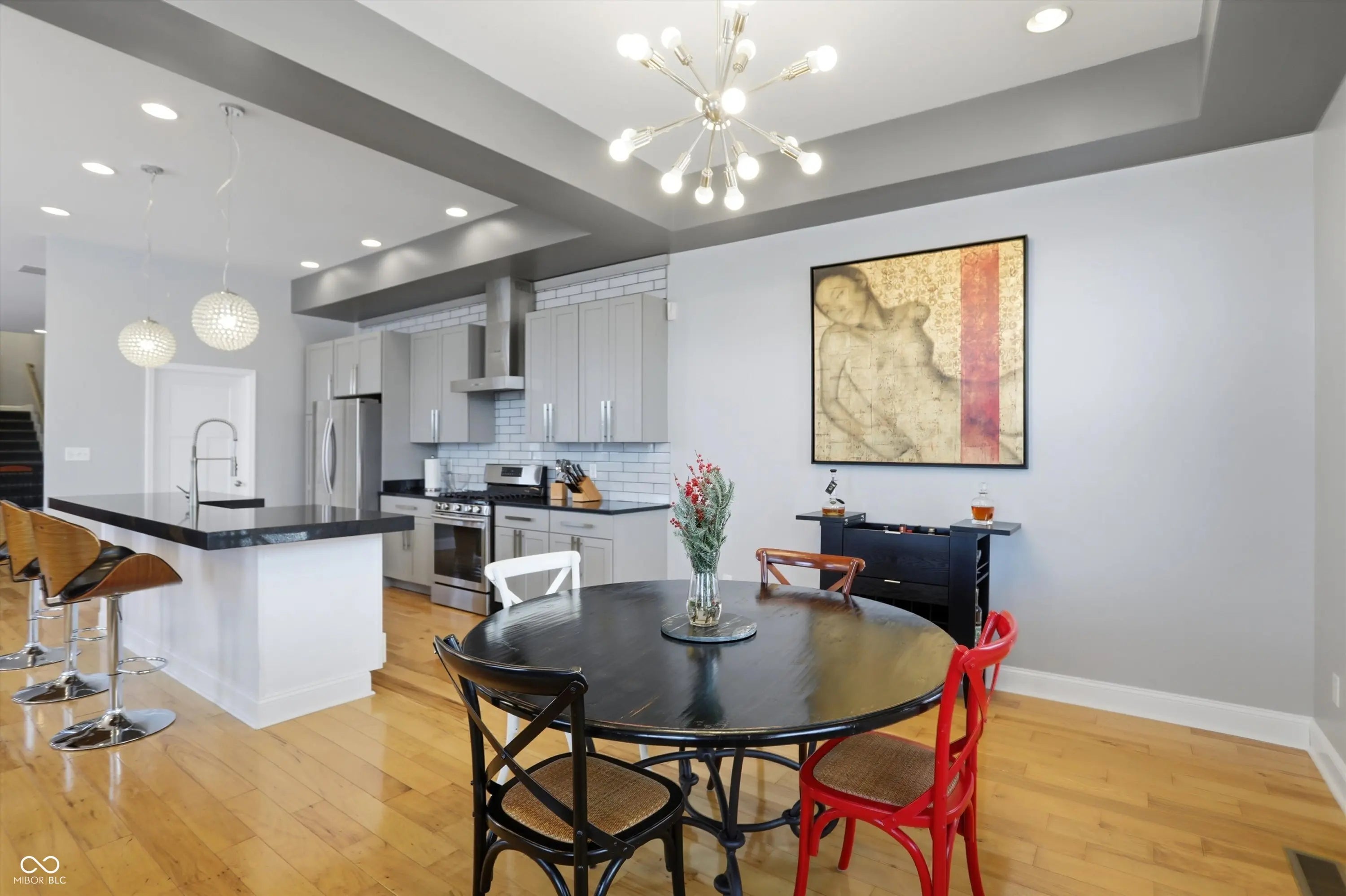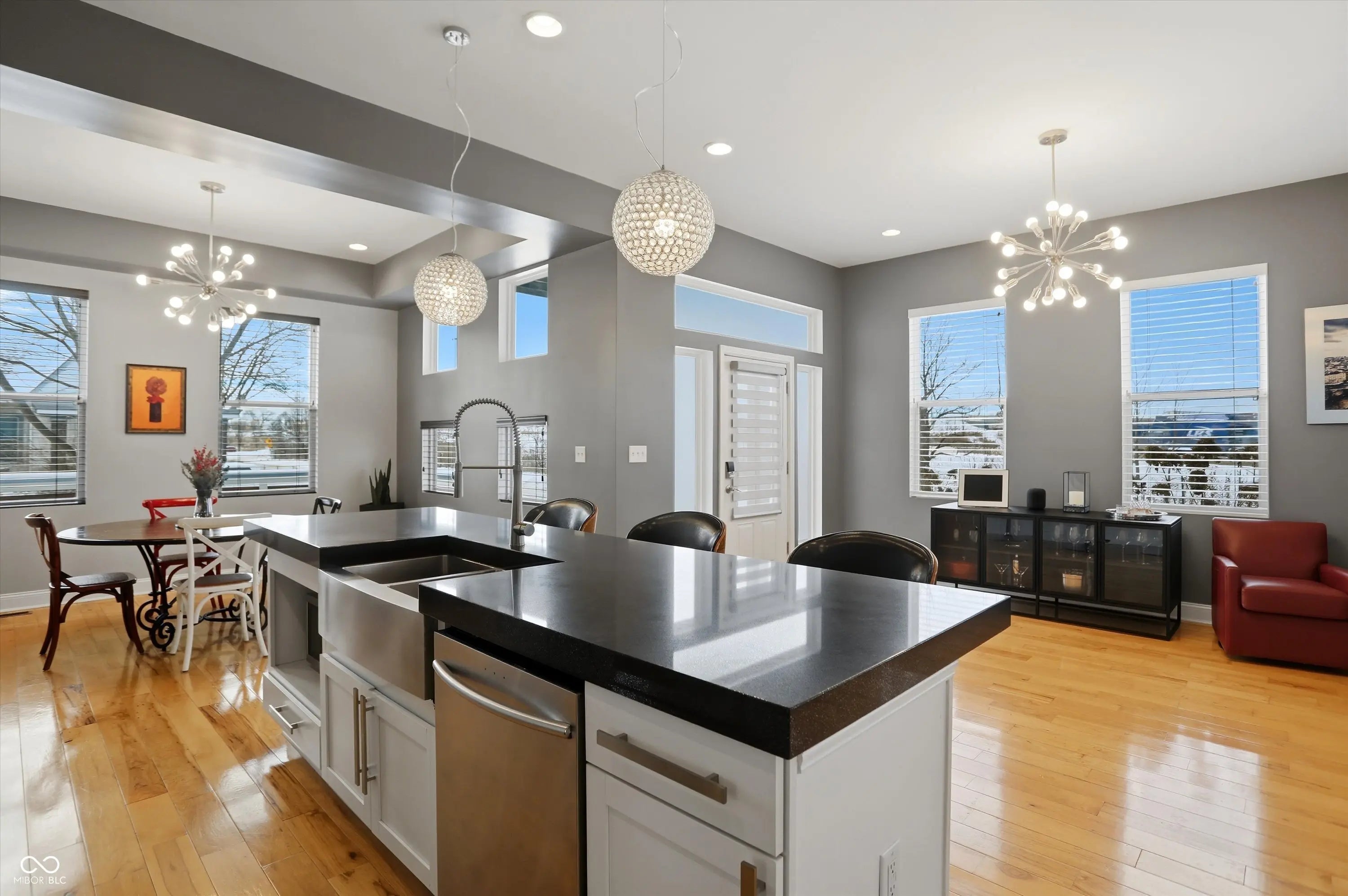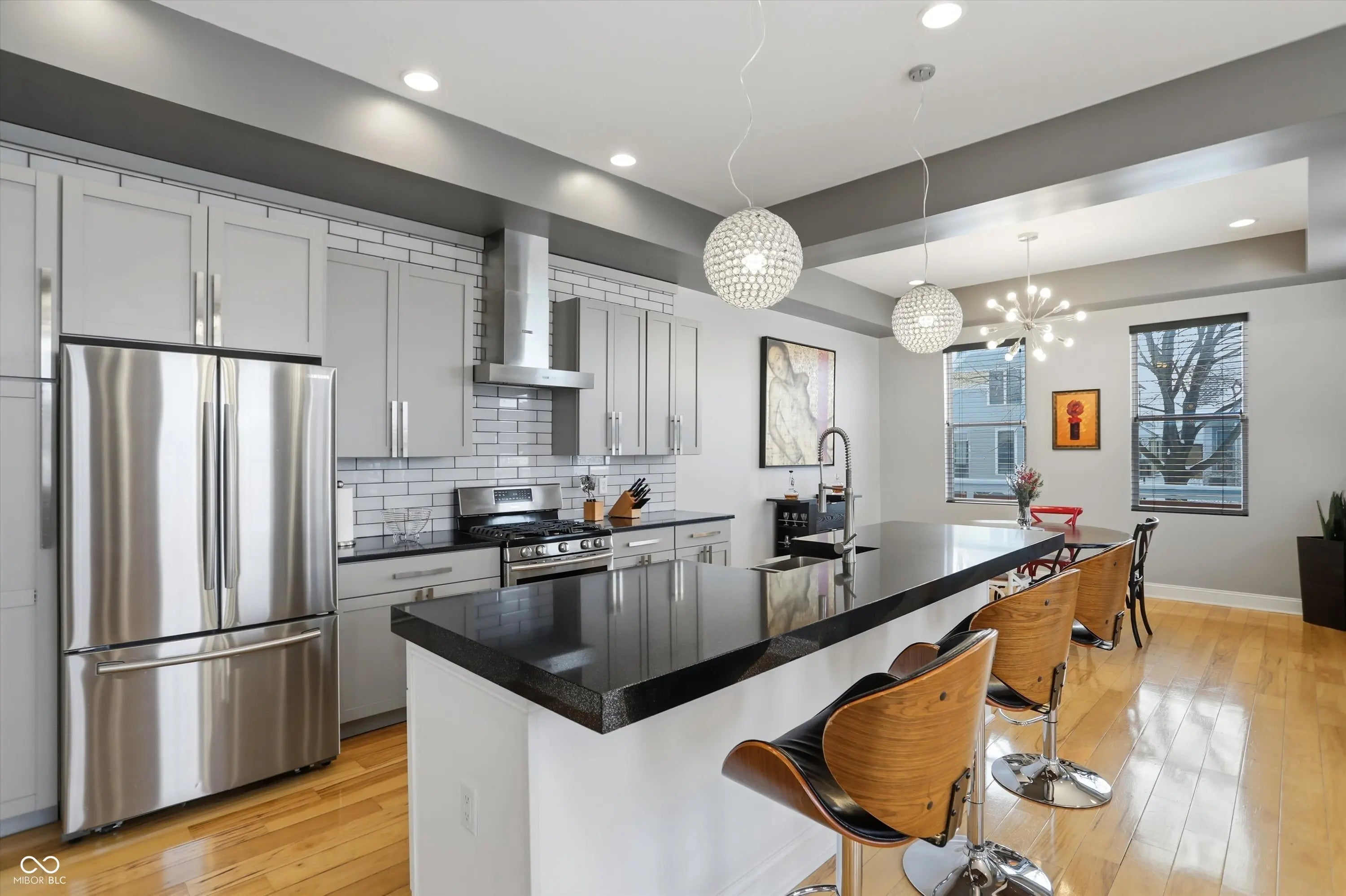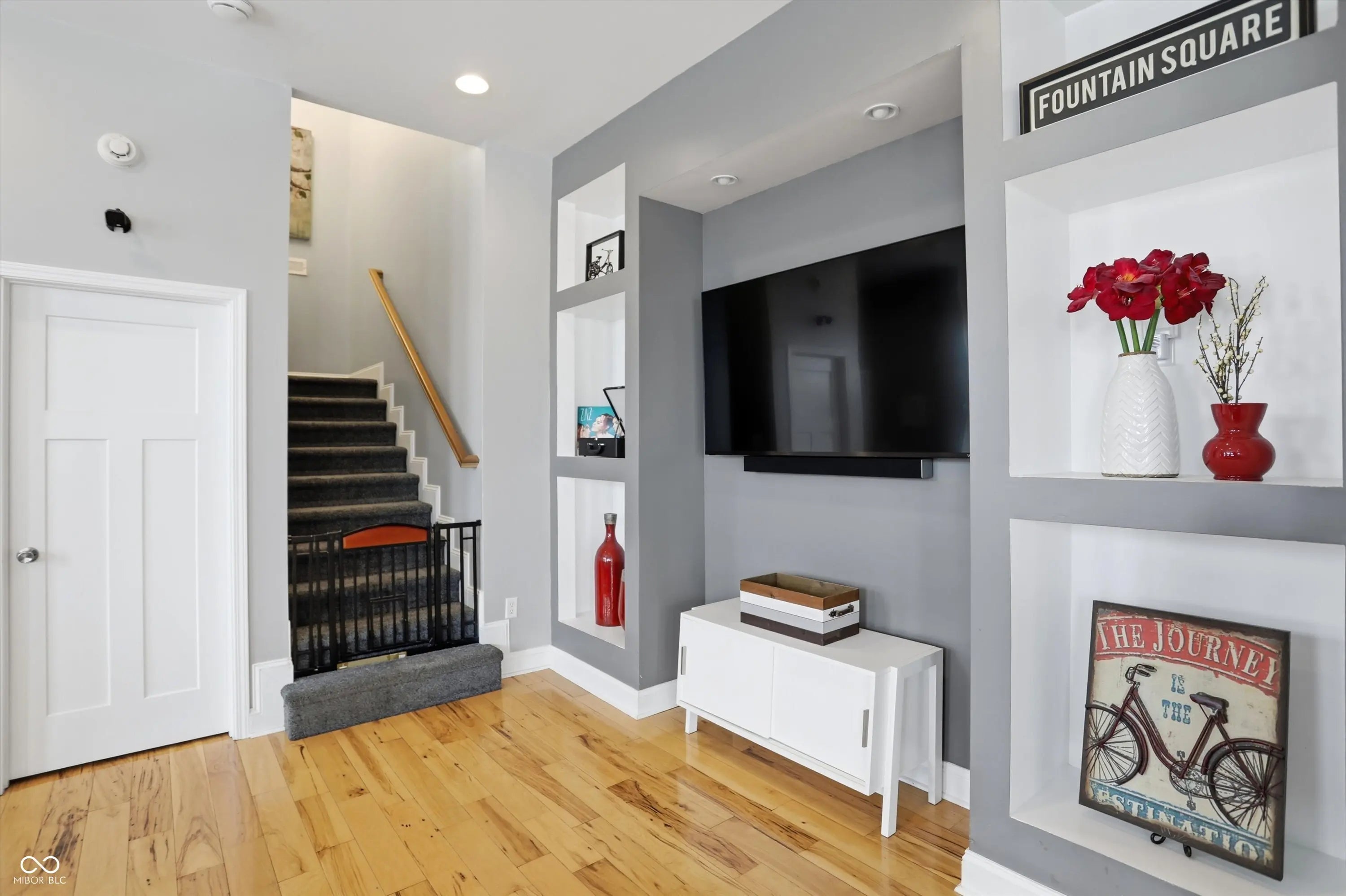 Thoughtfully designed custom built home in the heart of Fountain Square. Built new from the ground up, this modern residence blends downtown energy with warm livable style. The main level is wide open, with an easy flow from the dining area to the chef inspired kitchen with stainless appliances, granite counters and a center island with seating, then into a light filled great room with hardwoods and custom built ins crafted from pieces of the original house. Upstairs you will find two private suites including a stunning primary retreat with spa like bath and an epic custom closet, plus an additional living area with wet bar and two more bedrooms. Multiple balconies and decks capture panoramic skyline views, while a turf courtyard creates a private low maintenance outdoor escape. All of this in one of Indys most vibrant cultural districts, with restaurants, live music, nightlife and the Cultural Trail just outside your door.