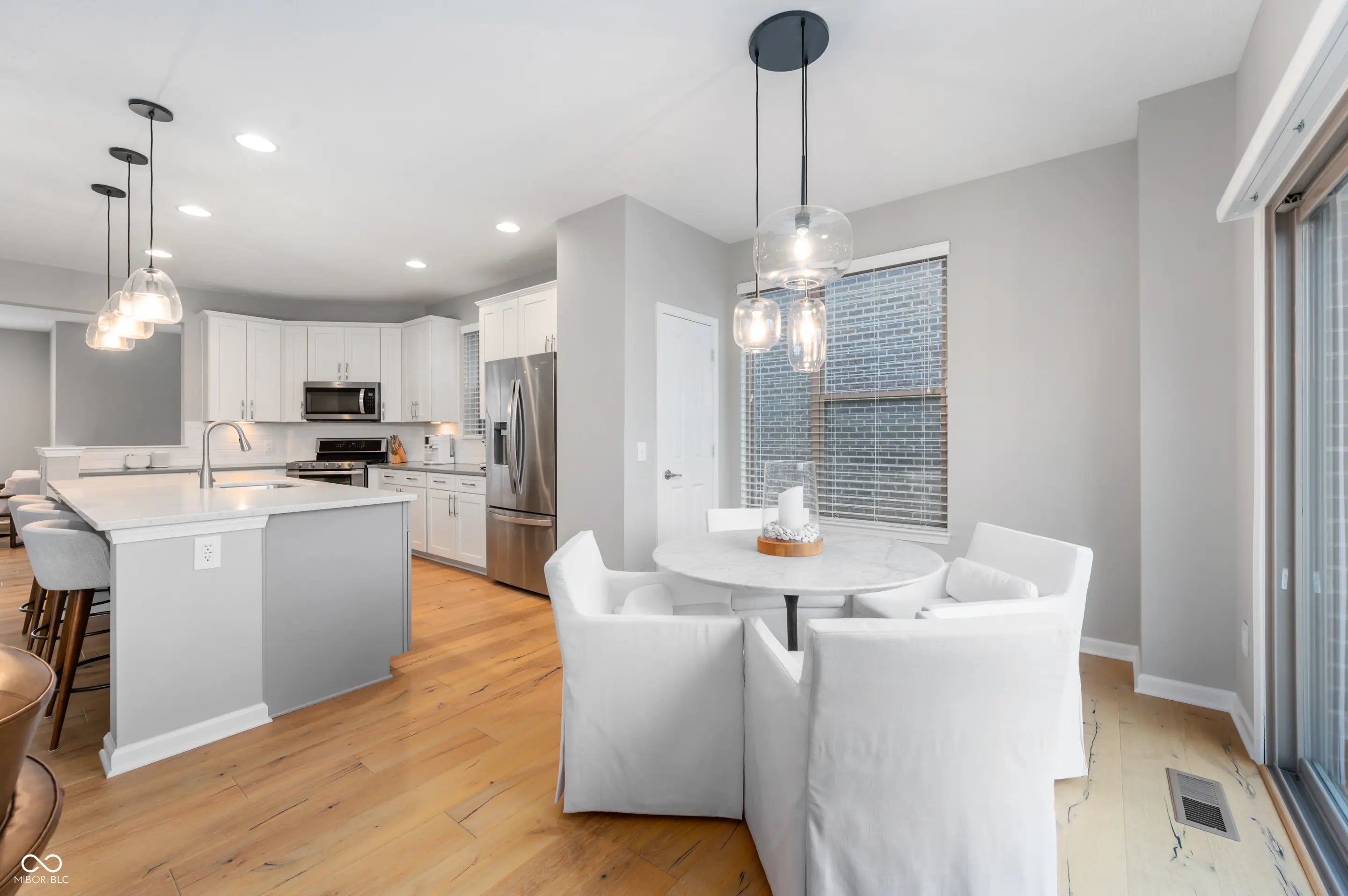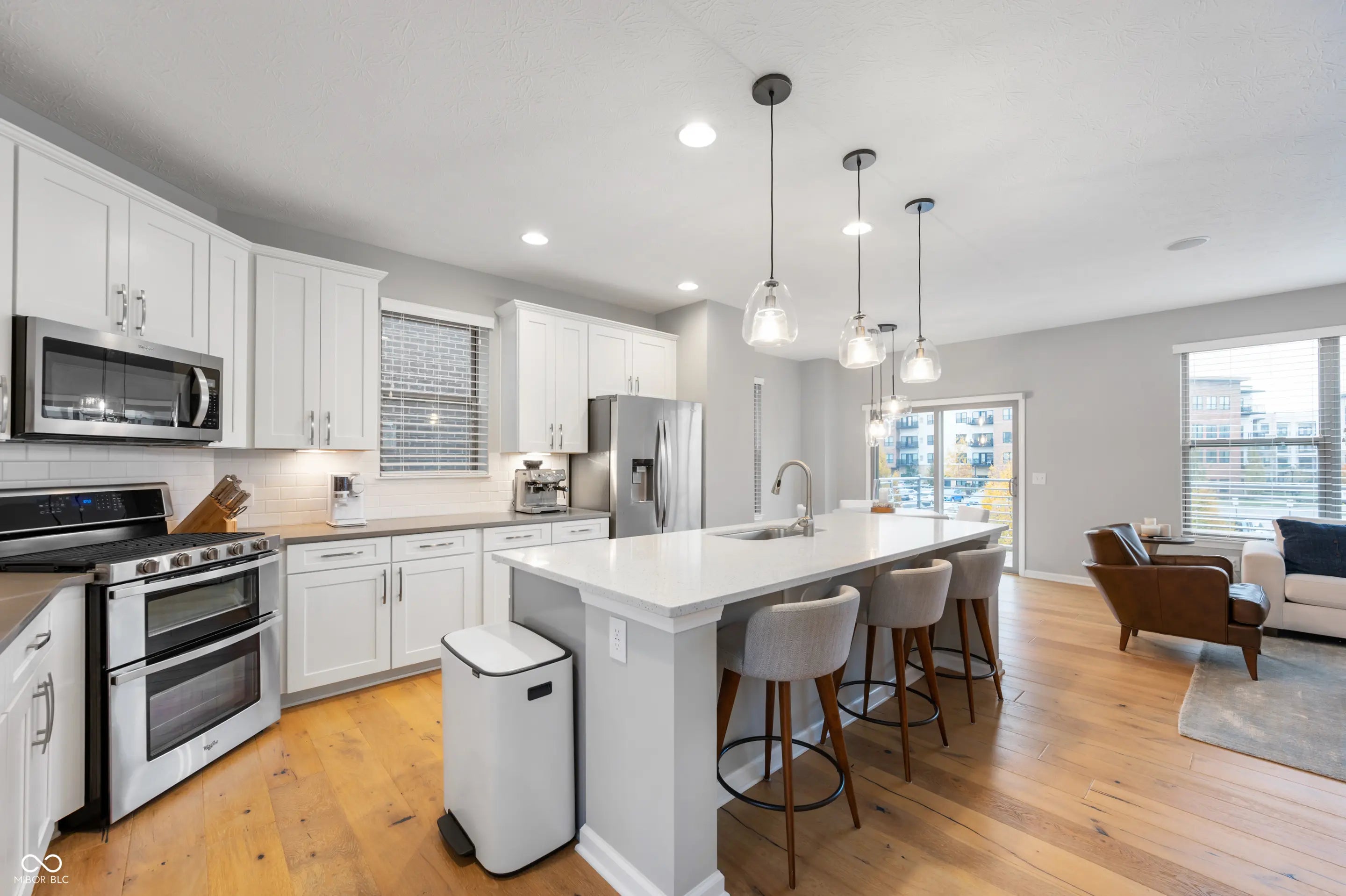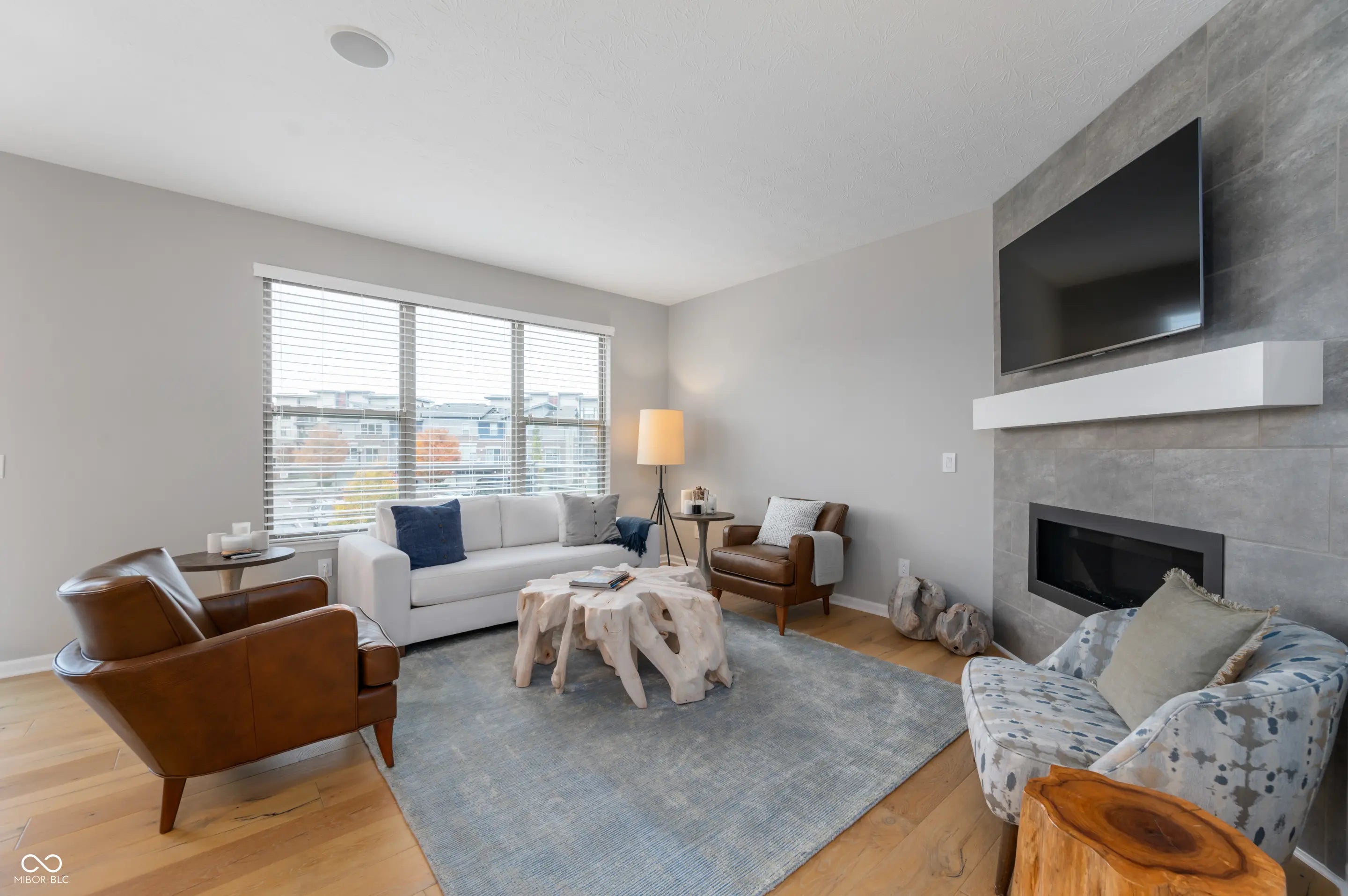 Welcome to effortless luxury living in this stunning end-unit townhome at 12937 Grand Blvd in the heart of Carmel. Designed for those who want upscale finishes without the upkeep, this low-maintenance residence offers the perfect blend of elegance, comfort, and convenience. This highly sought-after Talbot II floor plan is one of the largest and most premium options in the community, offering approximately 2,329 square feet and thoughtful upgrades throughout. As an end unit, the home is filled with natural light and enhanced privacy. The main living level features gorgeous French oak hardwood floors, a cozy fireplace, and an open layout ideal for both everyday living and entertaining. The kitchen features quartz counter tops and stainless steel appliances and flows seamlessly into the living space, while a loft area provides flexible space for a home office, media room, or could be easily converted to an additional bedroom. The ground level adds incredible versatility with a full bathroom and wet bar, perfect for guests or entertaining. Additional highlights include ceiling speakers, a finished garage, and high-end finishes that elevate the entire home. Located just minutes from Carmel's top dining, shopping, trails, and amenities, this luxury townhome offers a lock-and-leave lifestyle without sacrificing space or style. Refined. Spacious. Exceptionally low maintenance. This is Carmel living at its best.
