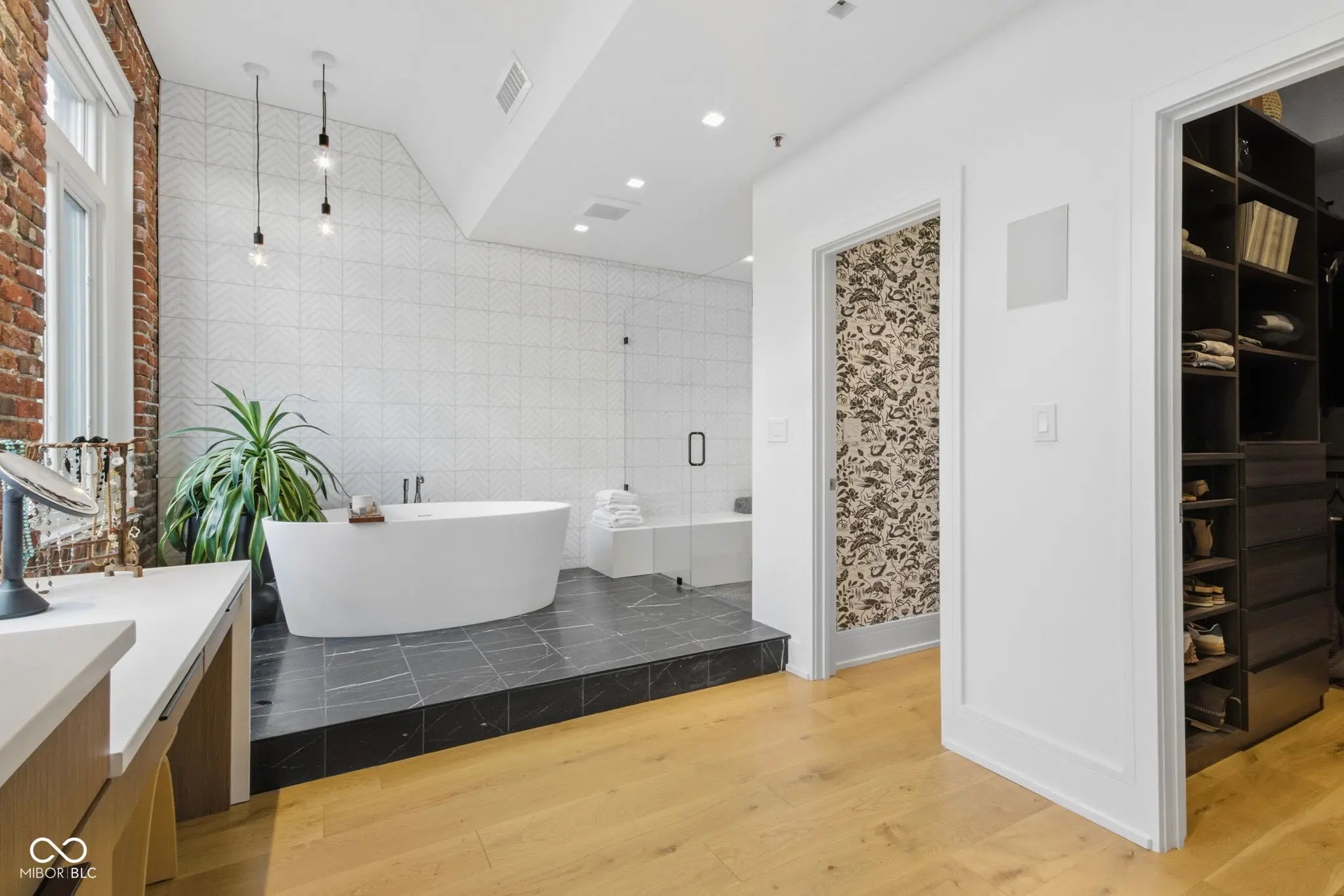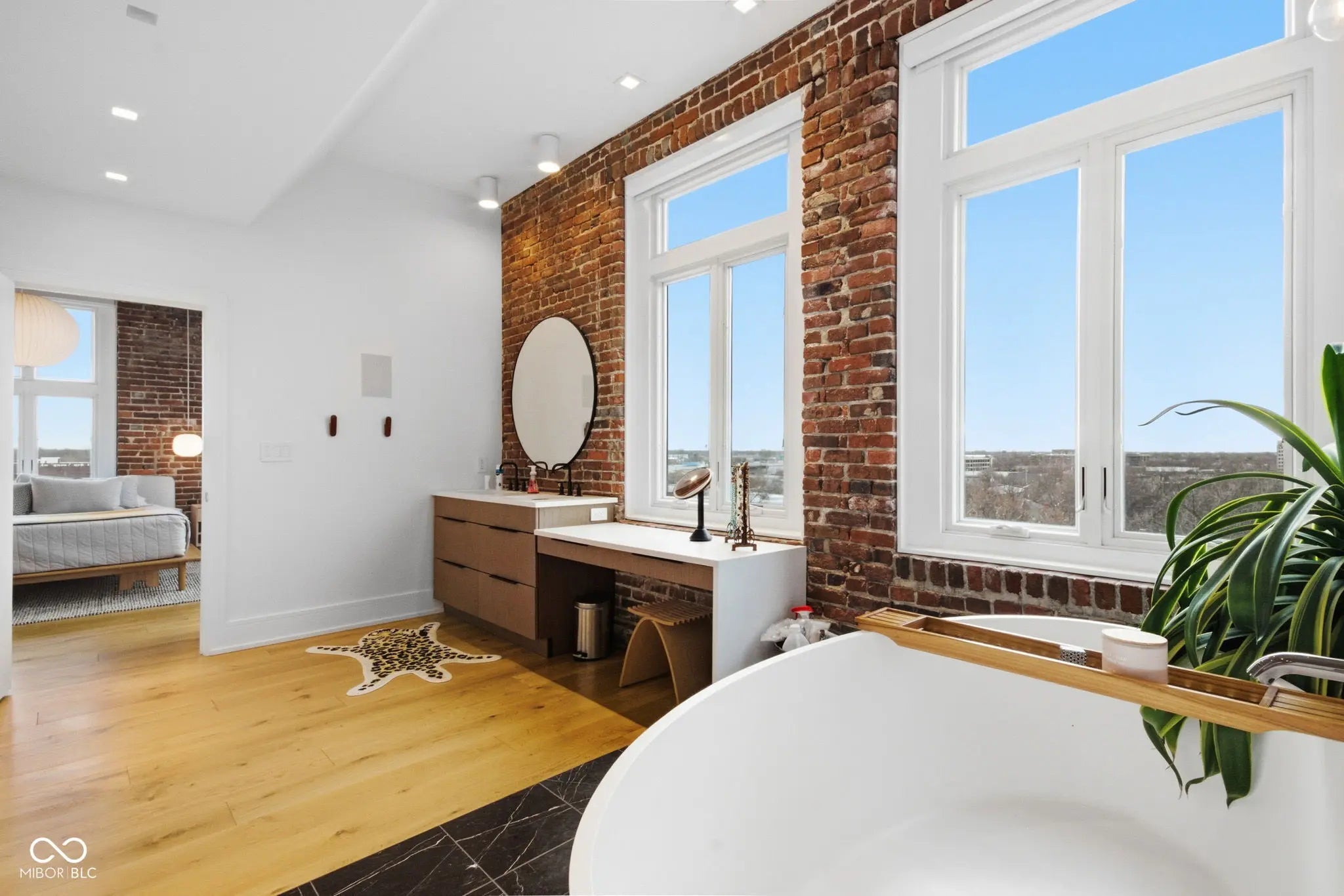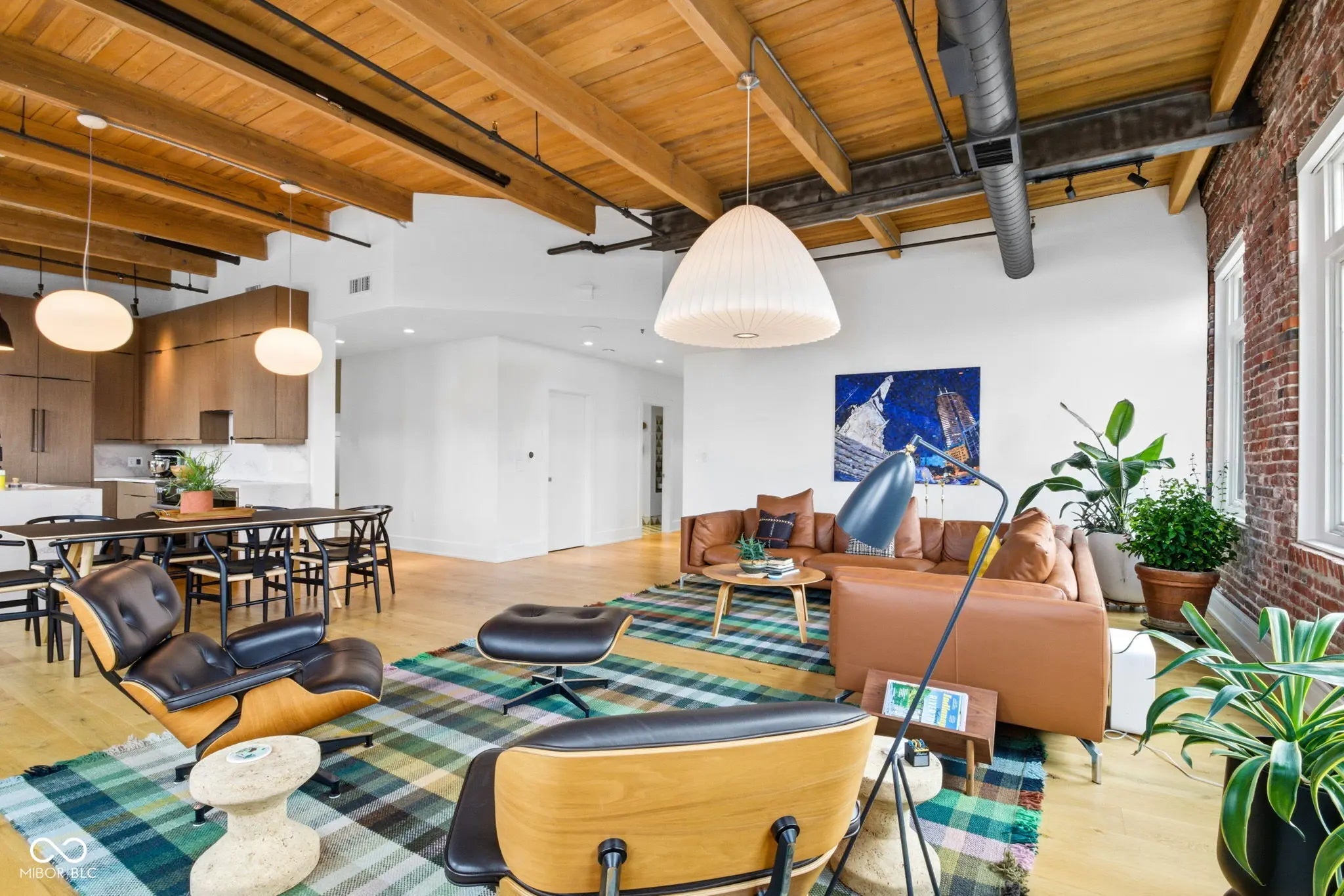 The penthouse at Lockerbie Glove Factory defines sophisticated urban living. The building has the historical significance as the first industrial building converted to residential lofts in Indianapolis. The property retains its historic charm, while the spacious double-sized top-floor residence has recently been enhanced with a modern luxury design. Perched high above the city, the residence offers breathtaking, bird's-eye views of Downtown in three directions, highlighted by the iconic skyline from the "ultimate perch"-an extraordinary 800 sq ft private rooftop deck. Light-filled interiors emphasize openness and flow. A spacious great room and kitchen connect seamlessly to expansive outdoor spaces, creating an effortless indoor-outdoor lifestyle perfect for entertaining or everyday living. The recently renovated primary bath is a serene, spa-like retreat. A thoughtfully designed layout with separated living areas provides exceptional privacy and flexibility-ideal for working from home and accommodating returning children or guests. This penthouse is as functional as it is striking. Two interior parking spaces, elevator for your convenience to the secured garage.