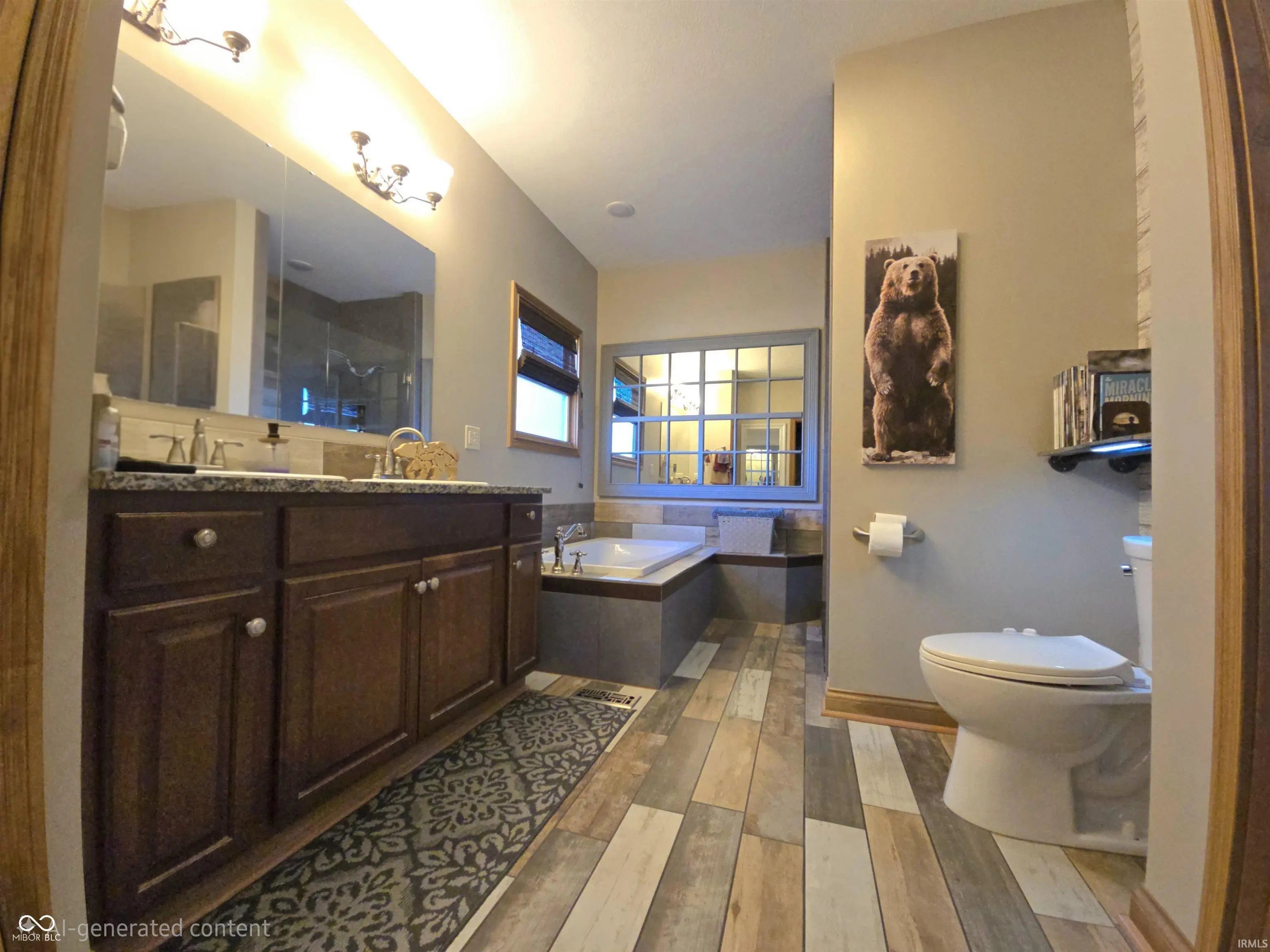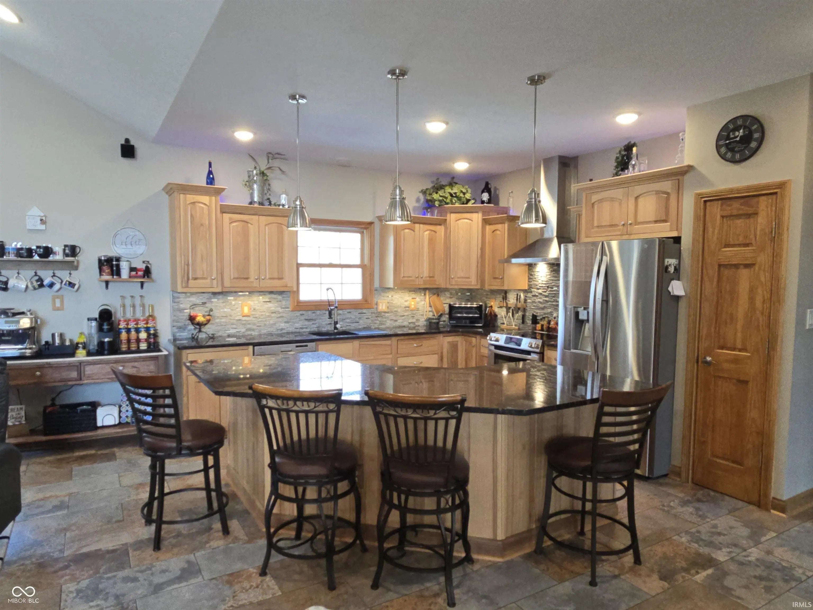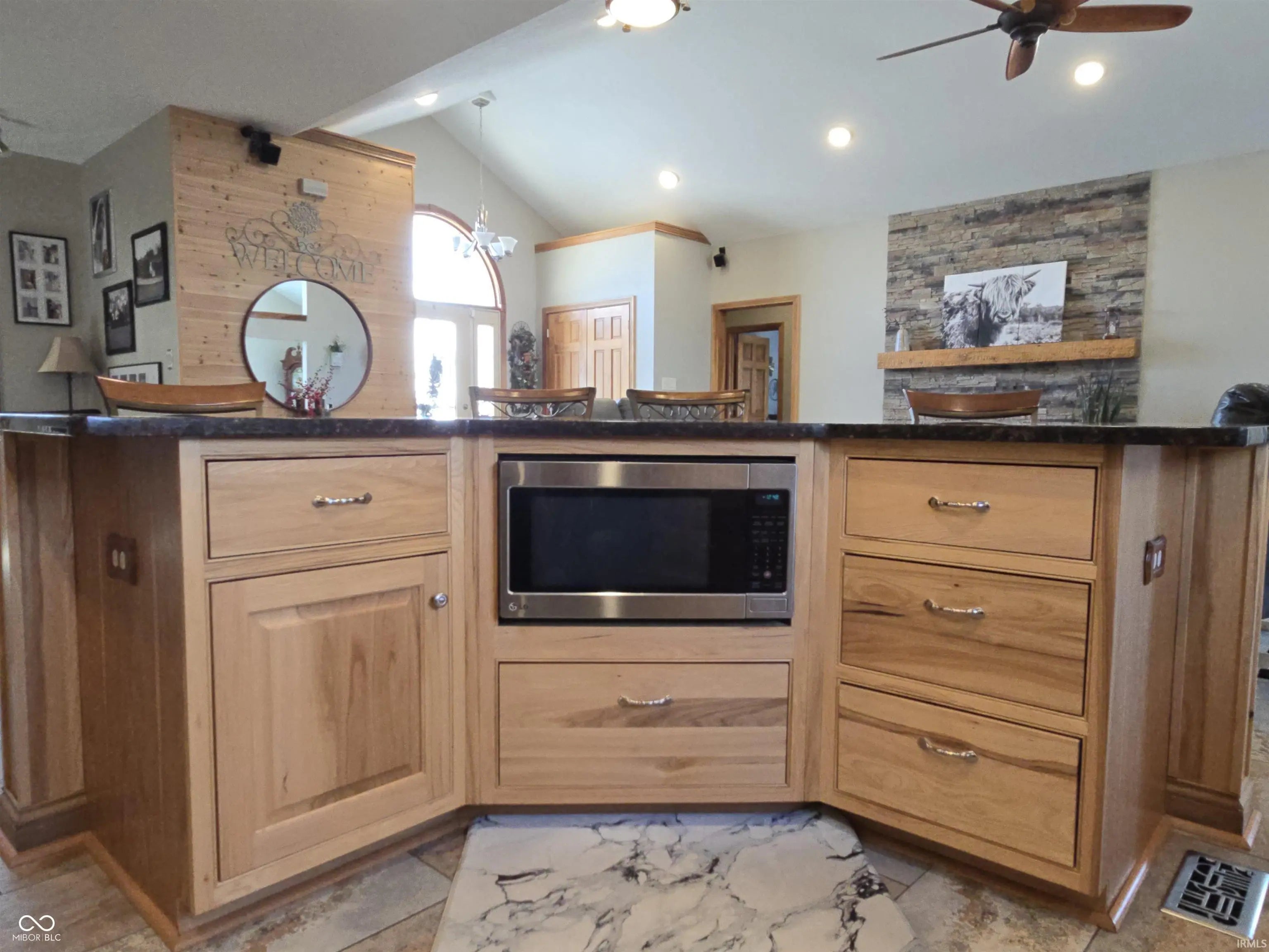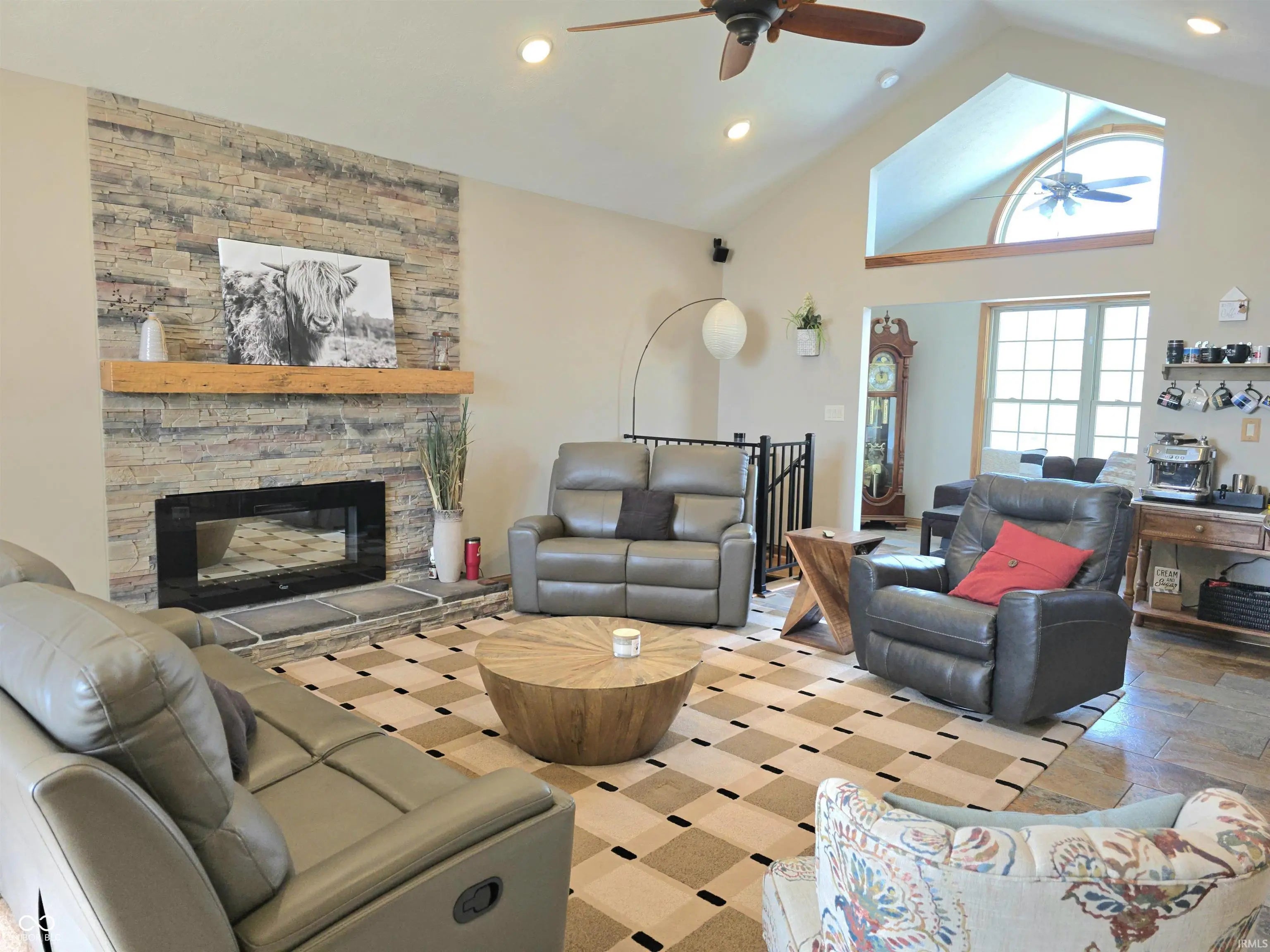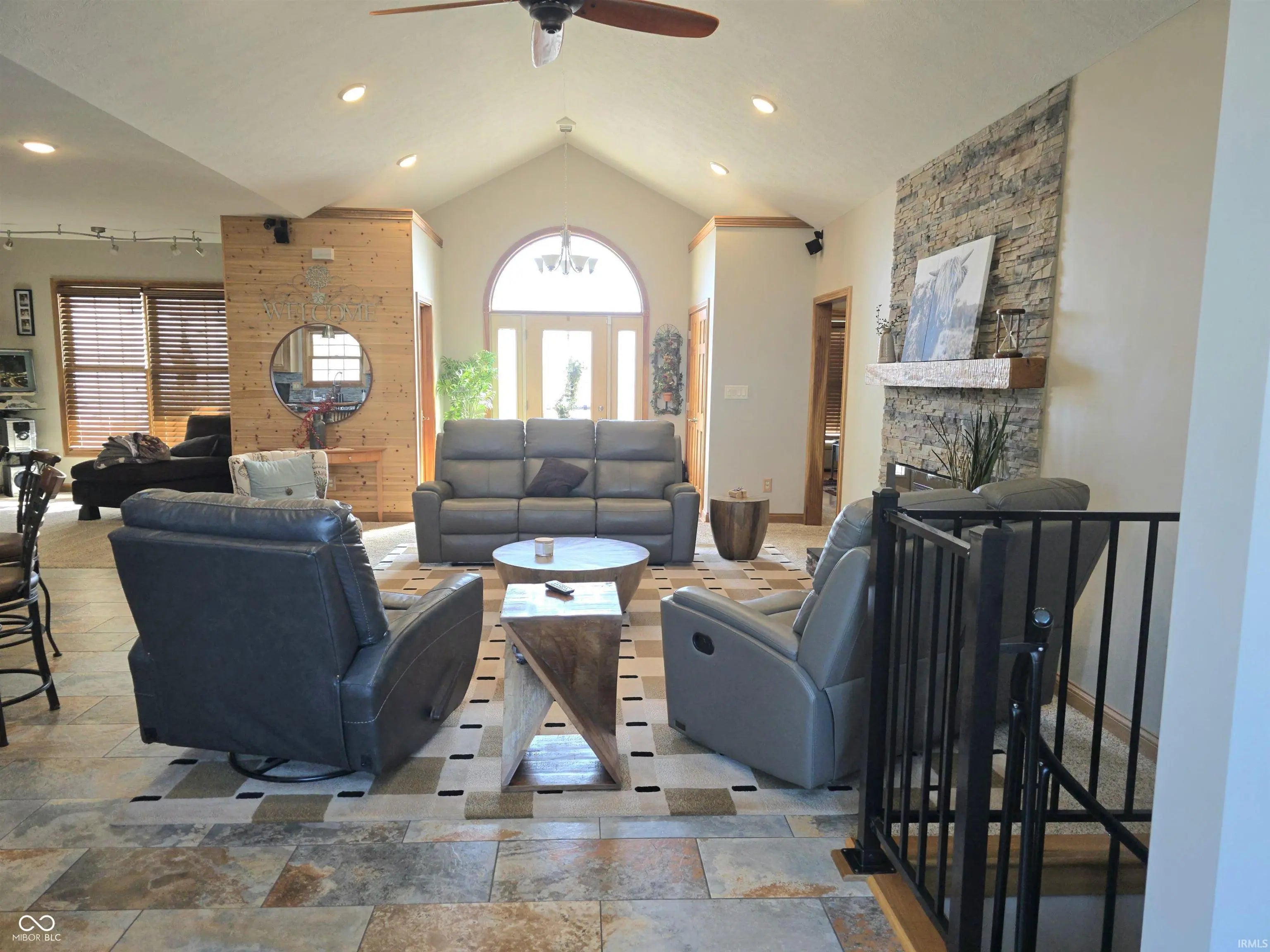 Nearly 4,200 sq ft of thoughtfully designed living space in this custom-built home, beautifully situated on a rare double lot. The open floor plan features 9-foot ceilings, stone countertops, and custom hickory cabinetry throughout, creating a warm yet upscale feel. The living room is anchored by a striking electric fireplace and surrounded by energy-efficient windows that fill the home with natural light. The exterior showcases a timeless blend of stone, brick, and cedar, offering exceptional curb appeal and durability. Energy efficiency is a priority with high-efficiency windows, doors, appliances, furnace, and air conditioning, along with a modern manifold water system for convenient individual shut-offs. The finished 38.5' x 28' walkout basement offers inside and outside access and is perfectly suited for an in-law or guest suite, extended living space, or multi-generational living. Garage space is abundant with a large garage featuring two 9' x 9' doors, plus a separate one-car garage located beneath the home-ideal for additional storage, a workshop, or recreational vehicles. This home offers the perfect combination of craftsmanship, space, efficiency, and flexibility-ideal for today's lifestyle.