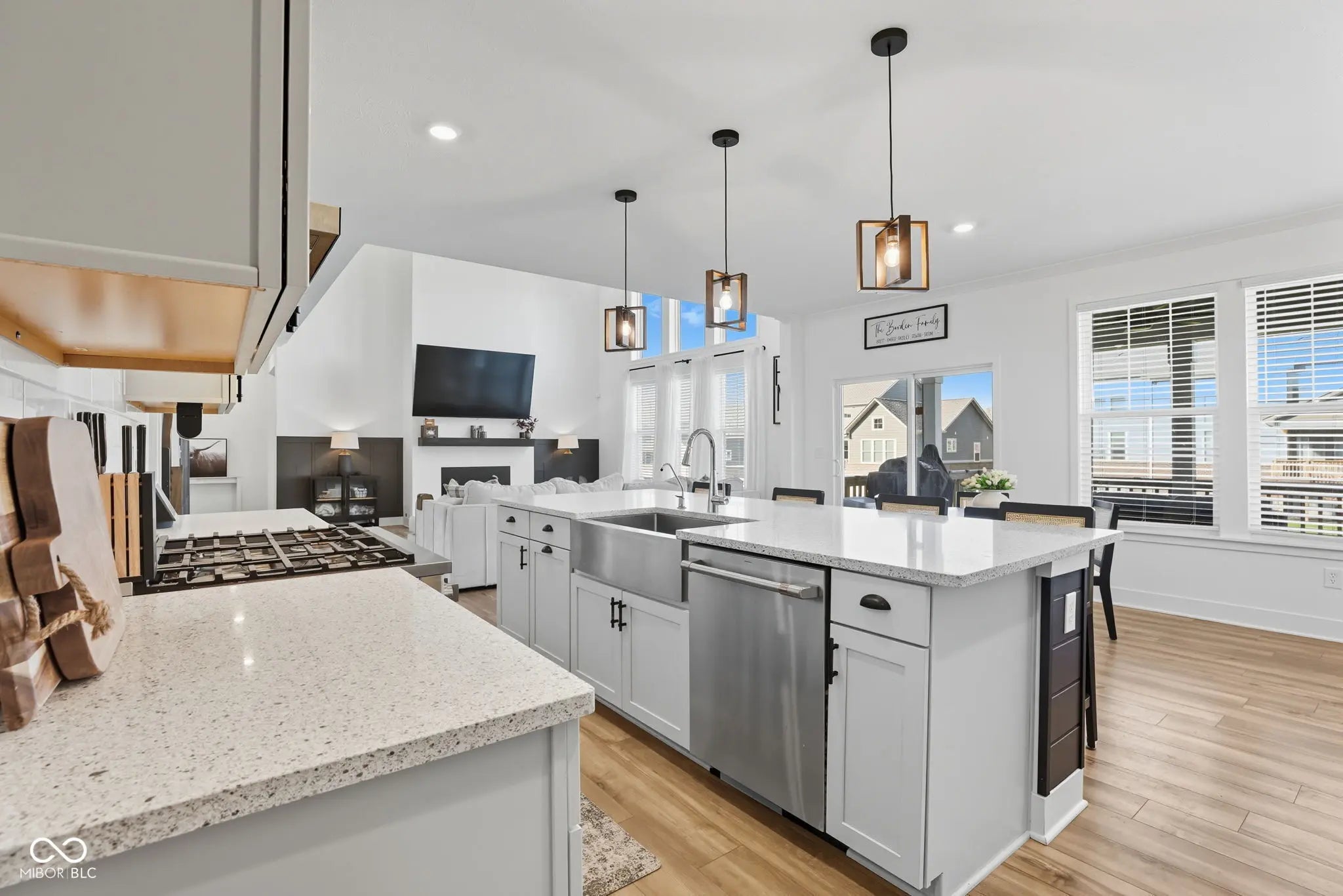 FRIDAY OPEN HOUSE 1.23.26 4:00 p.m. - 6 p.m. Stunning, well-designed home with 6 bedrooms, 5.5 baths, and a fully FINISHED BASEMENT, offering incredible flexibility. The main level features a PRIVATE HOME OFFICE with sliding doors, a MAIN FLOOR GUEST SUITE, and an open-concept layout filled with natural light. The KITCHEN shines with a large center island, quartz countertops, stainless steel appliances, coffee bar, and CUSTOM PANTRY -opening to a dramatic TWO-STORY GREAT ROOM. Upstairs includes spacious 3 BEDROOMS w/one bedroom having a private bath. LUXURIOUS PRIMARY SUITE with soaking tub, oversized shower, dual vanities, and a walk-in closet connected to the laundry room. The FINISHED BASEMENT adds exceptional living space with a new fireplace, wet bar w/built in wine fridge, fitness room, 6th BEDROOM, and full bath-perfect for guests or multi-generational living. Covered back porch, large yard, and a 3-car side-entry garage with epoxy floors complete the package. Beautifully maintained with custom touches throughout