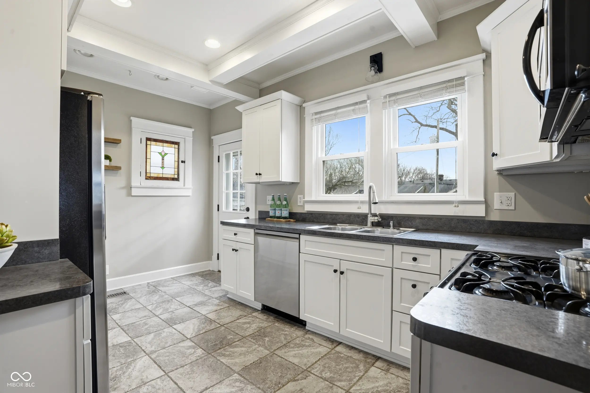 MERIDIAN KESSLER STUNNER! This METICULOUSLY maintained historic Craftsman blends timeless character with thoughtful modern updates. Offering 3 bedrooms and 2 full baths, this home welcomes you with an inviting open front porch surrounded by lush perennials and the added convenience of a side driveway. Inside, you'll find original hardwood floors, beautifully preserved crown molding, ceiling beams, stunning stained glass windows, and a cozy ventless gas fireplace with brick surround that showcases the home's classic charm. The wood grain detail on the BUILT-INS is an old home lover's DREAM! Step outside to a fully fenced backyard retreat featuring a deck, patio, well-kept landscaping, and a detached 2 car garage, perfect for relaxing or entertaining. Major updates provide peace of mind, including roof, gutters, downspouts (2023), cement composite siding (2023), electrical panel (2023), furnace (2022), window replacement upstairs and in kitchen (2016) and so much more!