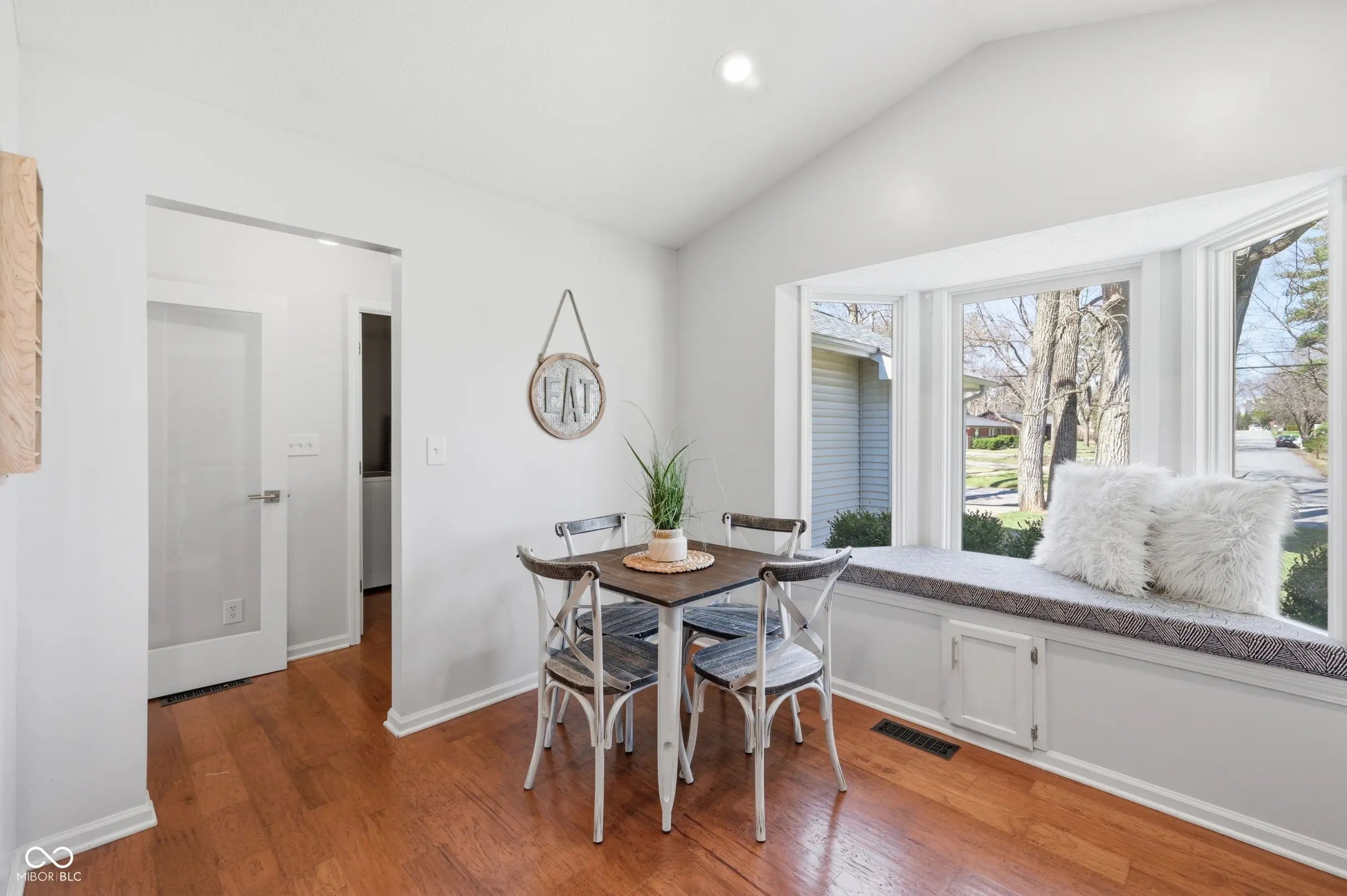 Updated & move-in ready 3Bd/2Ba home located in Nora - just over a mile from the interstate, shopping, grocery stores, & restaurants! Neutral paint tones, stunning engineered hardwoord floors, & beautiful updates & accents throughout! The living room immediately captures attention with the vaulted ceiling, creating an airy and spacious atmosphere, while a comforting woodburning fireplace infuses warmth and charm into the space. Sliding glass doors allow so much natural light to flood the room & offers easy access to the back deck & backyard. The LR also features plenty of space for a dining room table, too. In the kitchen you'll find more vaulted ceilings & plenty of storage in the cabinetry featuring updated gold brass pulls that compliment the amazing sink & updated fixtures. A cozy eat-in breakfast area is next to a beautiful bay window, complete with bench seating, and more natural light. Each bedroom is move-in ready with the Primary Bedrm featuring vaulted ceilings, a lovely board-and-batten accent wall, and modern light fixtures. The second bedroom has a regal wall of built-ins and is currently being used as a home office. The third bedroom offers a blank slate to make the room into exactly what you desire. Two full bathrooms, one with a tiled shower/bathtub combo & the other with a walk-in tile shower offer convenience located near the bedrooms. A dedicated laundry room streamlines household tasks. You'll love spending time outdoors on a new & spacious composite deck, around the firepit perfect for summer evenings, or running around & playing in the fully fenced-in backyard. Sitting on almost a quarter acre lot, this inviting home offers the perfect blend of comfort and charm in a prime Indianapolis location!