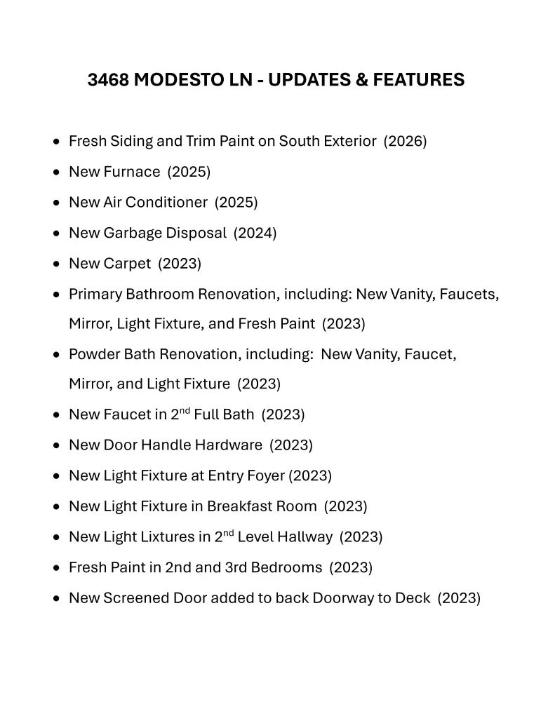 - Appliances: Dishwasher, Dryer, Disposal, Gas Water Heater, Microwave, Electric Oven, Refrigerator, Washer, Water Softener Owned