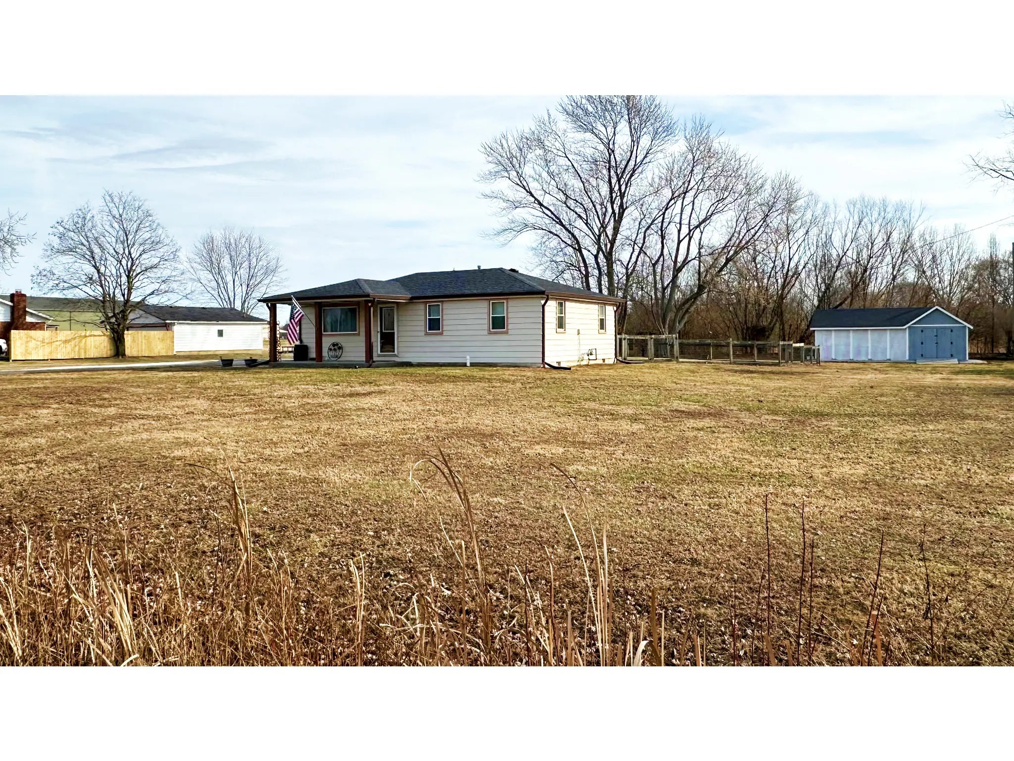 Welcome to Avon! This charming 1416 sq ft home on nearly 3/4ac eagerly awaits its spirited new chapter with NO HOA or CCR's! Inside you will find many highlights including beautiful hardwood floors and a cedar coat closet just off the front entry. What sets this home apart are the 4-bedrooms allowing you plenty of space for family/guests or even an office, while adding 1.5 bathrooms. In the kitchen, there is plenty of room to make that family dinner including an easy access pantry with pull out drawers. Lots of natural light welcomes you in the living room leading you out to the large fenced-in backyard. Once outside, the possibilities continue! Plenty of space inside the fence for playing sports with the kids or creating your own garden. At the back of the property, check out the 12x16' enclosed mini barn and attached 16x20' carport. Add in a NEW ROOF & FRESH GRAVEL to the east to park that RV or trailer! Wonderful location just across the street from Hickory Elementary and less than 10 mins from everything Avon has to offer. This single-story, single-family residence presents a wonderful opportunity to create a joyful and inspired lifestyle.