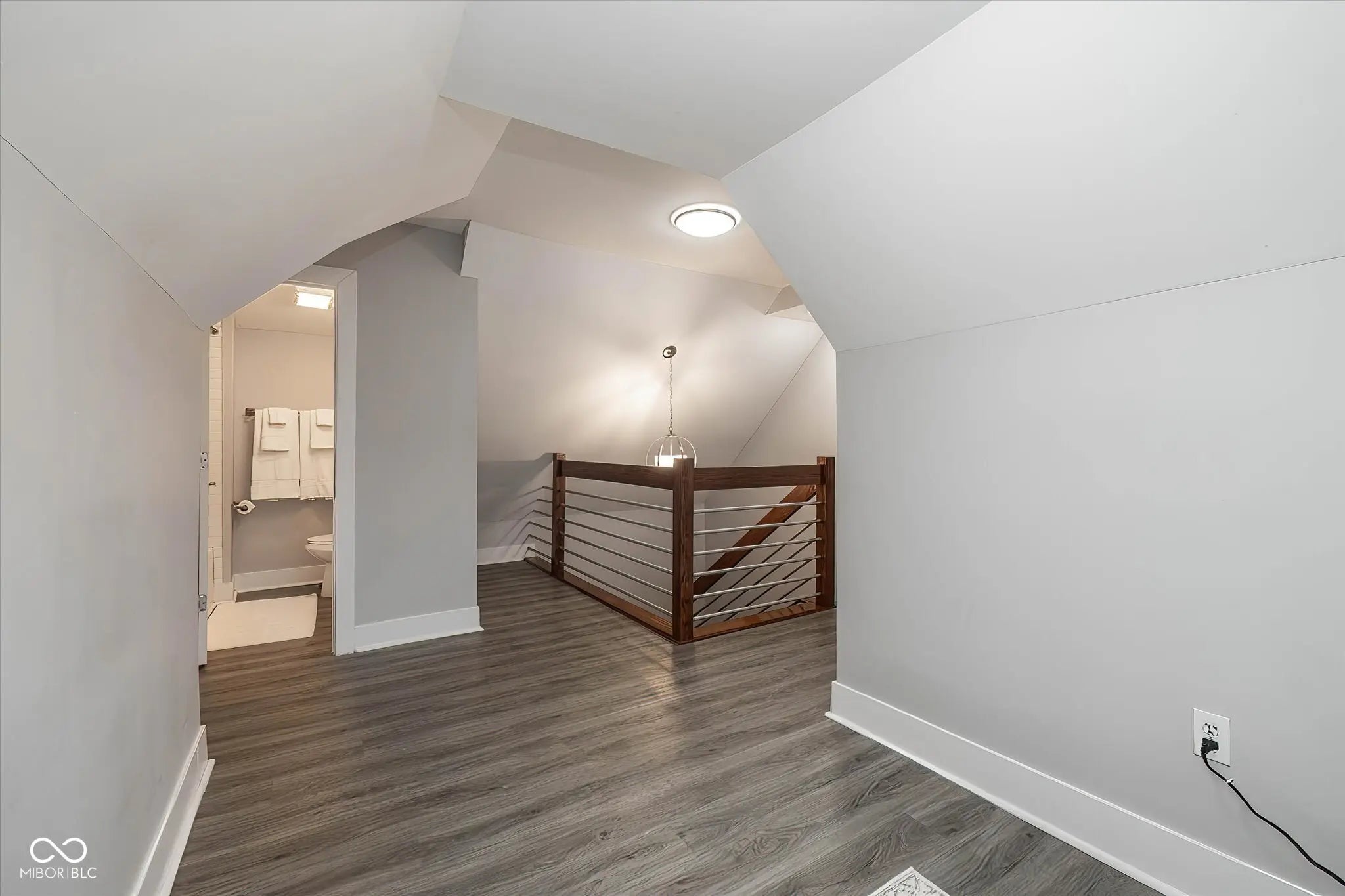 This charming jewel in the heart of Indianapolis is sure to take your breath away! Nestled in an up-and-coming area just minutes from downtown, this fully renovated home boasts an impressive 1,800 square feet of exquisite living space. Step inside to discover an open concept floor plan that seamlessly blends style and functionality. The front of the house is adorned with cedar plank siding, inviting you into the beautifully lit interior featuring recessed can lighting. The stunning oakwood staircase serves as a focal point, complementing the elegant vinyl plank flooring that flows throughout. The master suite and spacious second bedroom are conveniently situated on the main level, along with a thoughtfully designed half bath and laundry room. Ascend to the second floor, where a cozy loft and bonus room await, featuring an additional bedroom that offers endless possibilities-whether you need a nursery, home office, game room, or a peaceful space to unwind. Fully fenced backyard, along with storage shed add to the home's outdoor functionality. Don't miss the opportunity to experience the beauty and comfort of this stunning residence!