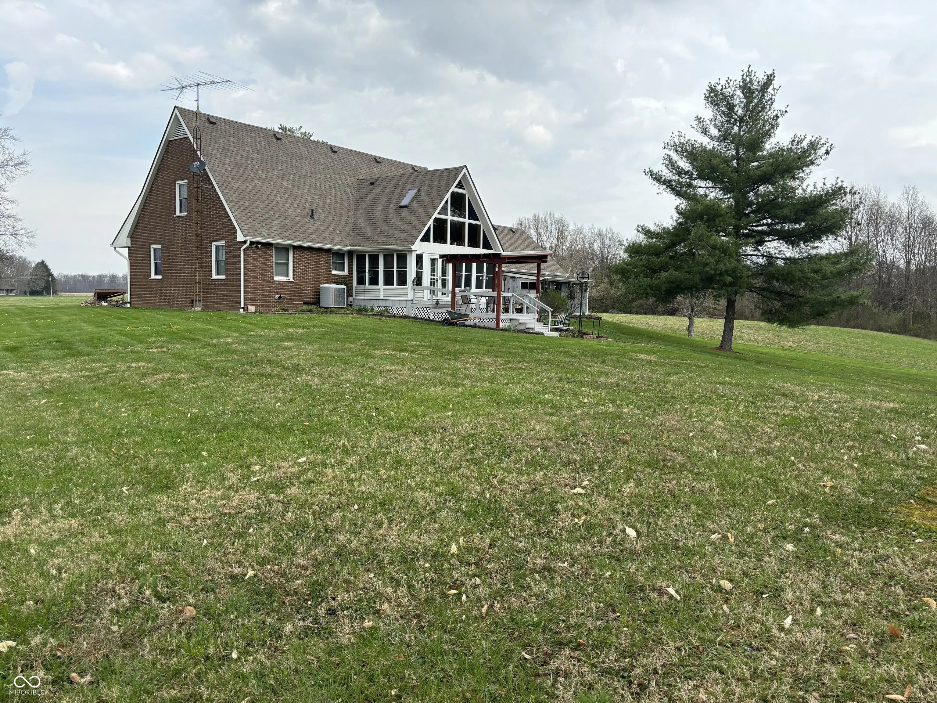 Beautiful 3-Bedroom all-brick Cape Cod home on nearly 17 Acres, approx. 11 acres of which provides a yearly income opportunity. New dimensional shingle roofing, maintenance-free finished soffits, gutters, and downspouts installed on the home and 2-car detached garage within the last 5 years. Main floor of home includes sun-filled primary bedroom with small, full bath ensuite, an office/flex room perfect for an office or craft room, living room with masonry fireplace and built-in bookshelves, sunlit Dining Room, spacious Country Kitchen, and an enticing enclosed porch with a bead board vaulted ceiling and new flooring. The living room flooring is manufactured hardwood with a carpet insert. Upstairs includes 2 large Bedrooms with dormers and access to a fully decked attic that provides additional storage. Basement family room features bar with full-size refrigerator, pool table with removable ping pong top, and masonry fireplace with insert. Unfinished portion of basement has laundry area with washer and dryer, craft/workshop area, and mechanicals including a water softener purchased in 2025. There is a humidifier attached to the heat pump heating system, and a free-standing dehumidifier in basement. The detached all-brick 2-car garage has attached workshop and access to another fully decked attic space. Outdoor living areas include brick patio with fire pit in backyard overlooking a dense woods with an assortment of wildlife. Small pond offers a serene retreat from the hustle and bustle of life--and if you are lucky, a scrappy fish or two. There are 3 outbuildings on property, the largest with CMU walls and concrete slab floor. There is an additional 5.5 acre tract adjoining this property that is not included with this listing.