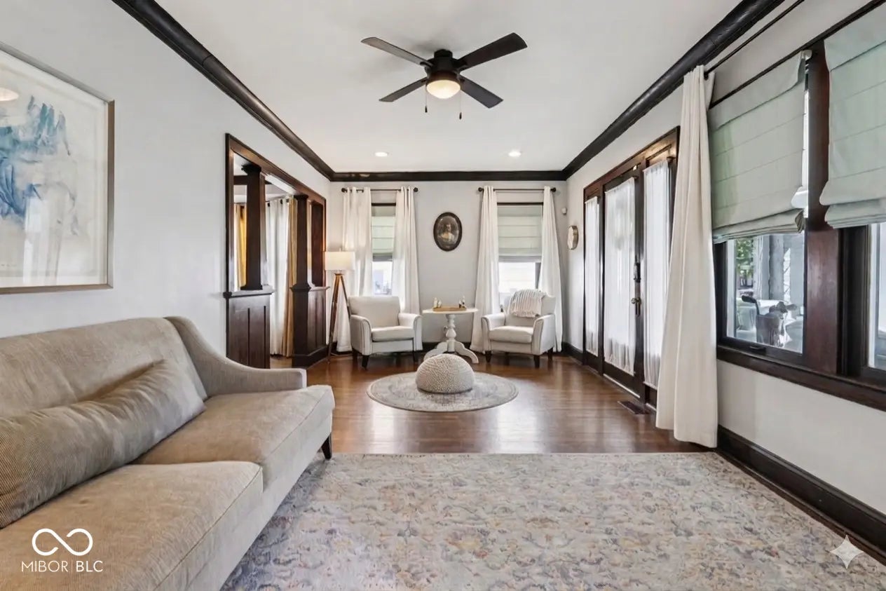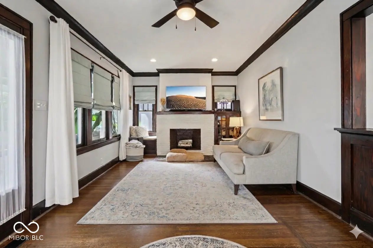 An enduring appeal emanates from 2606 N Delaware ST in INDIANAPOLIS, IN, USA, a single family residence showcasing itself as an attractive property in great condition. The living room offers a welcoming atmosphere, featuring a charming fireplace that provides a focal point for moments of repose. Elegant crown molding adorns the space, adding a touch of classic sophistication to the room's design. Culinary pursuits are elevated in the kitchen, thoughtfully designed with shaker cabinets and a stylish backsplash. A practical kitchen peninsula, complete with a kitchen bar, offers versatile space for dining and preparation, while a sophisticated wall chimney range hood contributes to the room's refined aesthetic. One of the two full bathrooms provides a serene retreat, equipped with a luxurious soaking tub for unwinding moments. A spacious tiled walk in shower offers a refreshing experience, complemented by the convenience of a double vanity for personal comfort. This distinguished residence, constructed in 1914, spans two stories and encompasses 2724 square feet of living area, offering three bedrooms and two full bathrooms. A dedicated laundry room further enhances the practical aspects of daily living within its 4443 square foot lot. This single-family residence thoughtfully combines classic character with practical amenities, inviting a distinctive way of living.
