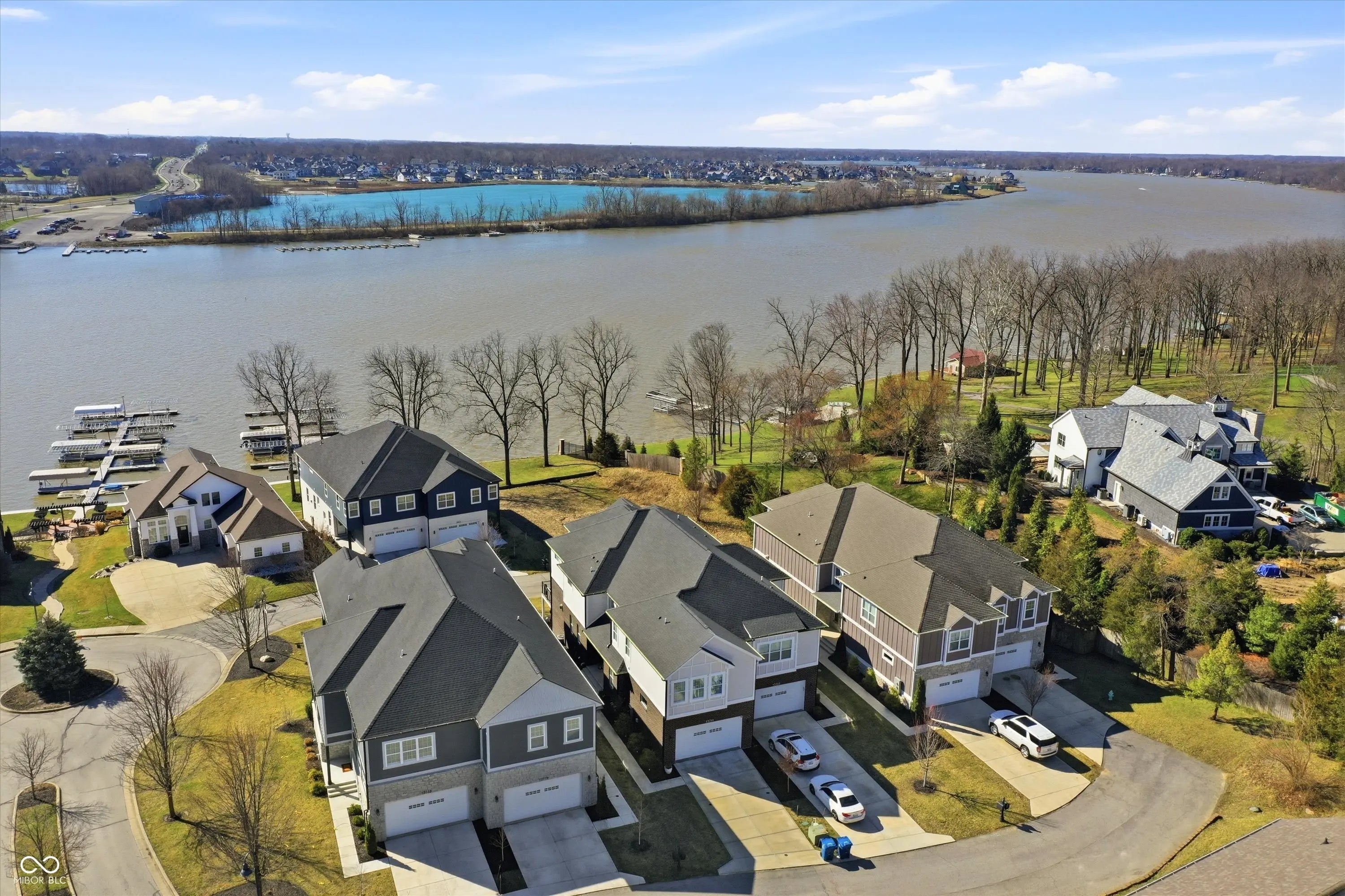 RARE FIND & SHOWSTOPPER in Watersedge, Fishers' PREMIER GATED & MAINTENANCE-FREE WATERFRONT COMMUNITY ON GEIST!! ENJOY "LAKE SEASON" year-round w/serene water views & multiple outdoor living spaces. Savor fun & entertaining in warmer months w/your own BOAT DOCK & DIRECT WATER ACCESS just steps from your back door! A coveted MAINT-FREE COMMUNITY on GEIST RESERVOIR, this GORG CUSTOM HOME is a rare gem, rivaling a luxury model home & magazine spread...TRULY A LIFESTYLE UPGRADE! Leave snow shovels & lawn mowing behind & enjoy the good life! Showcasing finest attention to detail, MODERN ELEGANCE & LUXURIOUS DESIGN ELEMENTS ABOUND w/SPACIOUS & IMPECABLY DESIGNED OPEN PLAN offering light-filled 10'ceilings & 3-LEVELS of exquisite living spaces w/impressive millwork, designer-inspired accents, high-end light fixtures & appliances, & beautiful hardware. LRG windows framing beautiful lake views, spacious GR w/ stunning hearth & cozy gas FP opens to spacious deck, spacious DR & fabulous Gourmet Kitchen - featuring stunning cabinetry, high-end appliances, gorgeous quartz counters, gas range & custom range hood, & enormous cntr island w/seating area. Stunning open staircase w/modern elegant flair & luxury plank flooring w/ideal neutral color palette welcomes you. Dedicated home Office w/builtins & fabulous Laundry Rm add to the main floor design. Upstairs, FABULOUS GRAND OWNER'S SUITE offers private terrace, spa-like bath & enormous custom-designed closet+ LOFT & spacious BRs w/jack-n-jill bath. Huge lower Family/Theater Rm, Wet Bar/Rec Area & patio + Flex Room w/ adjacent full bath... ideal Exercise Rm/Hobby/Game Rm or private BR. Don't miss cabinet w/pull-down Murphy bed + add'l storage areas. Garage Elec Car plug in. TOO MANY INCRED FEATURES TO LIST! NEARBY: Geist Marina, shops & waterfront dining + Yacht/Sailing Clubs; golf courses; concert venues & farmer's markets; Daniel's Vineyard & more! Easy access to I69 & wider attractions of Indy! DON'T MISS OUT ~ ALL BOXES CHECKE