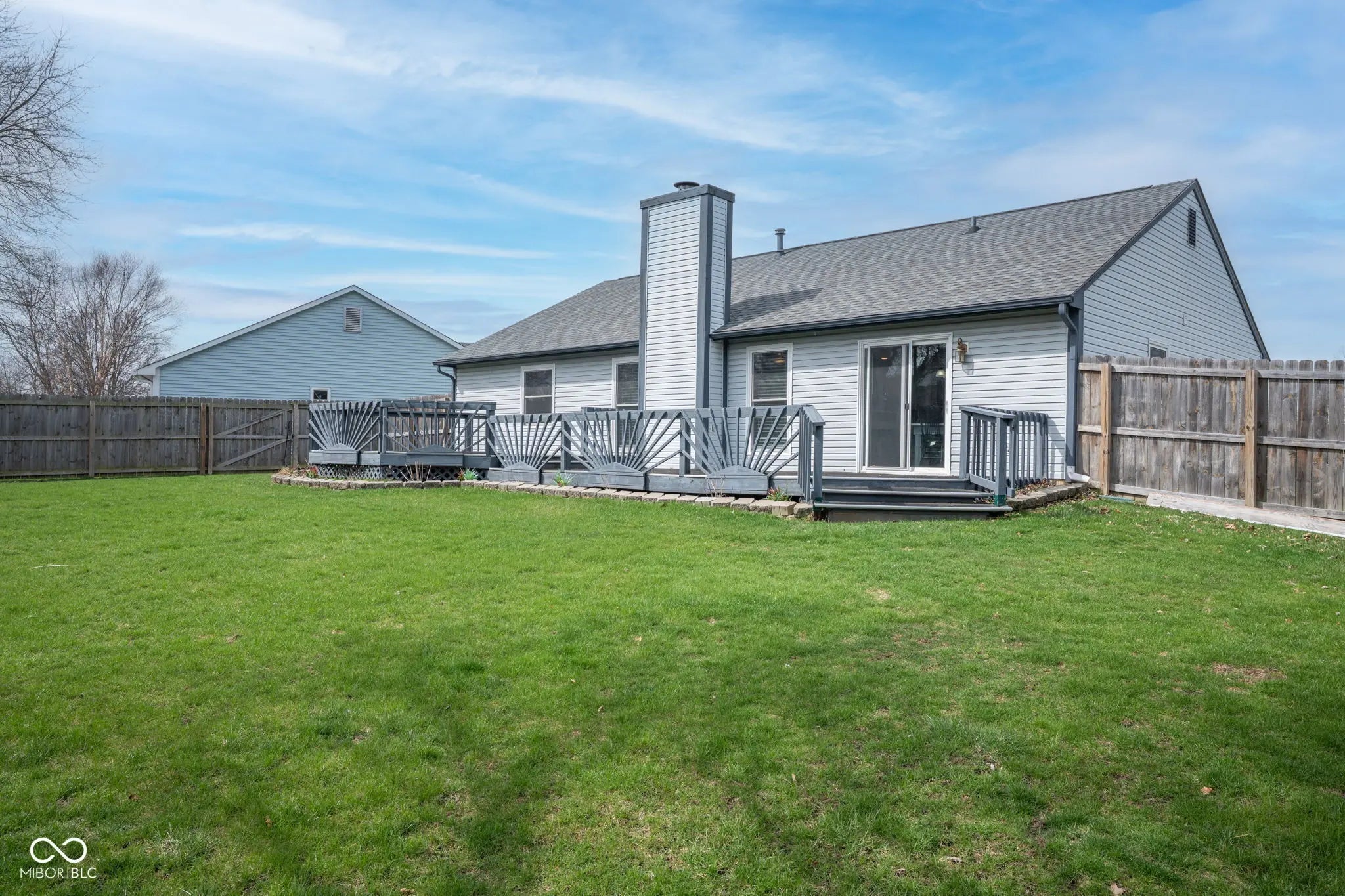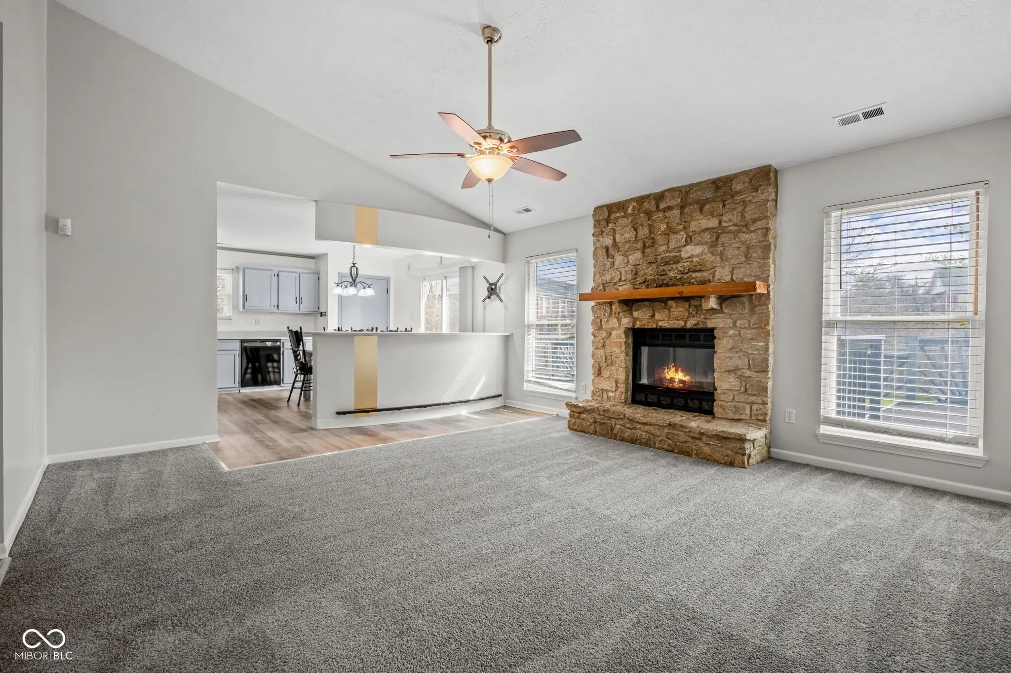 Beautifully updated and move-in ready! This 3-bedroom, 2 full bath ranch offers an open-concept layout with stylish updates throughout. Step into the spacious living room featuring vaulted ceilings, abundant natural light, and a stunning floor-to-ceiling stone fireplace-perfect for cozy evenings with its wood-burning charm. The kitchen and dining area flow seamlessly into the living space, showcasing granite countertops, updated cabinetry, and new light fixtures, making it ideal for both everyday living and entertaining. You'll love the brand new laminate flooring and plush carpet, along with fresh paint throughout the entire home-including ceilings, walls, trim, and doors-giving it a clean, modern feel. The primary suite includes a private full bath, and all three bedrooms feature walk-in closets, offering plenty of storage space. Outside, enjoy a fully fenced backyard with a large deck-perfect for gatherings, grilling, or relaxing-plus a mini barn for additional storage. A 2-car attached garage completes the package. This home combines comfort, style, and functionality-don't miss your chance to make it yours!
