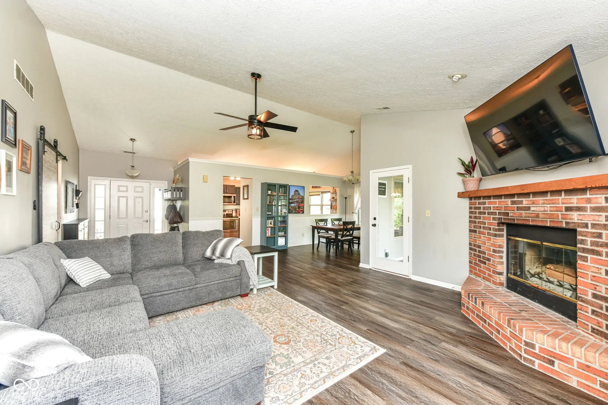 Welcome to this meticulously, well-maintained home in amazing condition. The entire house was upgraded to new LVP flooring in March 2026. The great room features a brick fireplace for cozy winter nights and high, vaulted ceilings that create an open feel. The large window provides extra light throughout the entire space which flows into the dining room and large kitchen with extra cabinet space. The primary bedroom has a new ensuite bathroom. The other two bedrooms have plenty of space for bigger beds. Another plus is the sunroom off the dining area and the nice deck. The black wrought iron on the sides and front of the full fence gives the yard a classy feel. Don't miss this gem!