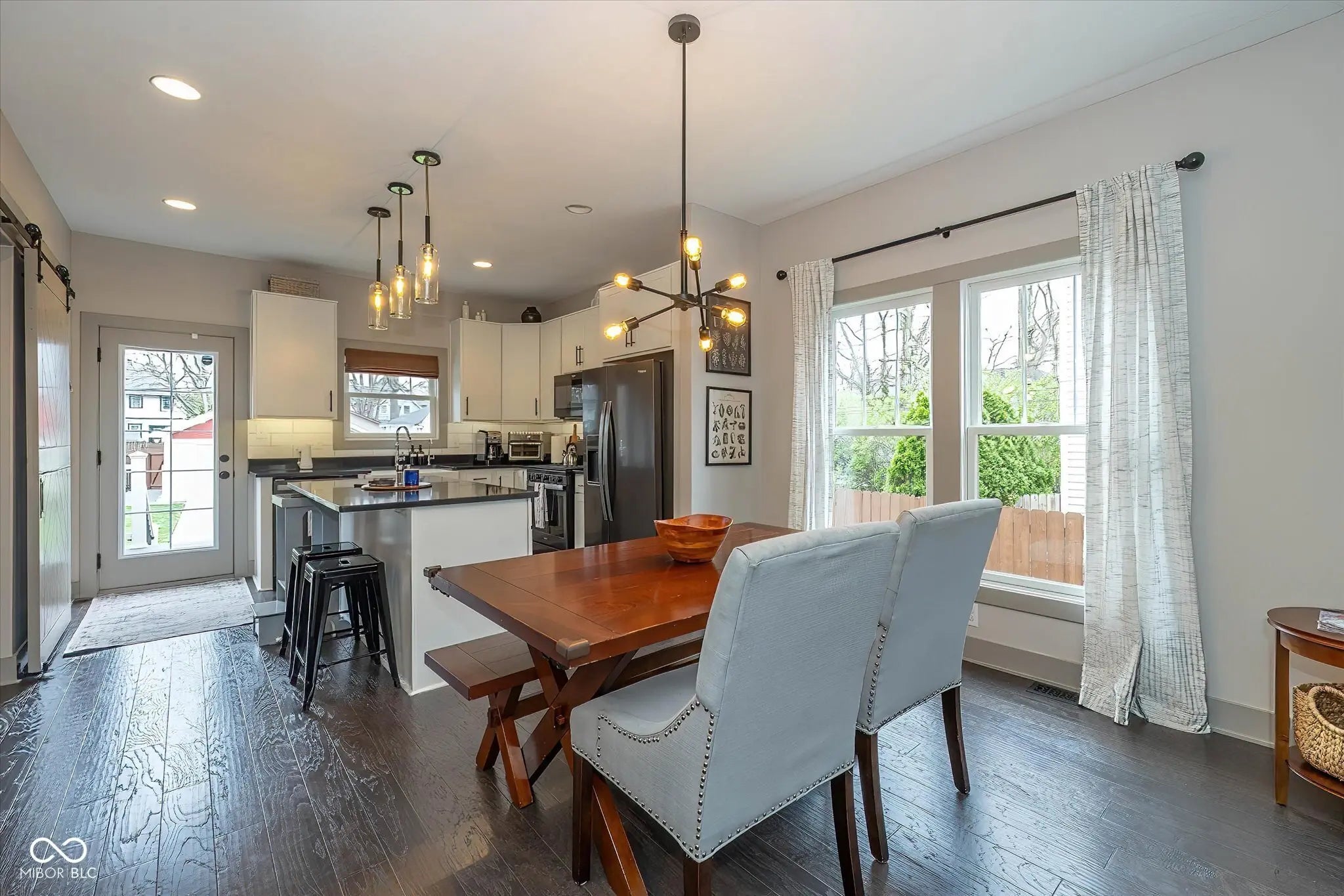 Experience downtown-inspired living in this 2019 new construction perched on a rare double lot in the Springdale Area of Indianapolis. With over 2,600 square feet of thoughtfully designed space, this residence offers four bedrooms and 3.5 baths, delivering comfort with city-accessible convenience. The spacious main level features gleaming hardwood floors, a cozy office/den with a fireplace, and a kitchen/dining area appointed with stainless-steel appliances that make entertaining effortless. Three bedrooms are situated upstairs, while the basement provides a versatile fourth bedroom that can easily serve as an office, along with a full bath and a welcoming basement rec space complete with a bar and kegerator. The double lot expands outdoor possibilities, providing room to relax or entertain while keeping you close to downtown amenities. All this and a 2 car detached garage, along with a fully fenced backyard with an incredible deck, 2 paver patios and fire pit. Modern construction meets practical versatility here, inviting you to enjoy a balanced lifestyle that blends urban proximity with lifestyle-friendly space, storage, and stylish finishes sourced from a thoughtful design.