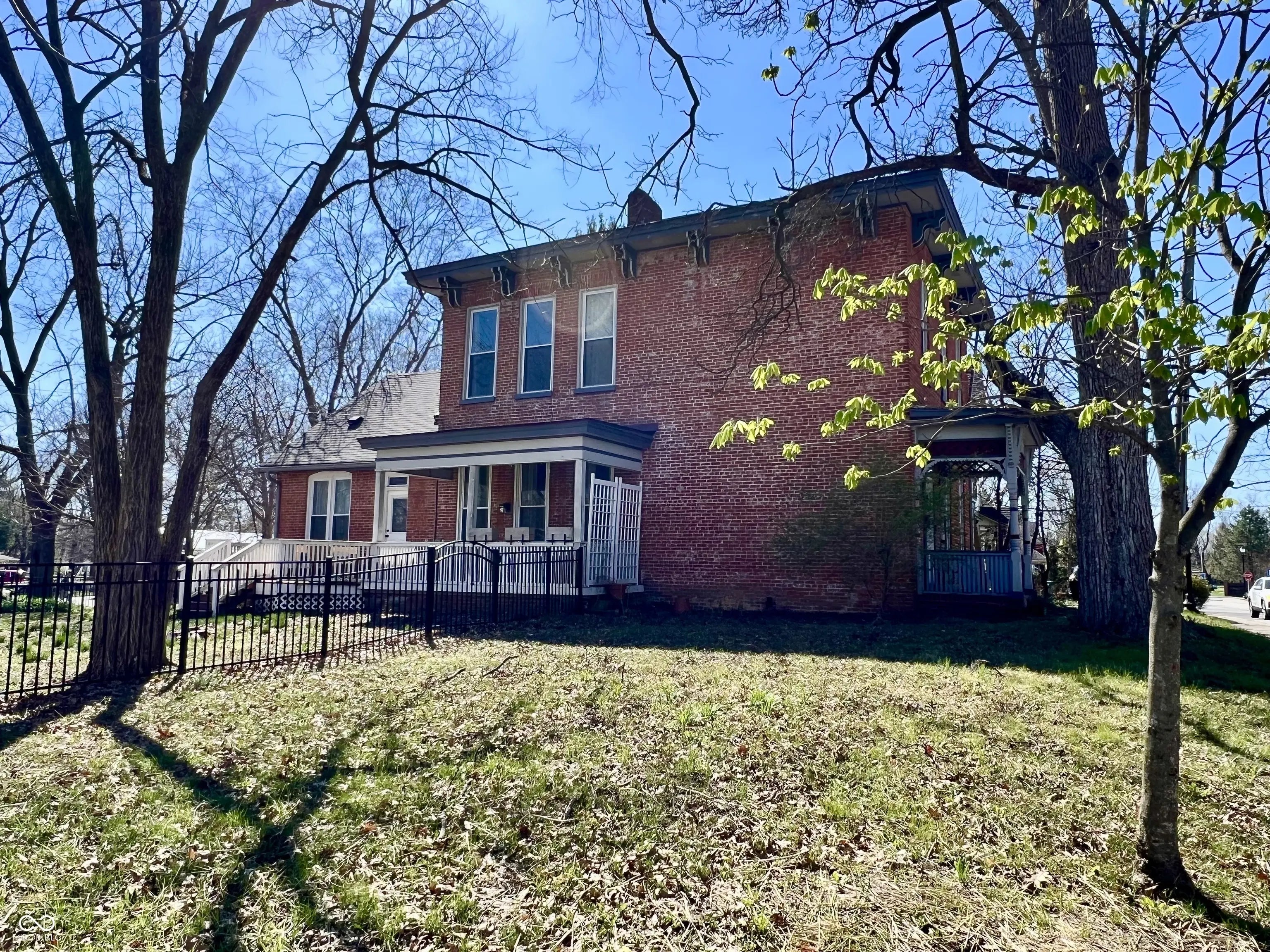Welcome to the Nationally Registered Historic Forsythe-Schlosser Home! One of the last standing original farmhouse homes from when Franklin was founded! This distinguished single family residence, constructed in 1856, presents an attractive property in great condition. The heart of this home resides within its meticulously appointed kitchen, where culinary aspirations come to life amidst shaker cabinets, distinctive wood ceiling & original brick accents. A grand kitchen island provides ample space for preparing meals, complemented by an adorable eat-in space for casual dining or engaging conversations. Equipped w/a double oven & gas stovetop, this space caters to both everyday meals & grand entertaining w/a spectacular adjoining dining room w/floor to ceiling windows & an ornate fireplace. The living room offers an inviting sanctuary, distinguished by its high ceiling & sophisticated crown molding. A 1st floor primary bedroom w/ensuite bath is currently being used as a sitting room/office space. Travel upstairs via the front staircase or rear curved staircase. It boasts newer carpet & hardwood floors, a small loft area, 3 more bedrooms & a recently updated bathroom w/double sinks, clawfoot tub & separate shower. Laundry was also converted upstairs next to the bathroom. The 2/3 acre property boasts a firepit, storage shed, newly fenced side yard w/large covered & uncovered deck, private fenced back yard w/covered deck, & a 1 car garage on a driveway w/ample amounts of parking space. With soaring ceilings, original hardwoods, crown molding & an abundance of natural light, this home represents a rare opportunity to own a piece of Franklin's early frontier history while enjoying proximity to the vibrant downtown district. Steeped in nearly 2 centuries of local history, this remarkable historic residence traces its origins to the early settlement & founding of Franklin. ***See attached historical sheet for more detailed information*** It's truly fascinating!