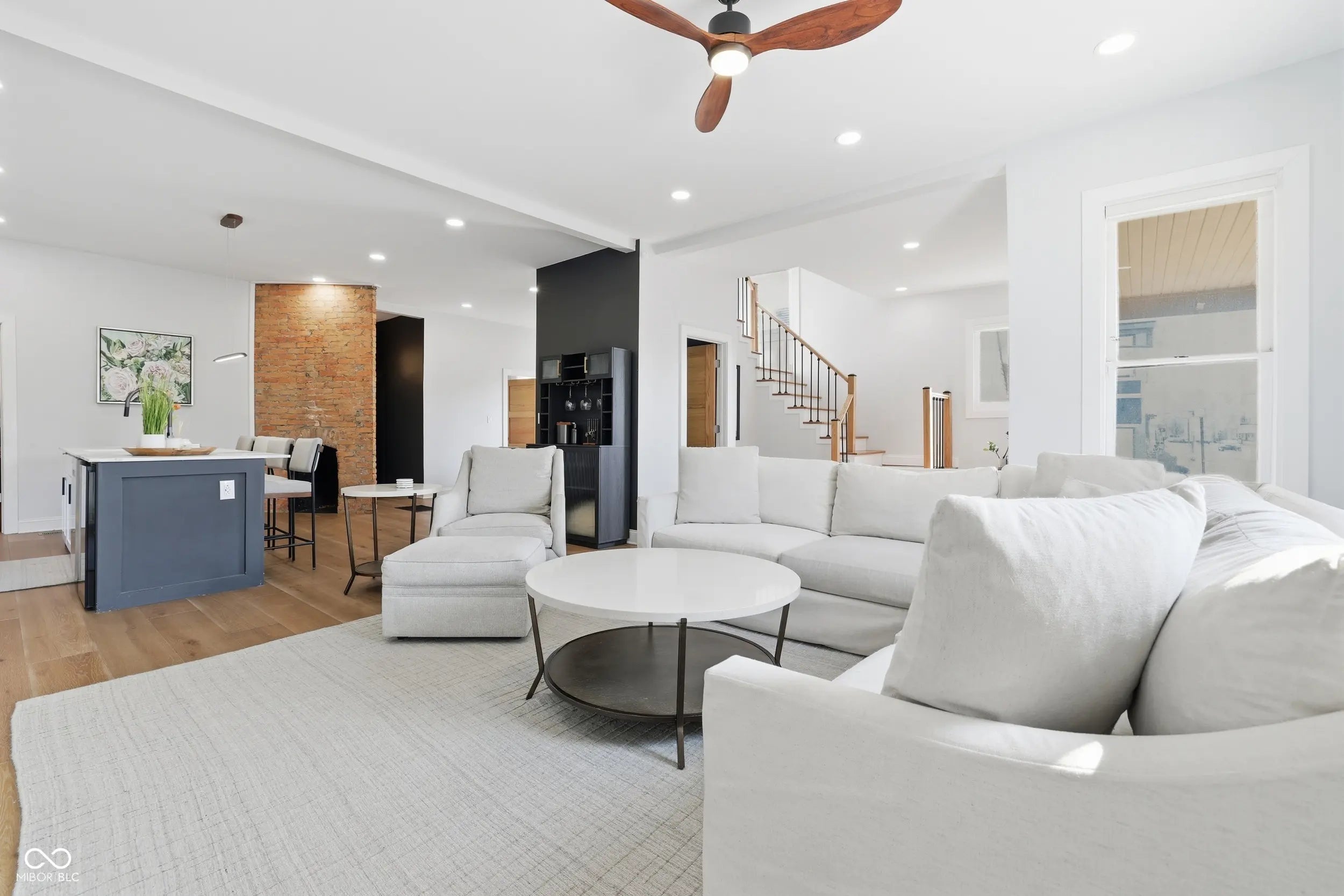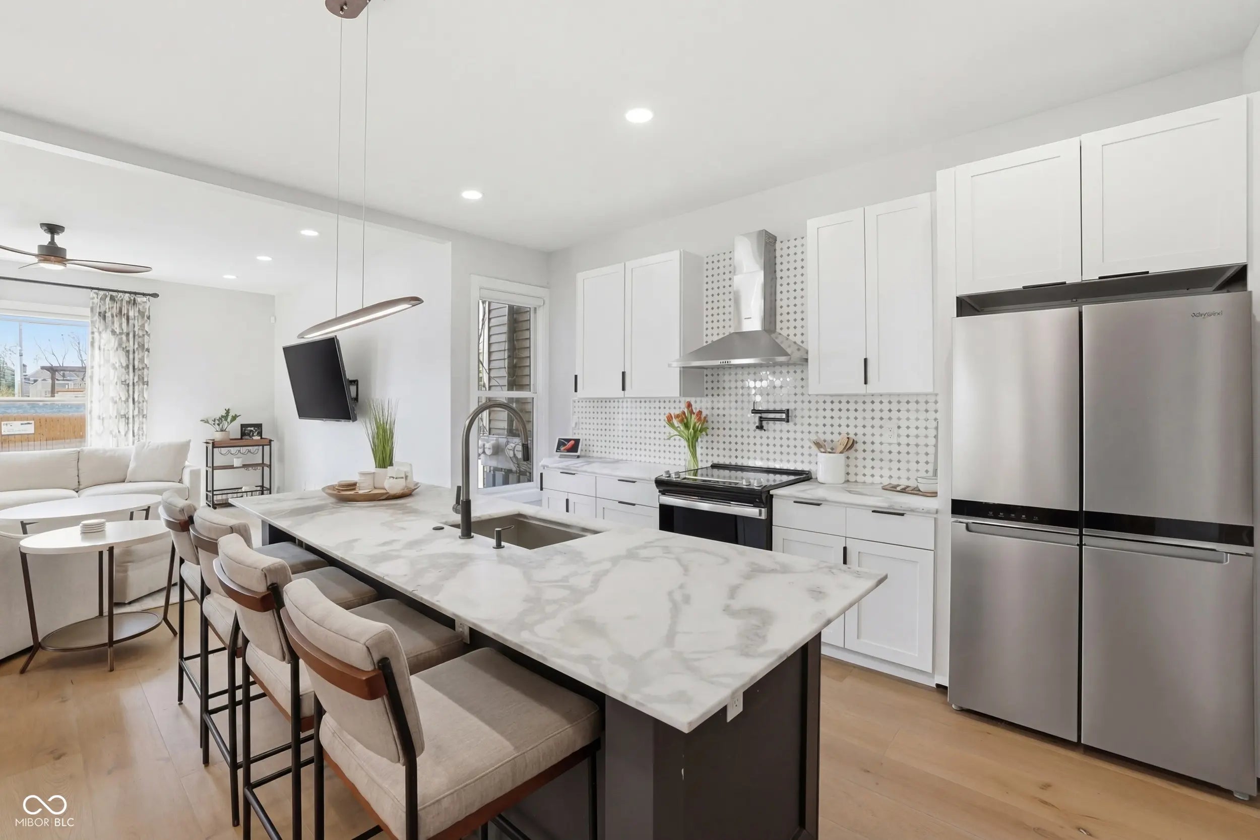 Welcome to this stunning 4-bedroom, 3.5-bath home offering over 2,100 sq ft of stylish living space in the heart of downtown Indianapolis. Ideally located just a short walk from Bottleworks Hotel and Mass Ave, this home combines modern comfort with unbeatable city convenience. Inside, you'll find an inviting open-concept layout filled with natural light, creating the perfect space for both everyday living and entertaining. The spacious primary suite is a true retreat, featuring dual vanities, a walk-in shower, and a standalone soaking tub. Step outside to enjoy a large patio with plenty of room for hosting and relaxing. A rare find downtown, the property also includes a spacious 3-car garage with an unfinished loft above, offering endless potential for a studio, guest suite, office, or short term rental space. Furniture included in the sale!