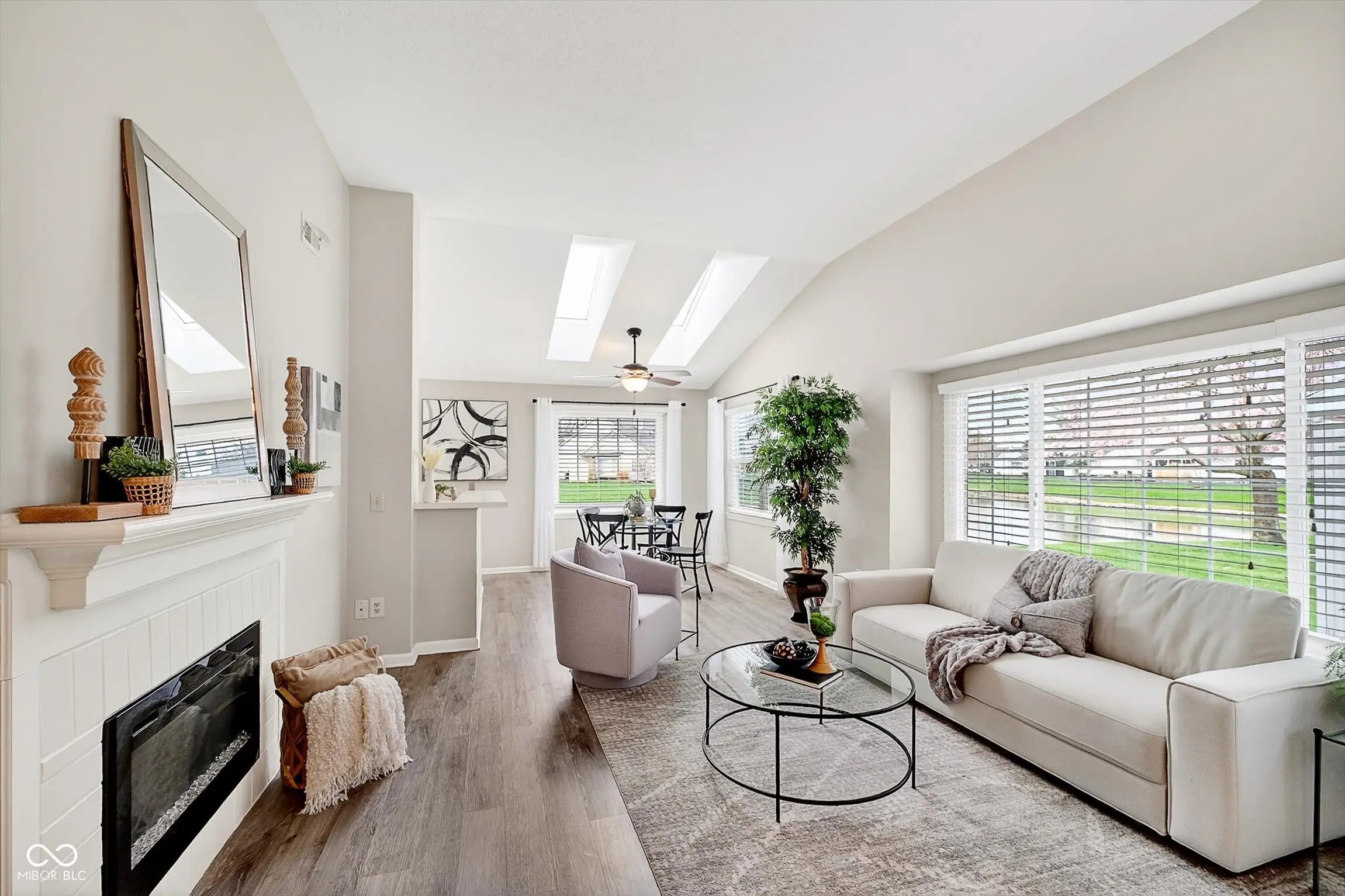 Welcome to easy, low-maintenance living in a highly desirable community offering comfort, convenience, and connection. This well-maintained home features a bright, open layout with vaulted ceilings, skylights, and large windows that fill the space with natural light. The living room flows seamlessly into the dining area, creating an ideal setting for both everyday living and entertaining, while a cozy fireplace adds warmth and charm. The kitchen offers ample cabinet and counter space with a functional layout that opens to the main living area, making it easy to stay connected while cooking. A cheerful dining nook surrounded by windows provides the perfect spot to enjoy meals while taking in peaceful outdoor views. The spacious primary suite includes an en-suite bathroom with dual sinks and a walk-in shower designed for comfort and ease. Additional bedrooms offer flexibility for guests, a home office, or hobby space. Step outside to enjoy tranquil pond views from your patio-an ideal place to relax or entertain. The setting provides both beauty and a sense of privacy. Located in a community designed for low-maintenance living with lawn care included. Residents enjoy access to a pool, clubhouse, and exercise facility, offering opportunities to stay active and social. Conveniently located near Fishers, Keystone, and Castleton, with easy access to major highways, shopping, dining, and healthcare.