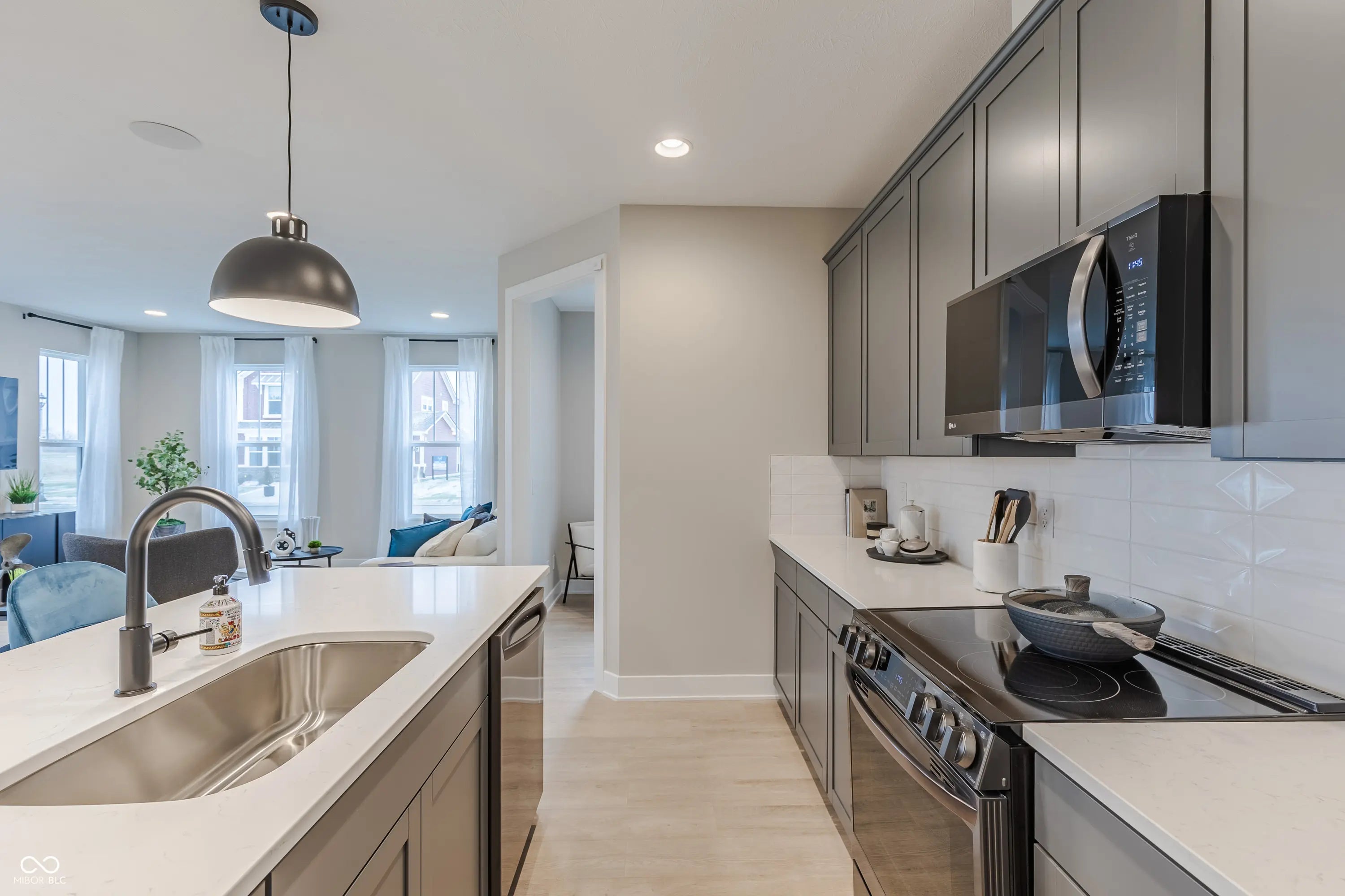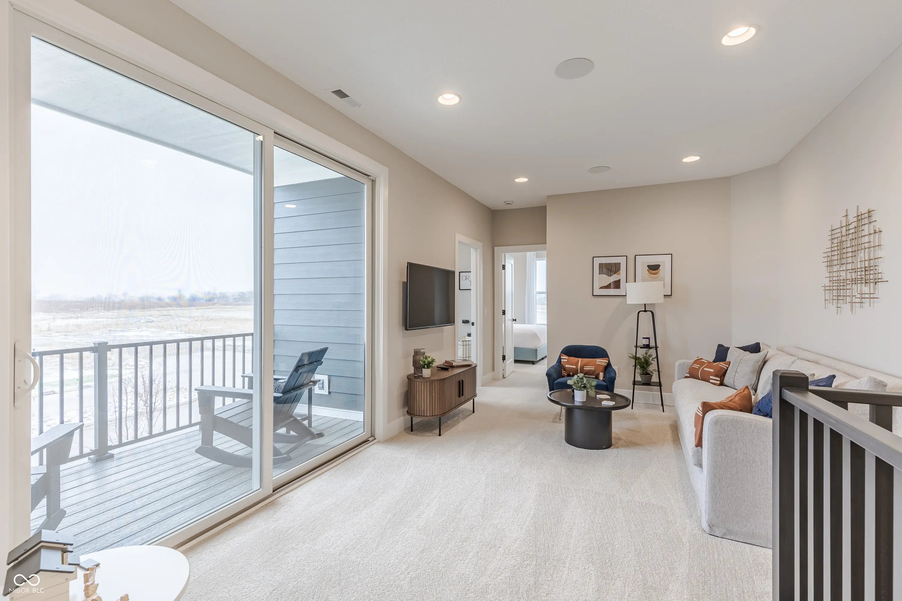 What's Special: Loft | End Unit | Dedicated Home Office | Corner Lot - New Construction - April Completion! Built by Taylor Morrison, America's Most Trusted Home Builder. Welcome to the Uptown at 5768 Arcade Boulevard in Colonnade! This lovely endunit townhome begins with a welcoming covered front porch that sets a friendly first impression. Inside, the openconcept layout brings together the living room, dining area, and kitchen in one bright, easygoing space. The kitchen features quartz countertops, softclose drawers and doors, stainless steel appliances, a center island, and a walkin pantry. Just beyond the kitchen is a versatile flex space, and a powder room sits near the rear garage entry for everyday convenience. Upstairs, a spacious loft opens to an outdoor covered deck and anchors two secondary bedrooms with walkin closets, a shared full bathroom, and a centrally located laundry room. The primary suite offers an ensuite bath with dual sink vanity, roomy shower, and a large walkin closet. Welcome to McCordsville, one of the best places to live in Indiana! Outside, discover a peaceful pond, walking trails and open spaces. Plus, the McCord Square Downtown District is on the way and will feature an outdoor amphitheater for concerts and shows! Additional Highlights Include: a storage closet added upstairs, water closet in the primary bath, a shower with a shelf in the primary bathroom, 84" vanity in the primary bath, and 60" vanity in the upstairs secondary bath. Photos are for representative purposes only. MLS#22093255