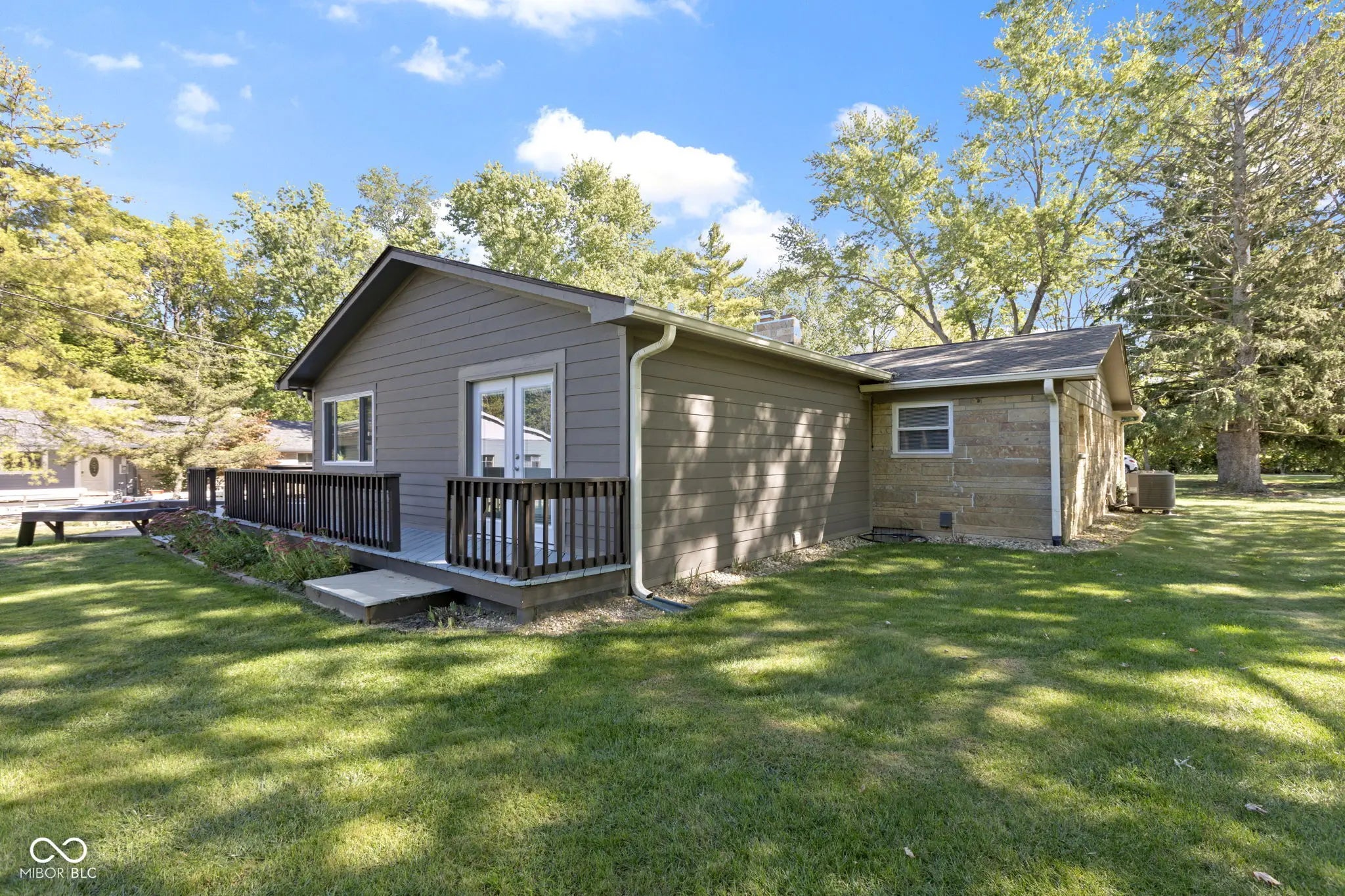 Just a few minutes drive from the Village, this Ranch home offers an opportunity to experience a unique private space in Zionsville. Built in 1970, this property features mature trees, privacy with close proximity to amenities. The interior features an inviting living room with a stone gas fireplace, updated galley kitchen with a plenty of cabinets, solid surface countertops and breakfast room that overlooks rear yard and has access to wood deck, firepit and grilling station. Primary bedroom with French door access to rear Deck, and beautifully updated Primary Bath. Two additional bedrooms, hall bath and office/den. Laundry closet has convenient pass through to Primary Bath. Loads of closet space and spacious garage with a large built-in workbench, plus as additional work room. Spanning 2153 square feet of living area, this home provides plenty of room to live and grow. The generous lot offers a private outdoor sanctuary, ready for gardening, recreation, or simply unwinding in the open air. Back yard features garden beds and 2 mini barns. This one-story home combines comfort and practicality. This single-family residence is waiting to become your cherished haven.