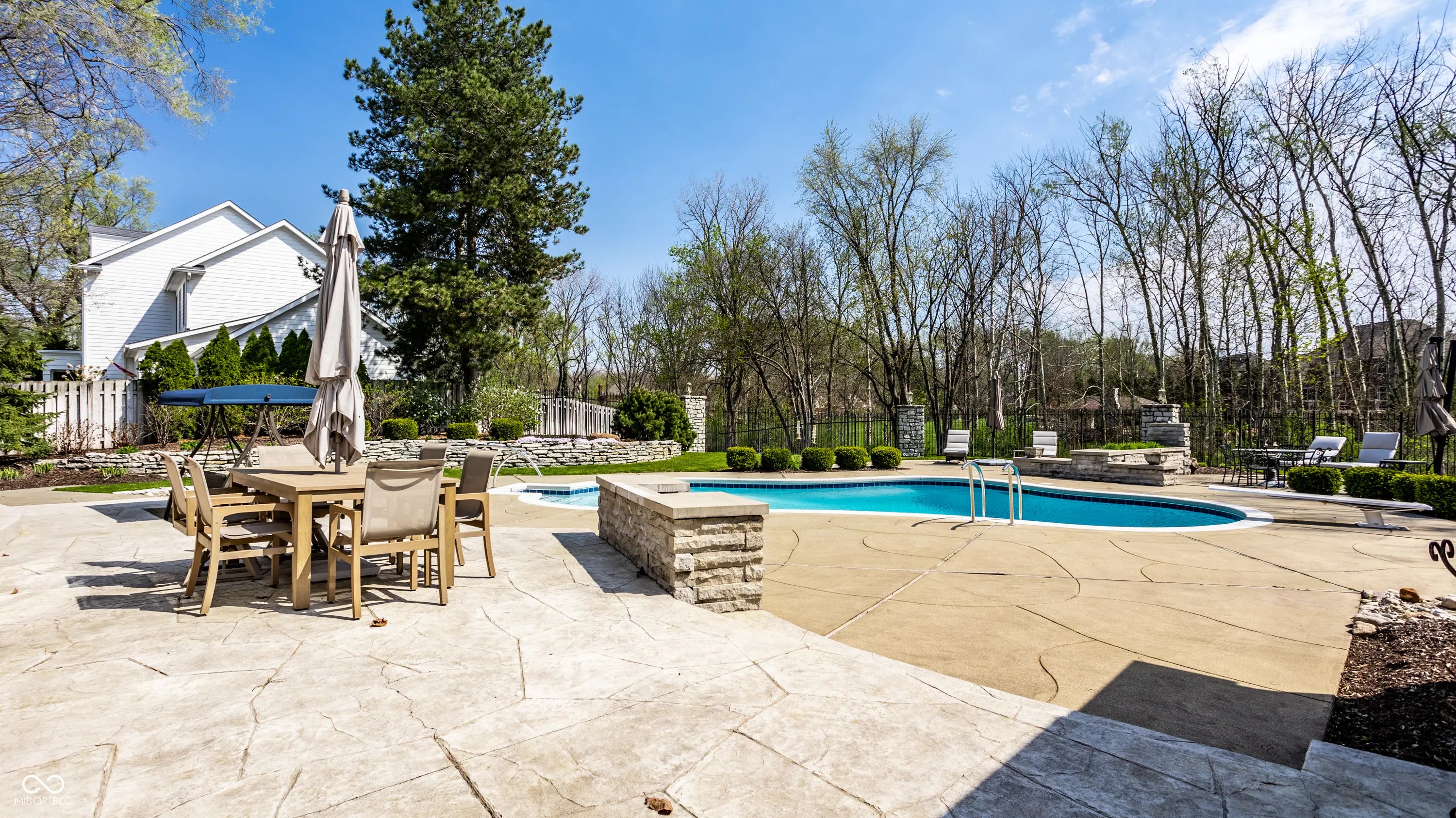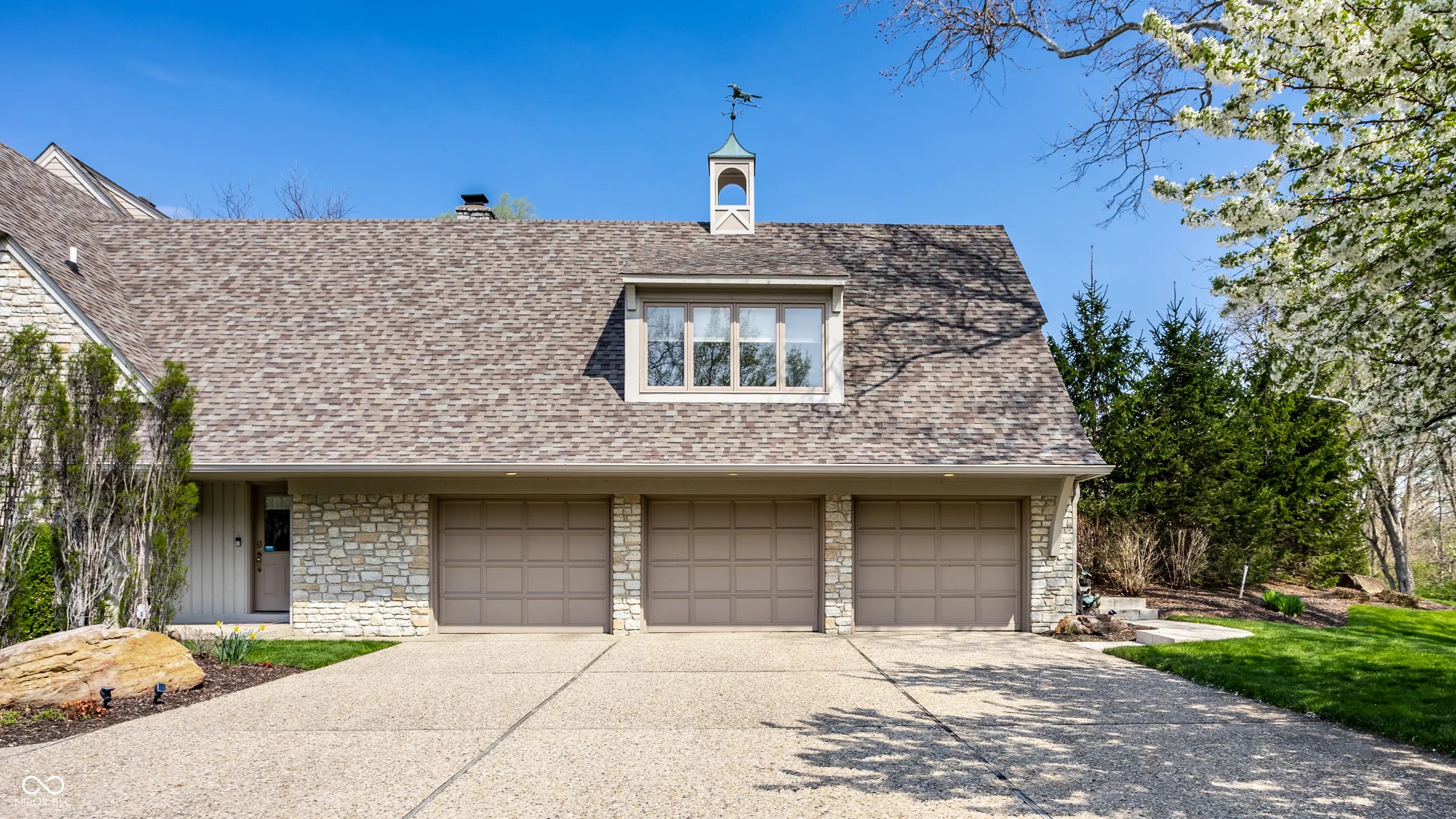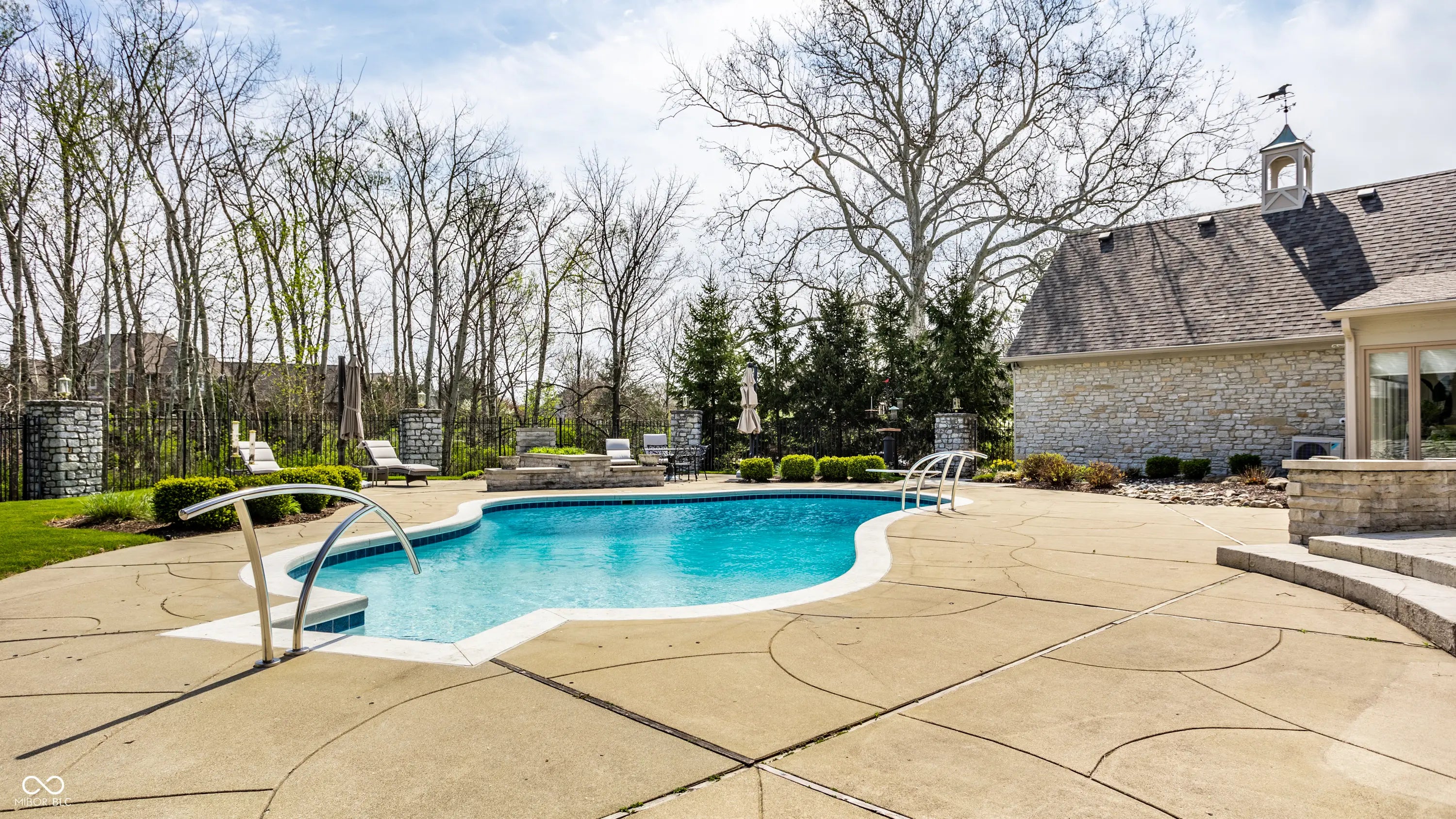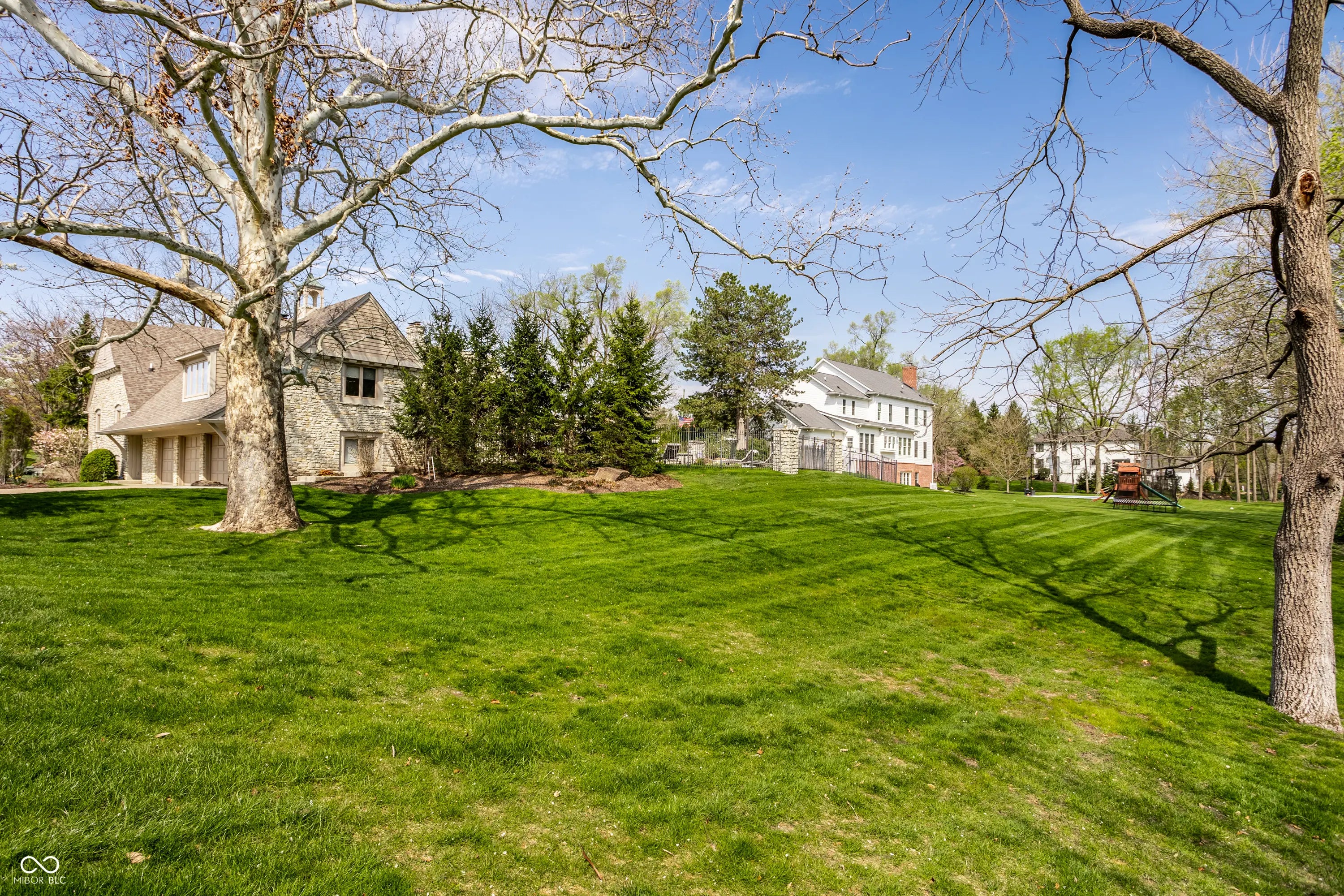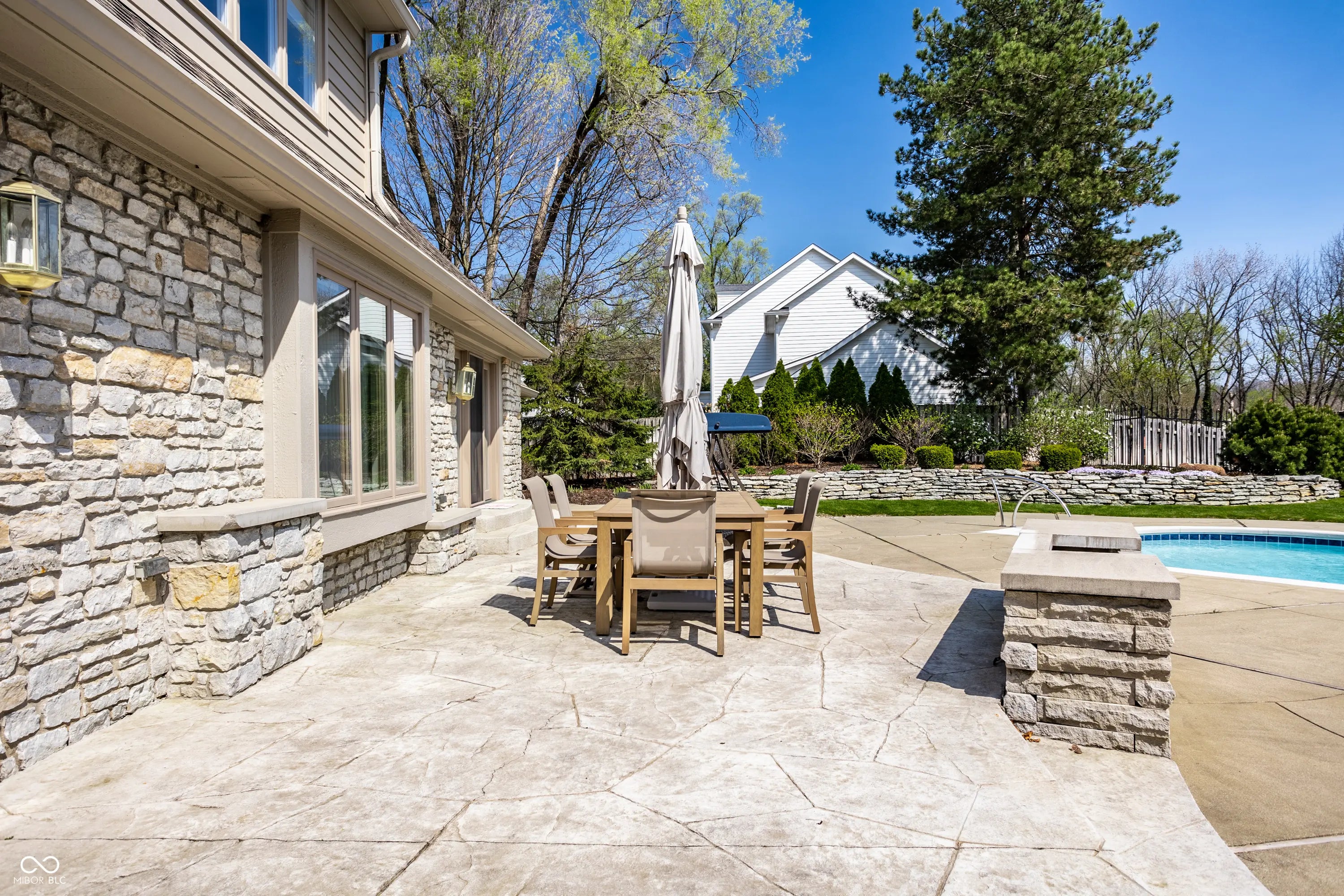 Welcome to 4826 Deer Ridge Drive North, an iconic Carmel estate showcasing a striking stone exterior, timeless architecture, and exceptional curb appeal, set on a private one-acre homesite with mature Aspen trees and a peaceful creek. With over 9,200 square feet of living space, this custom-built home features 5 bedrooms, 5 full & 3 half baths, designed for both luxury & functionality. Inside you'll find quality craftsmanship throughout, including solid wood trim, vaulted 9-foot ceilings, skylights, & abundant natural light. The updated kitchen is a true centerpiece with custom cabinetry, solid surface countertops, a new KitchenAid stainless steel appliance package with warming drawer, designer backsplash, & large pantry, all opening to a dramatic two-story hearth room with stunning stone fireplace. The main level offers multiple living spaces, including a formal dining room, sunroom with its own climate control, & family room with custom built-ins. The primary suite, remodeled in 2020, features a sitting area, spa-like bath with soaking tub, walk-in shower, dual vanities, & expansive California Closets walk-in closet, with the option to convert back to a 6th en-suite bedroom. Upstairs includes 3 spacious bedrooms with a separate HVAC system, while a private bonus room suite above the garage, full bath, & independent heating and cooling-is ideal for guests or multi-generational living. The finished daylight basement offers new LVP flooring, a wet bar, updated bath, and ample storage. Outdoors, enjoy a fully fenced backyard with luxury gunite pool surround (2022), separate garden area, and dedicated pool changing room with bath access. Additional highlights include a 3-car garage with epoxy flooring, exposed aggregate driveway, multiple fireplaces, updated lighting, added insulation, and a new Carrier furnace (2025). Located near Carmel's top parks, trails, dining, and schools, this home offers a rare combination of space, privacy, and convenience.