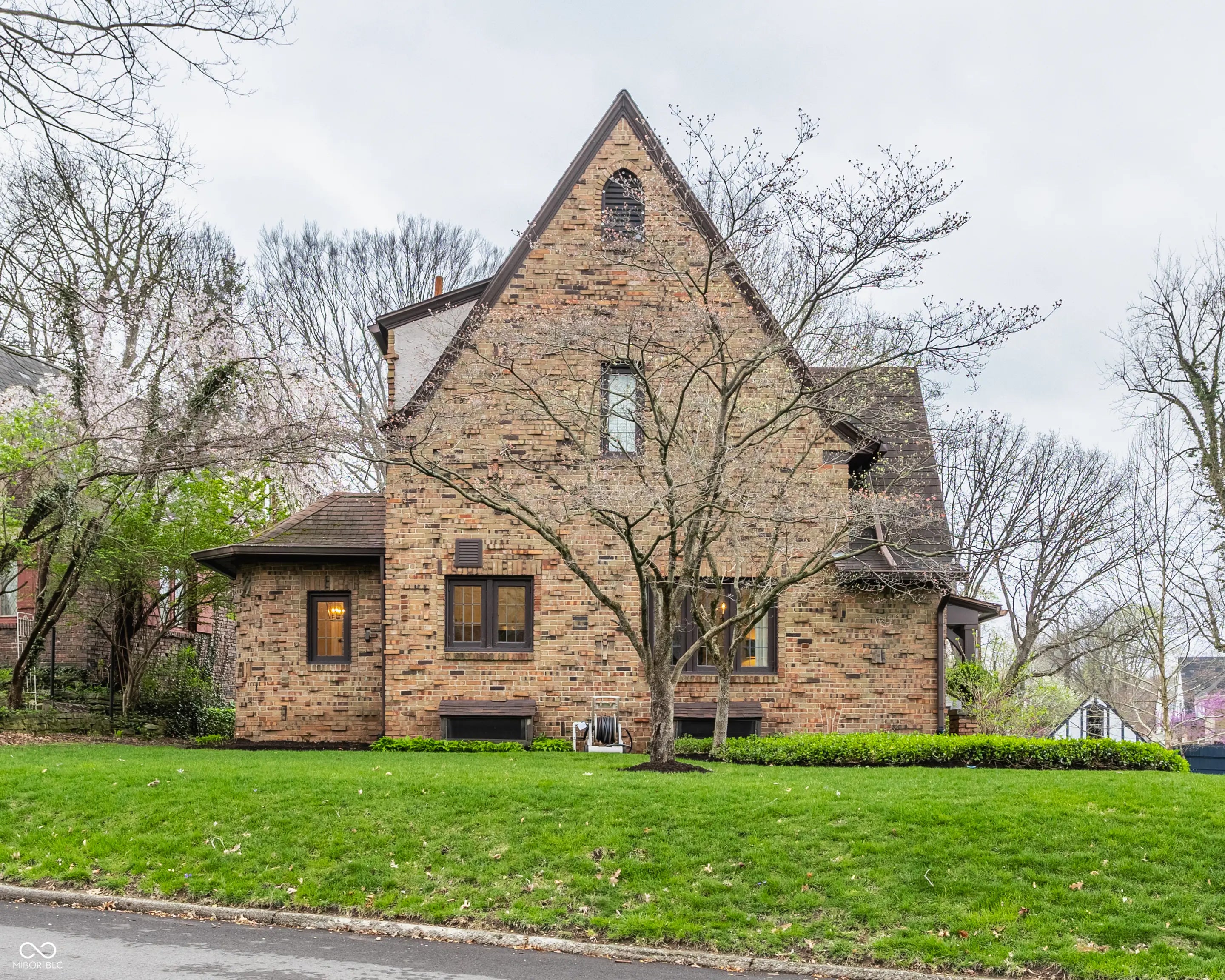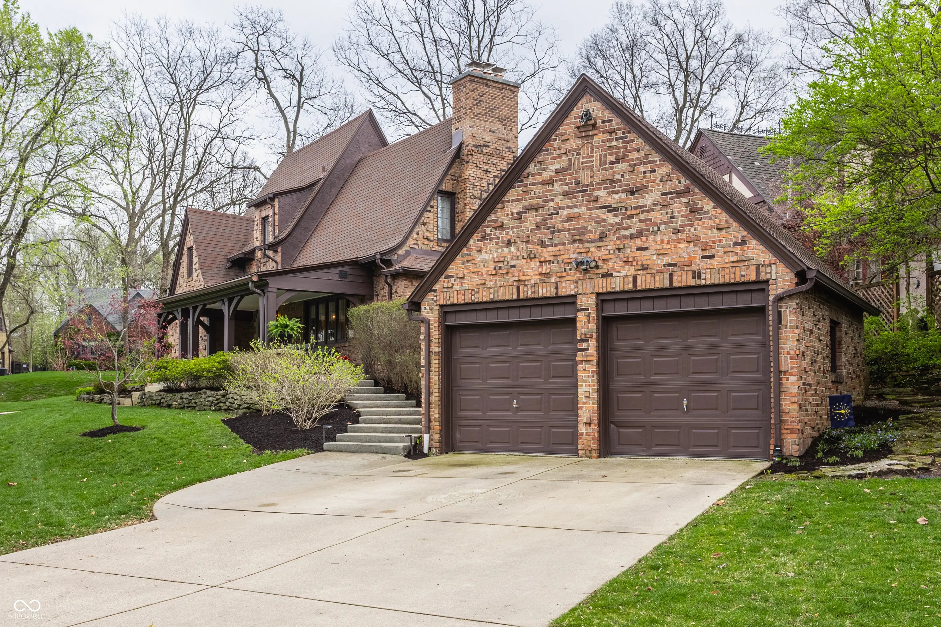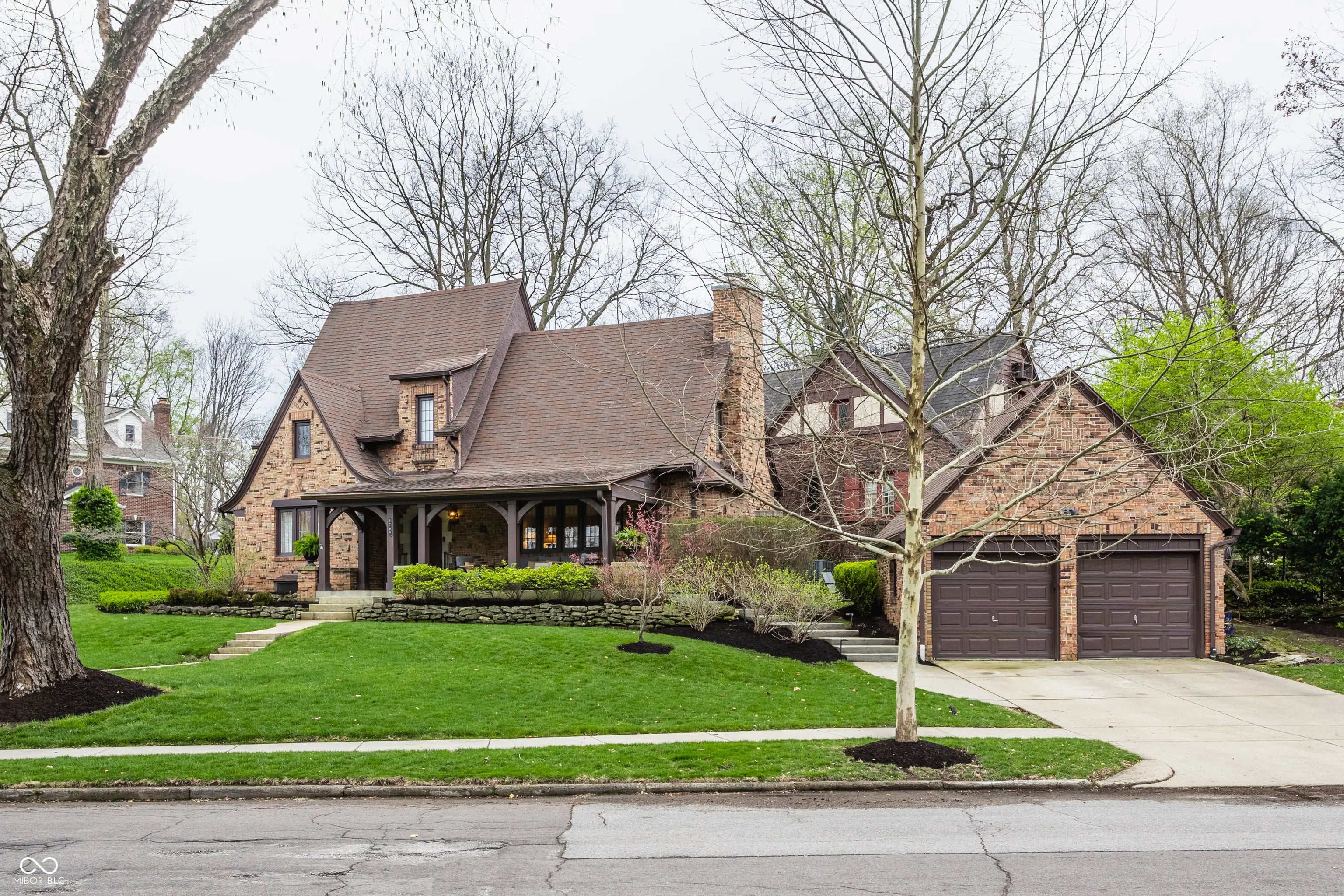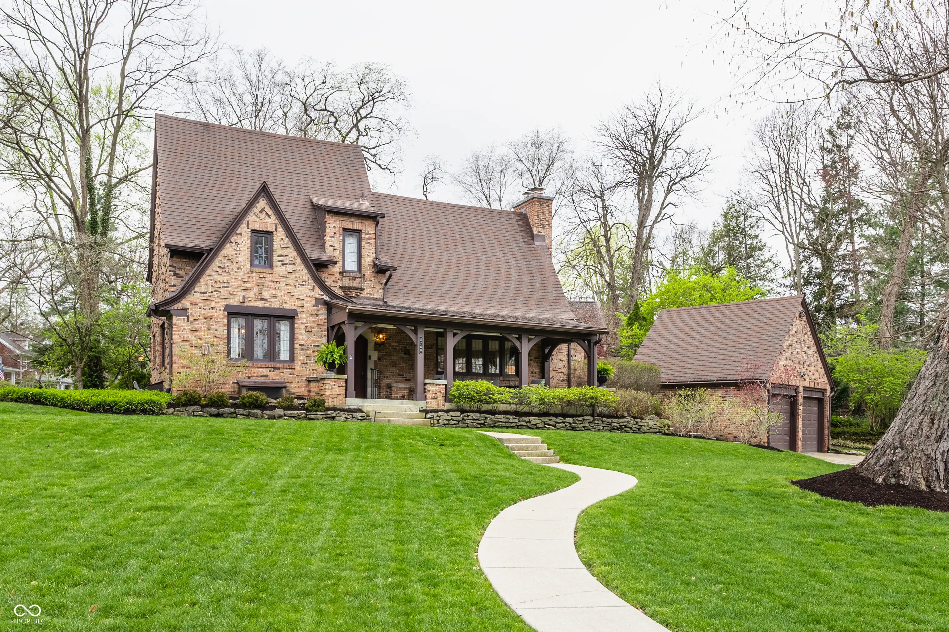 Absolute perfection! This meticulously maintained storybook home in Forest Hills radiates curb appeal from the moment you arrive. Every detail has been thoughtfully updated, blending timeless character, classic charm, and modern convenience. The main level welcomes you with a spacious living room featuring stunning leaded glass windows and a cozy fireplace-perfect for relaxing evenings. Beautiful hardwood floors run throughout, and every room has been freshly painted, including trim, walls, and crown molding, making this home truly move-in ready. From elegant arched doorways to serene, private gardens, this home feels like a peaceful oasis rich with history and charm. The formal dining room is filled with incredible natural light, creating an inviting space for gatherings and entertaining. The updated kitchen boasts granite countertops, stainless steel appliances, and an absolutely delightful breakfast nook-ideal for morning coffee or casual meals. Upstairs, you'll find two generously sized bedrooms, each with walk-in closets (the primary features two!). A beautifully updated full bathroom in the hall serves both bedrooms. The finished basement offers incredible flexibility, featuring a comfortable family room with newer carpet-or the potential for a third bedroom thanks to two egress windows-along with a full bathroom. The utility and laundry room is exceptionally clean and well-maintained. Enjoy added peace of mind with a newer perimeter drainage system and sump pump with battery backup. Washer and dryer are included. The irrigation system keeps the landscaping lush and vibrant with ease. Enjoy all seasons under the covered front porch, overlooking the incredible landscaped yard. Located just steps from the Monon Trail and the shops and dining along 54th Street, this unbeatable location perfectly complements the home's charm and livability.